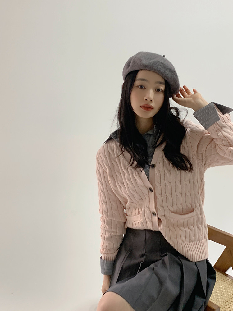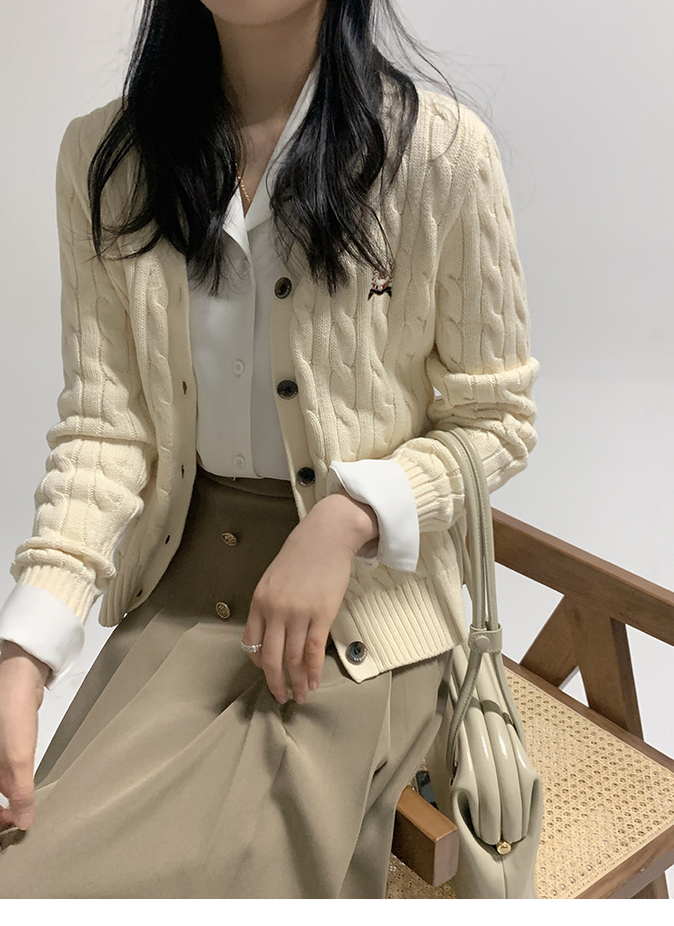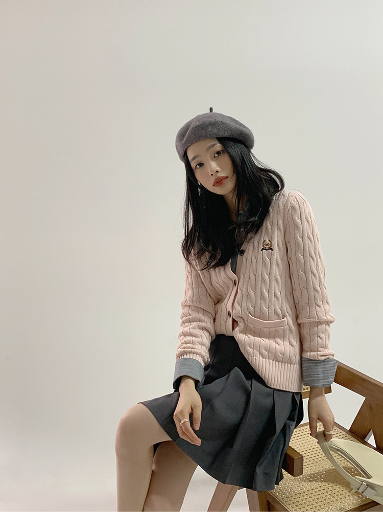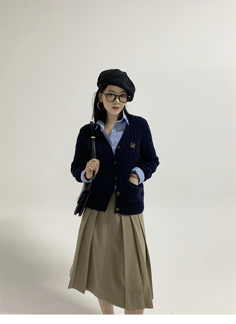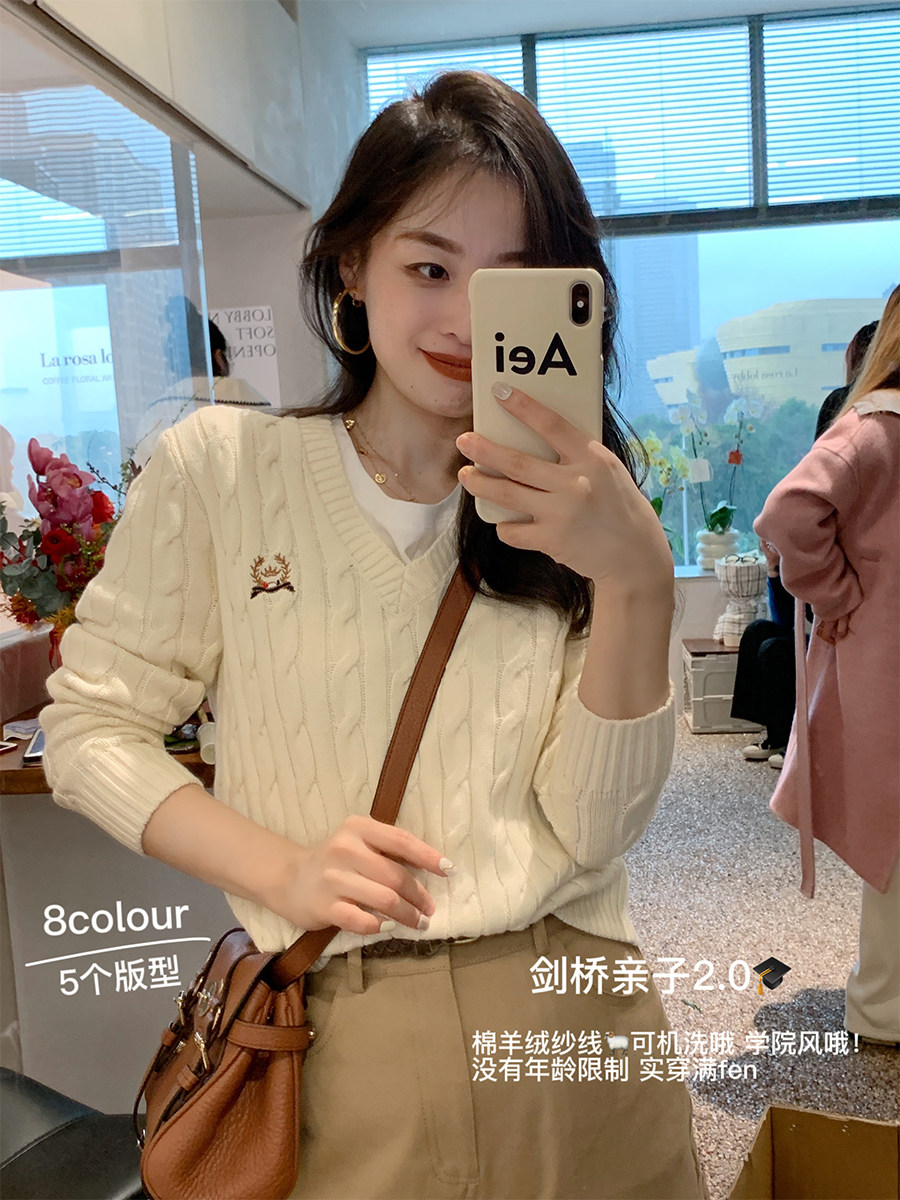 Тыквенная долина Кембриджская родительская -Кильд 2.0 ~ Ранняя осенняя академия Windmus Cashmere Twisted V -neck вязаная кардигана Z0994
