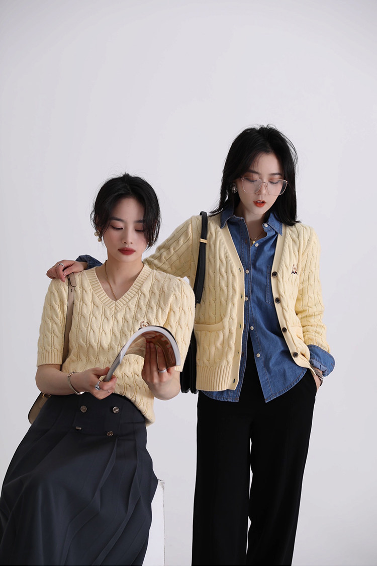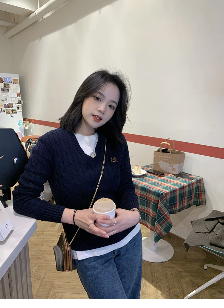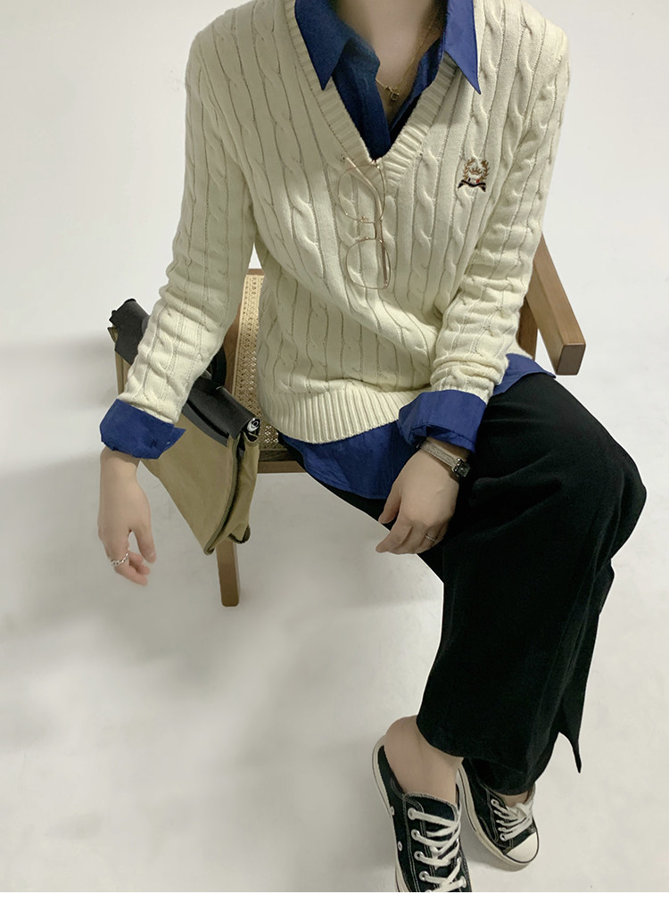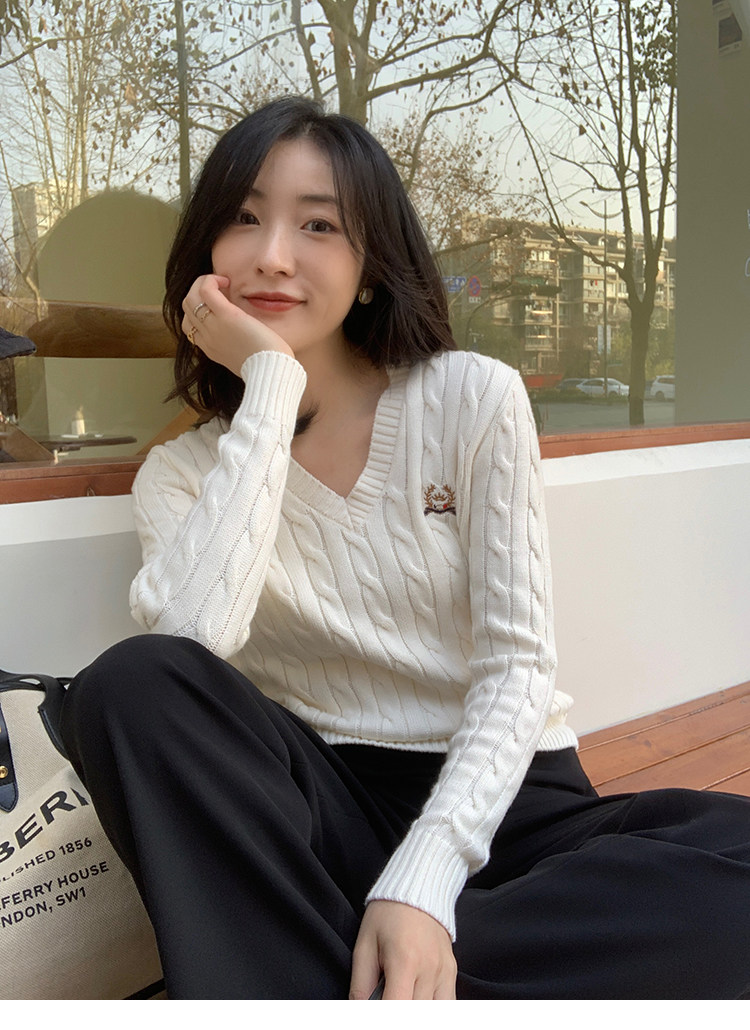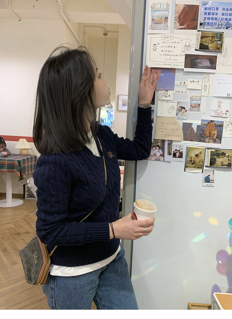Тыквенная долина Кембриджская родительская -Кильд 2.0 ~ Ранняя осенняя академия Windmus Cashmere Twisted V -neck вязаная кардигана Z0994