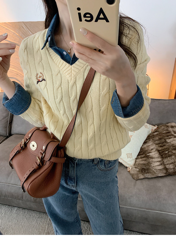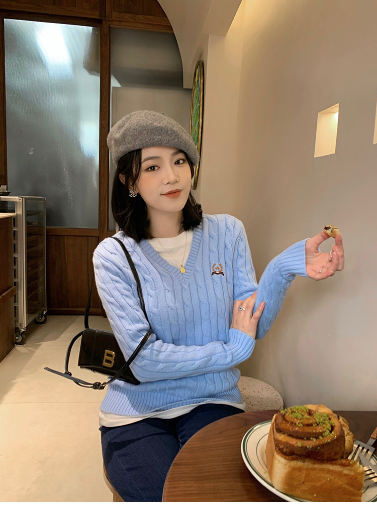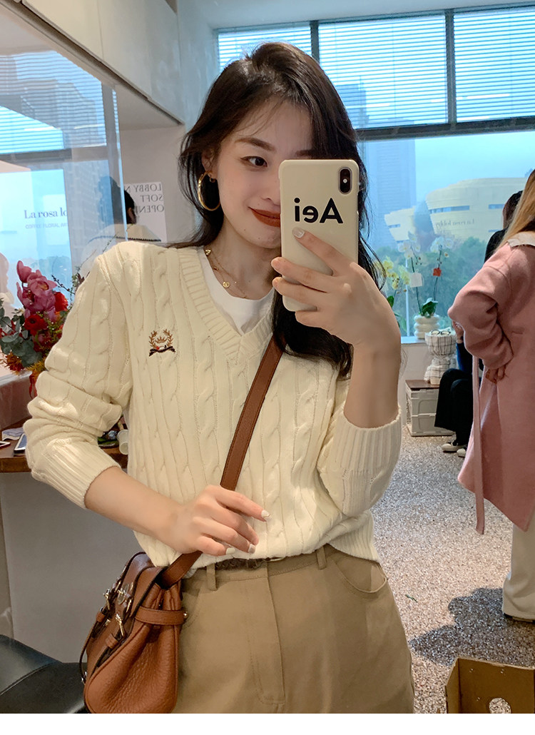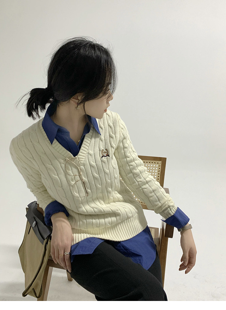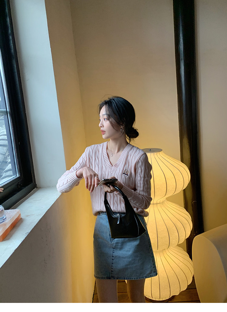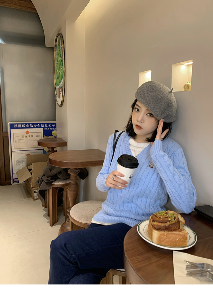 Тыквенная долина Кембриджская родительская -Кильд 2.0 ~ Ранняя осенняя академия Windmus Cashmere Twisted V -neck вязаная кардигана Z0994