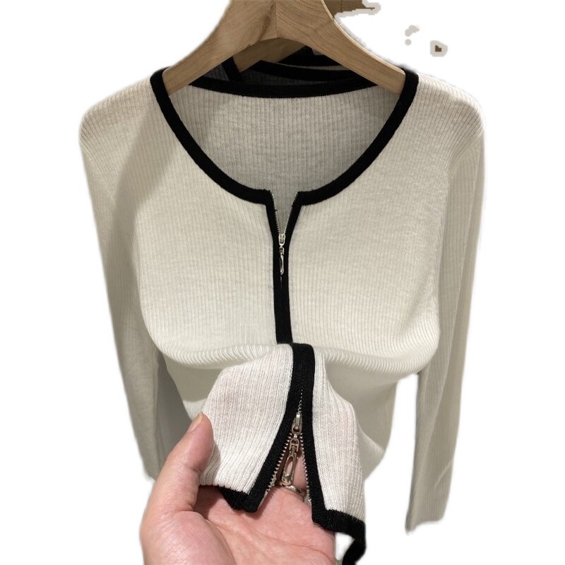 Весенний осенний дизайнерский лонгслив с молнией, трикотажный базовый приятный телу кардиган, 2022 года, тренд сезона