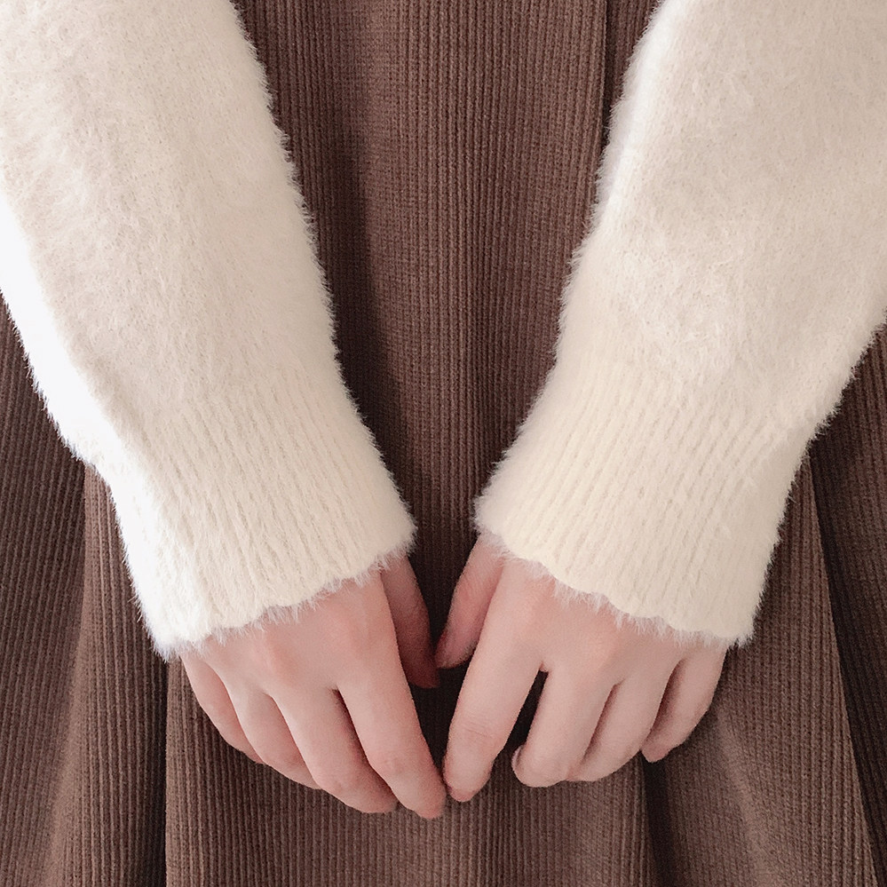 Бархатный мягкий белый базовый трикотажный свитер, искусственный мех