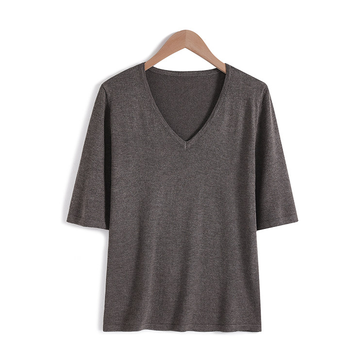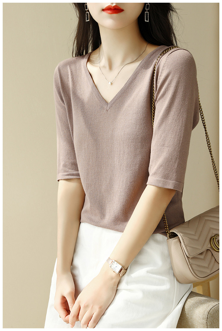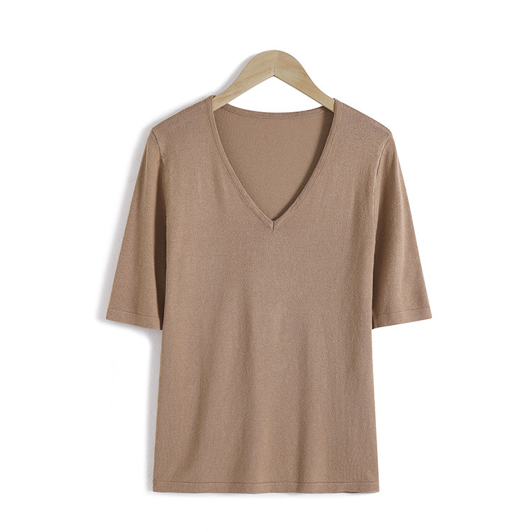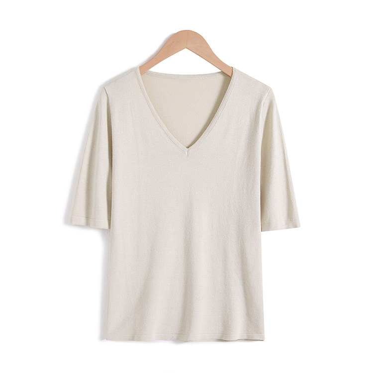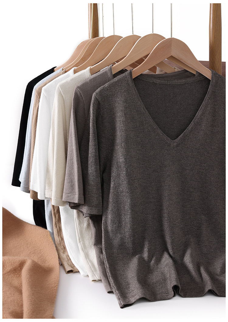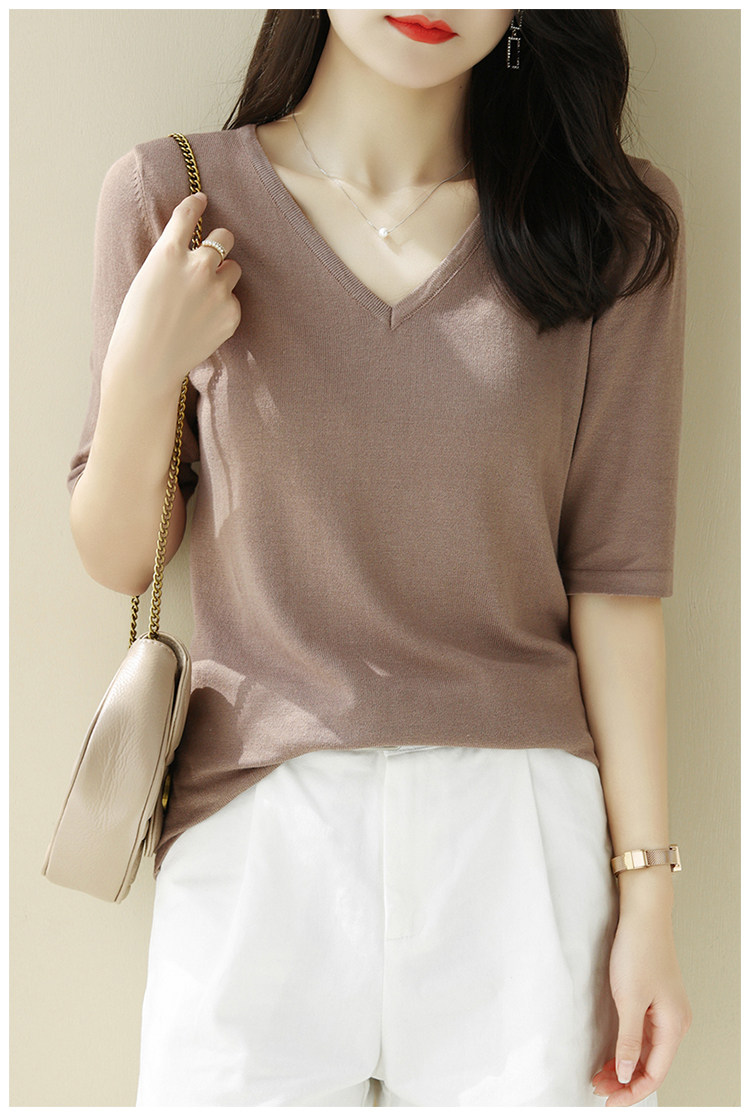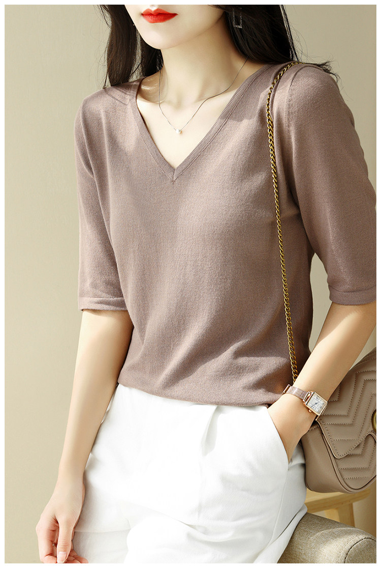 Летний шелковый трикотажный свитер, базовая футболка, V-образный вырез, свободный крой