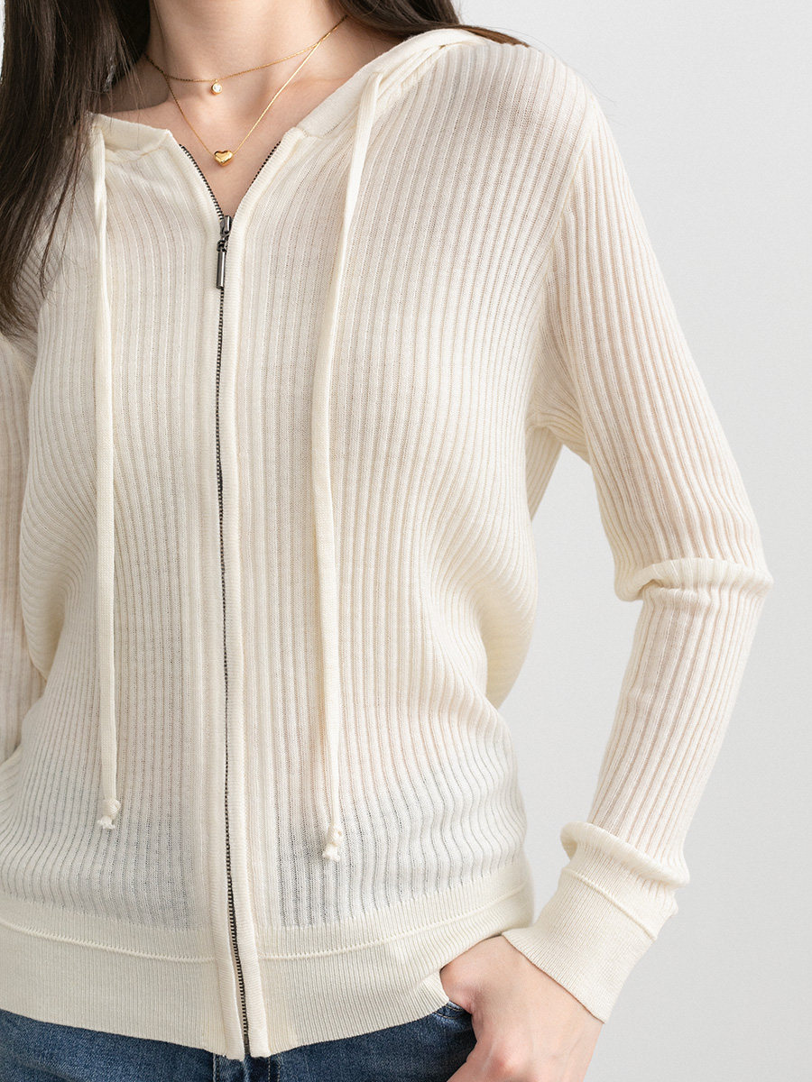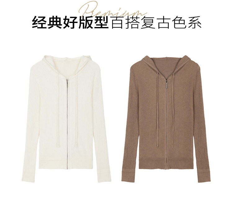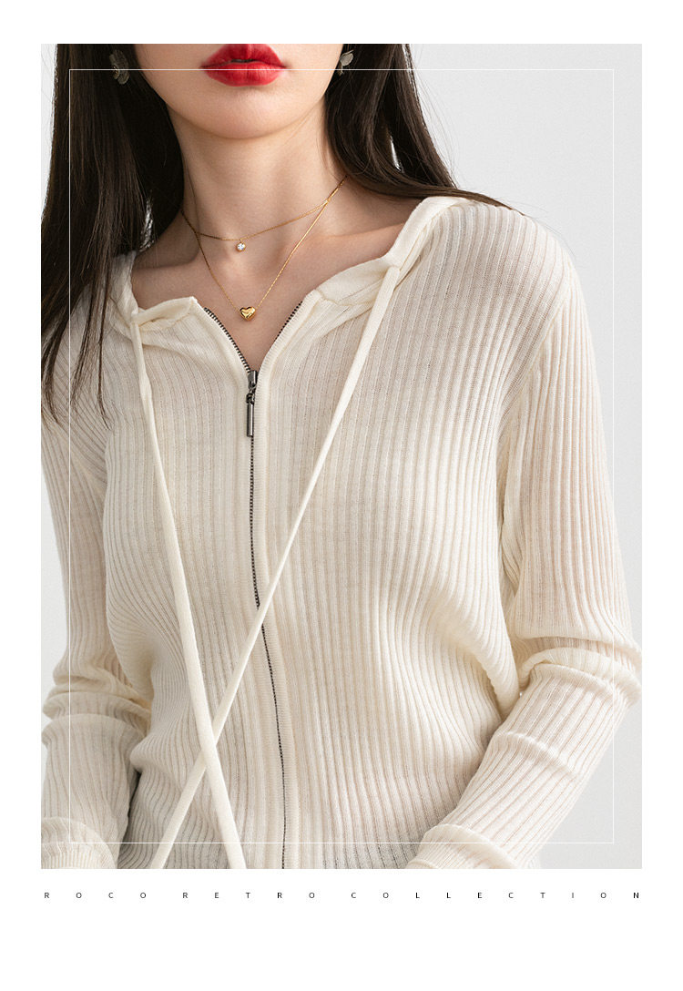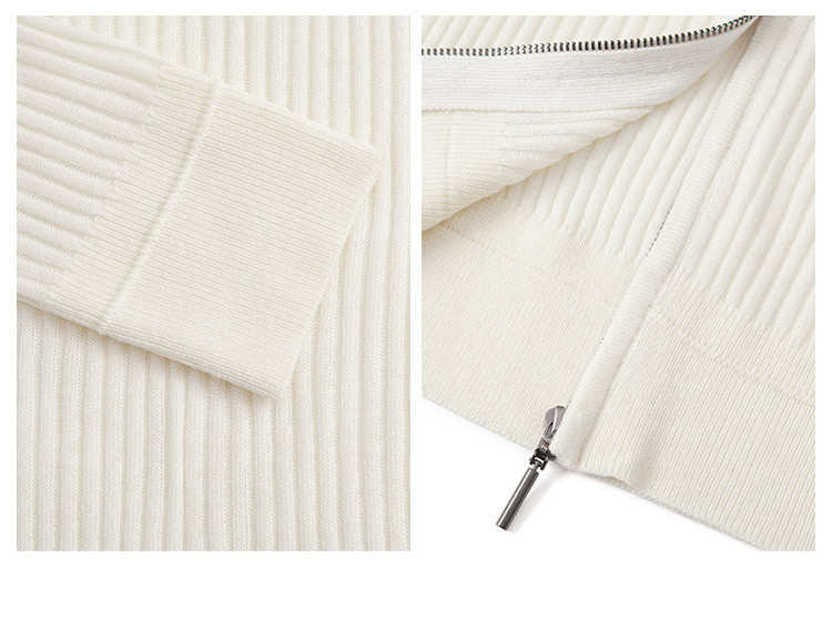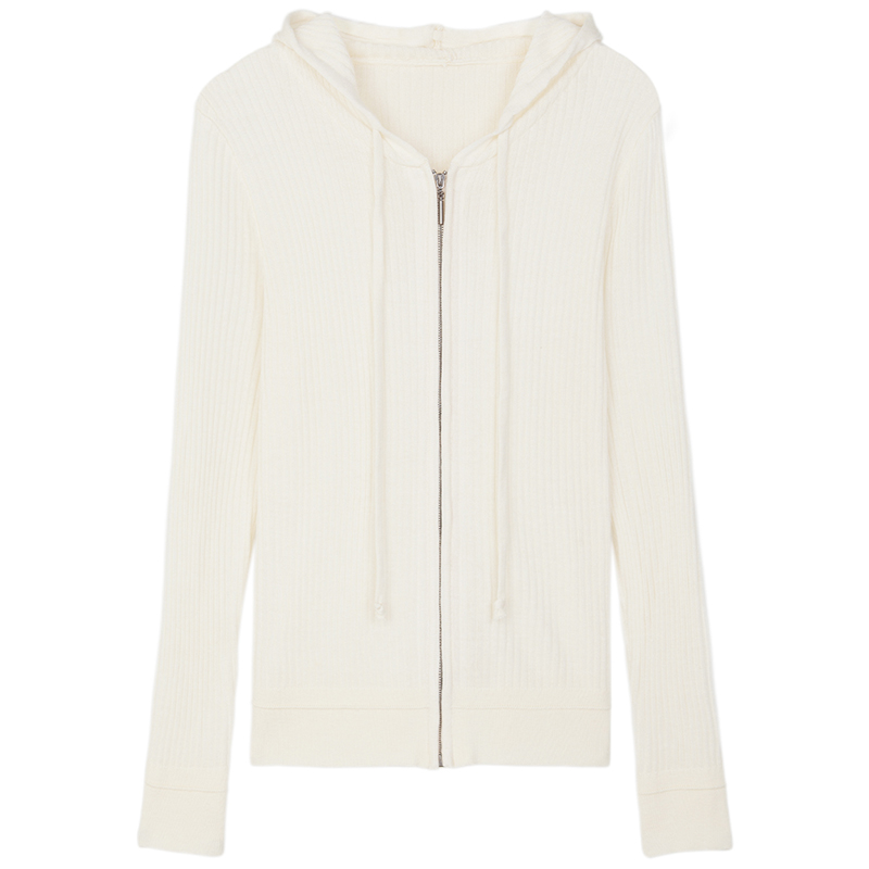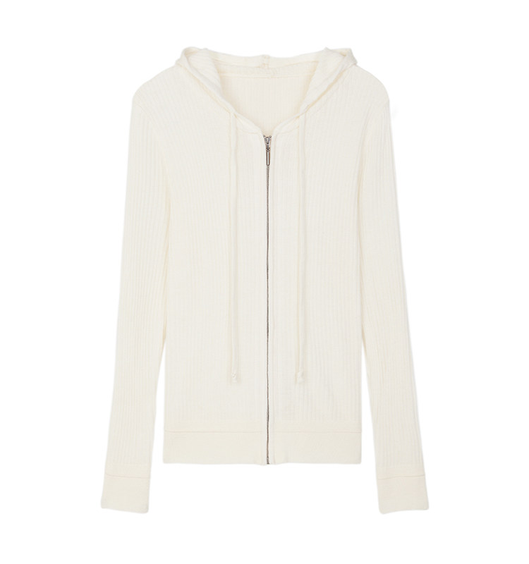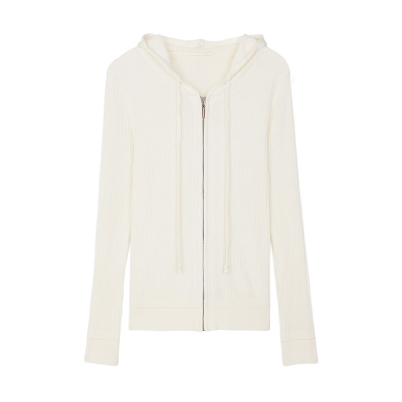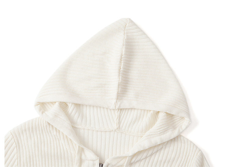 Белый шерстяной кардиган с капюшоном, трикотажный осенний свитер с молнией, куртка