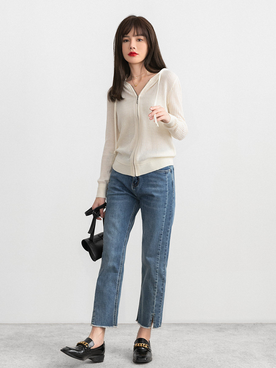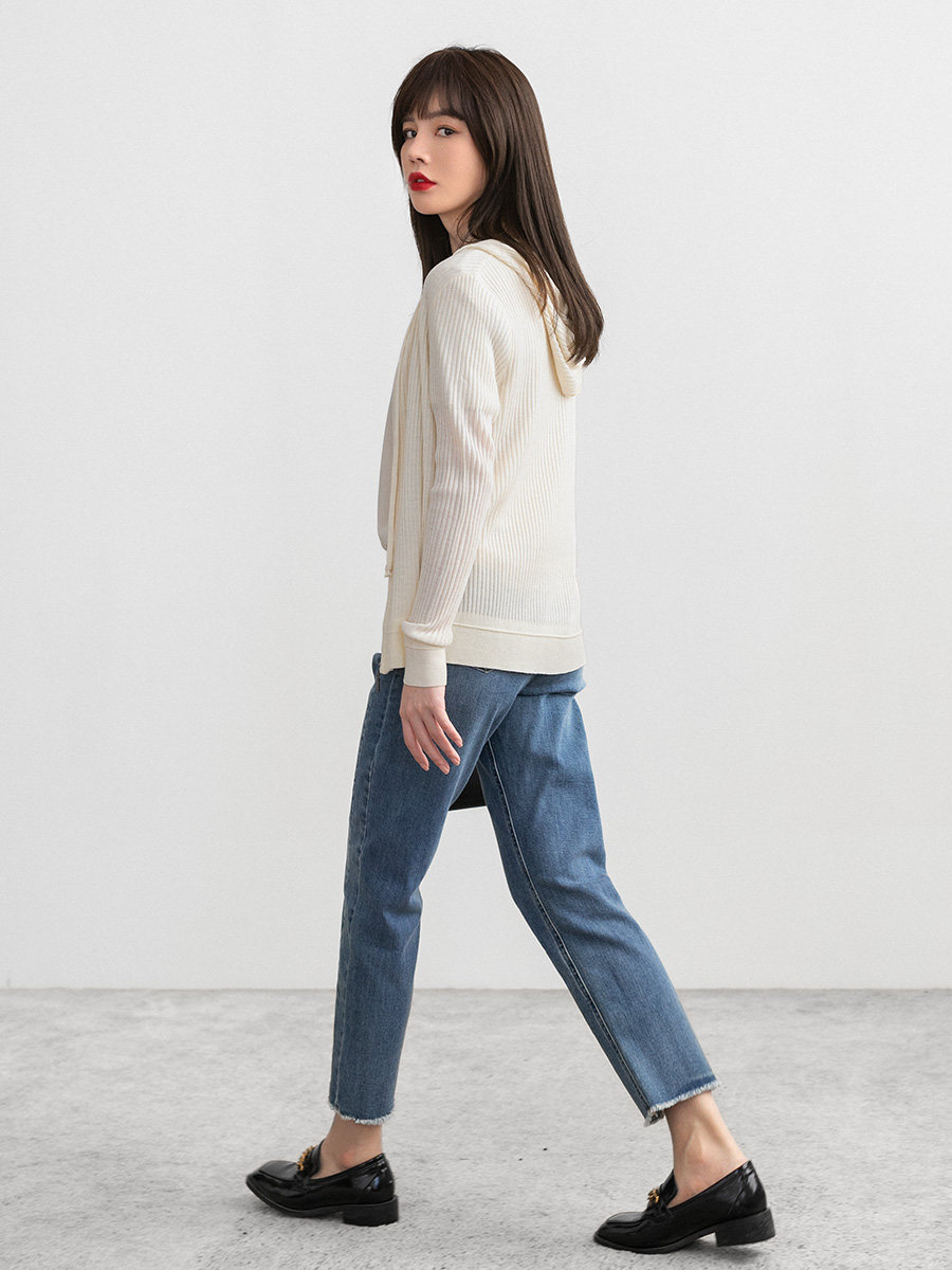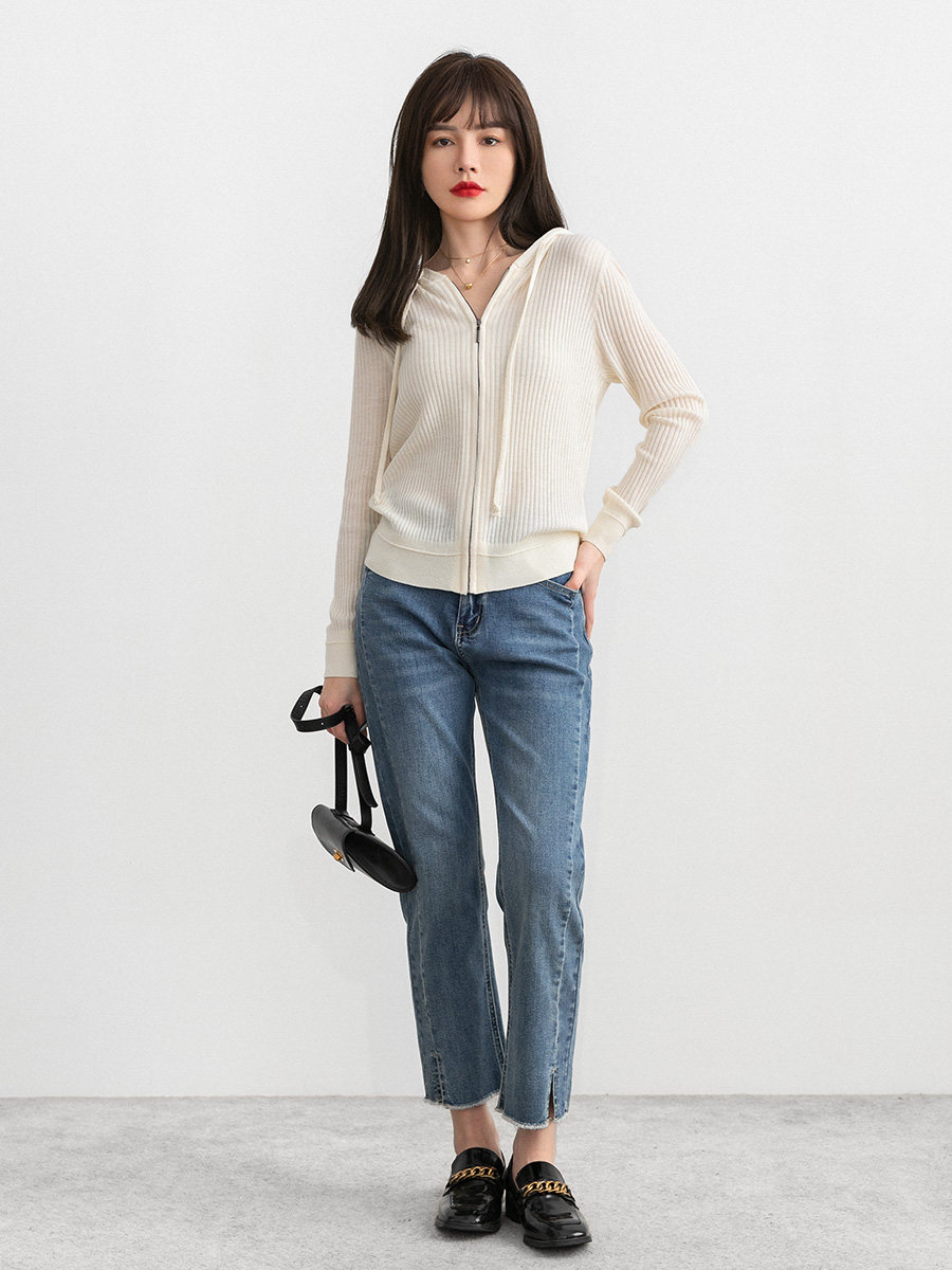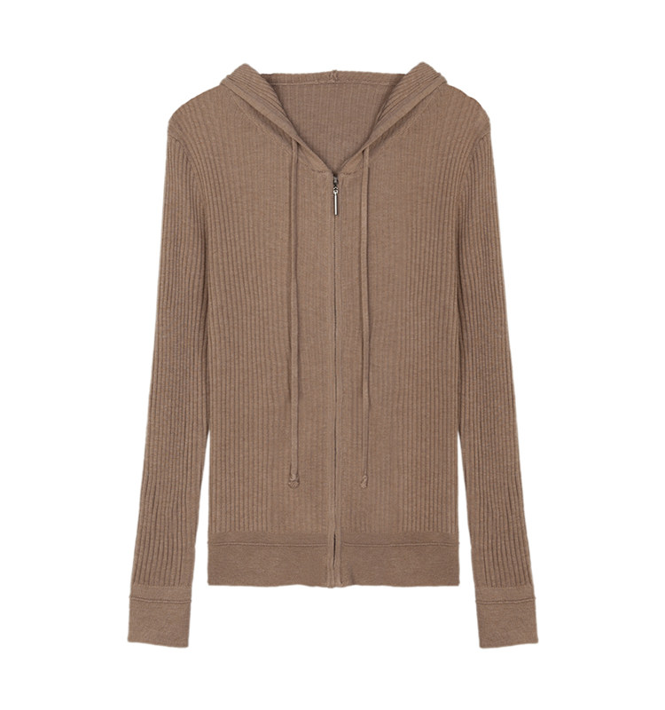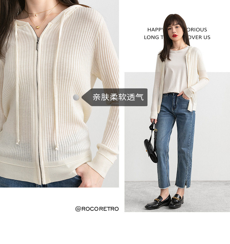 Белый шерстяной кардиган с капюшоном, трикотажный осенний свитер с молнией, куртка