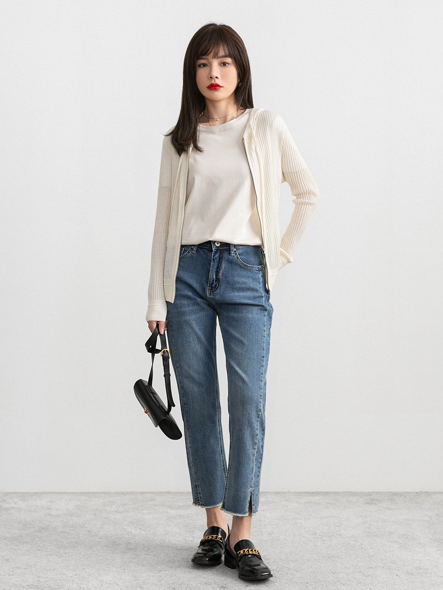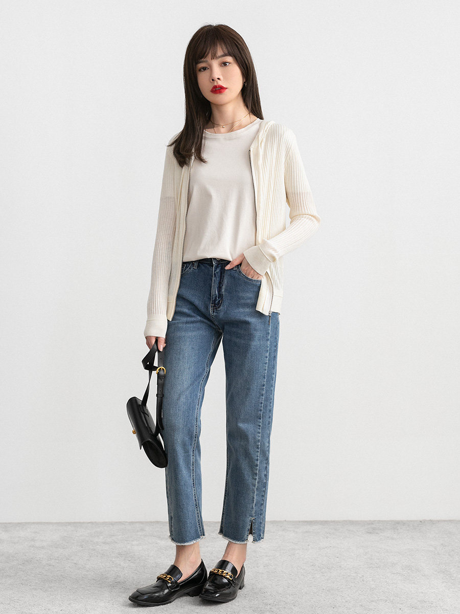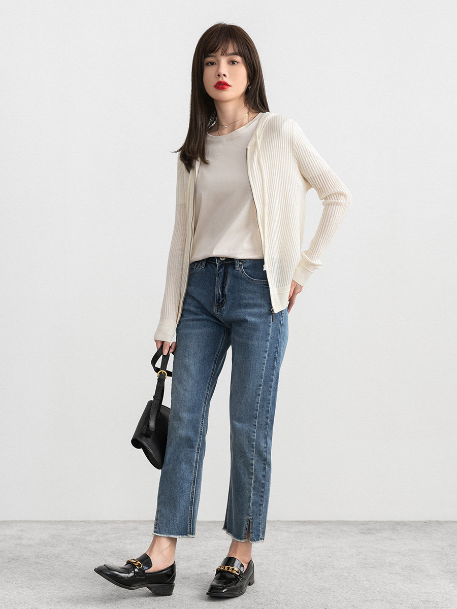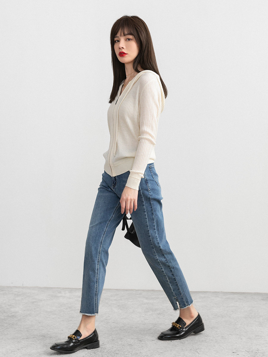 Белый шерстяной кардиган с капюшоном, трикотажный осенний свитер с молнией, куртка