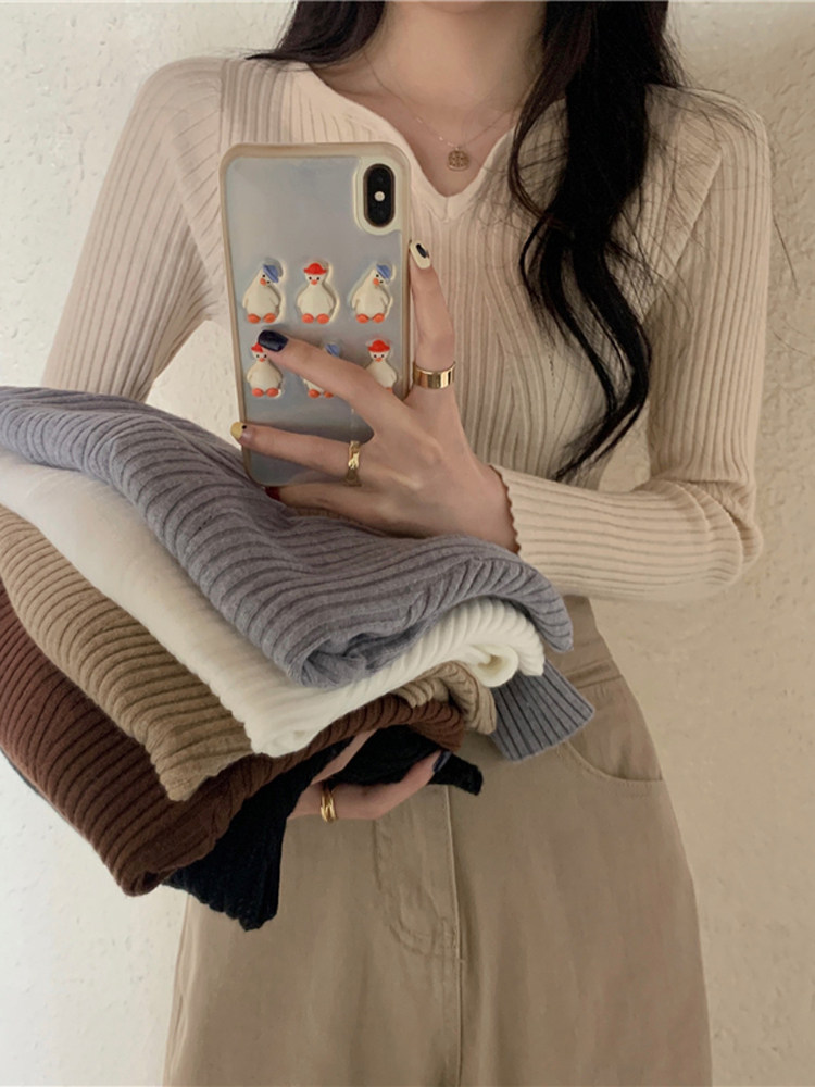 Черный утепленный базовый приятный телу свитер, демисезонный приталенный трикотажный лонгслив, V-образный вырез