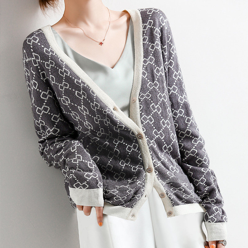 Летний шерстяной кардиган, свитер, кашемировая куртка, V-образный вырез, свободный крой