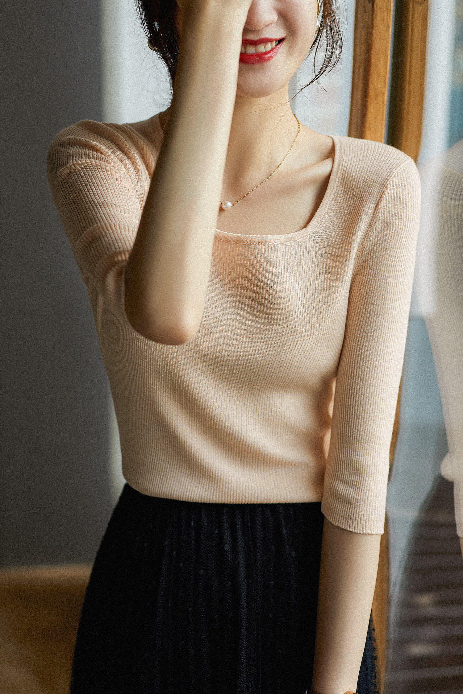 - Элегантный абрикос (квадратный воротник).