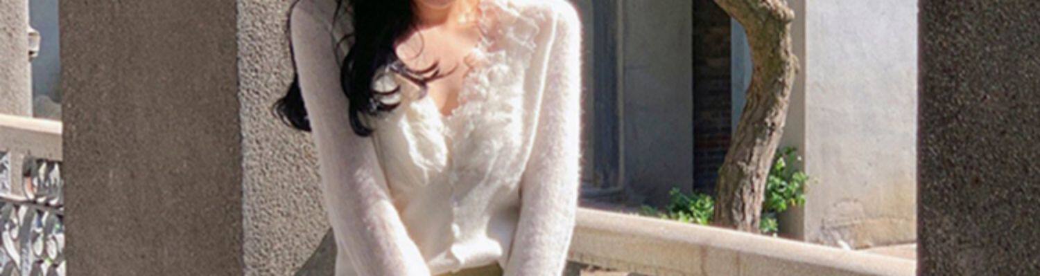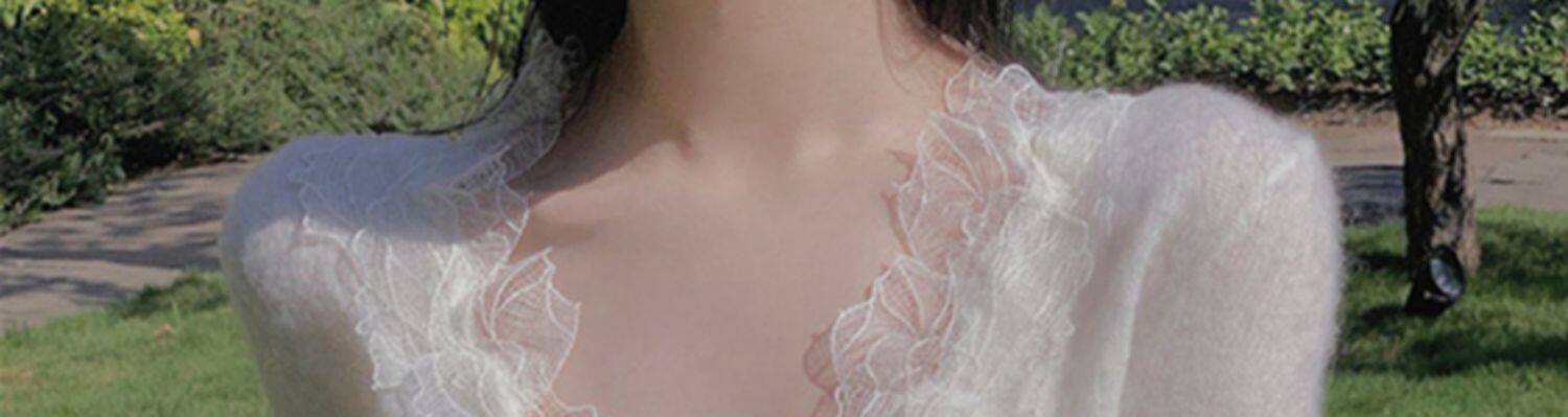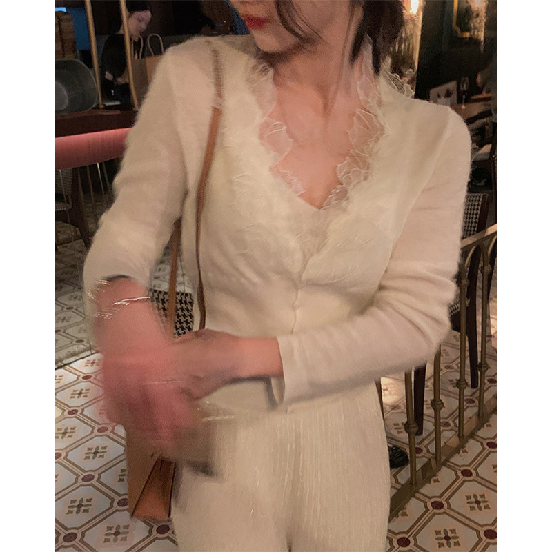 Белый трикотажный дизайнерский кружевной шелковый приятный телу свитер, французский стиль, тренд сезона