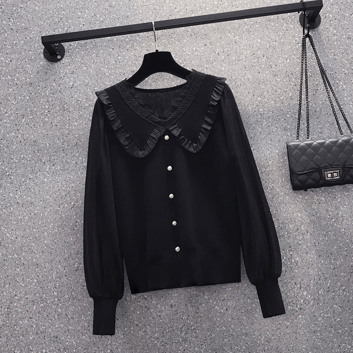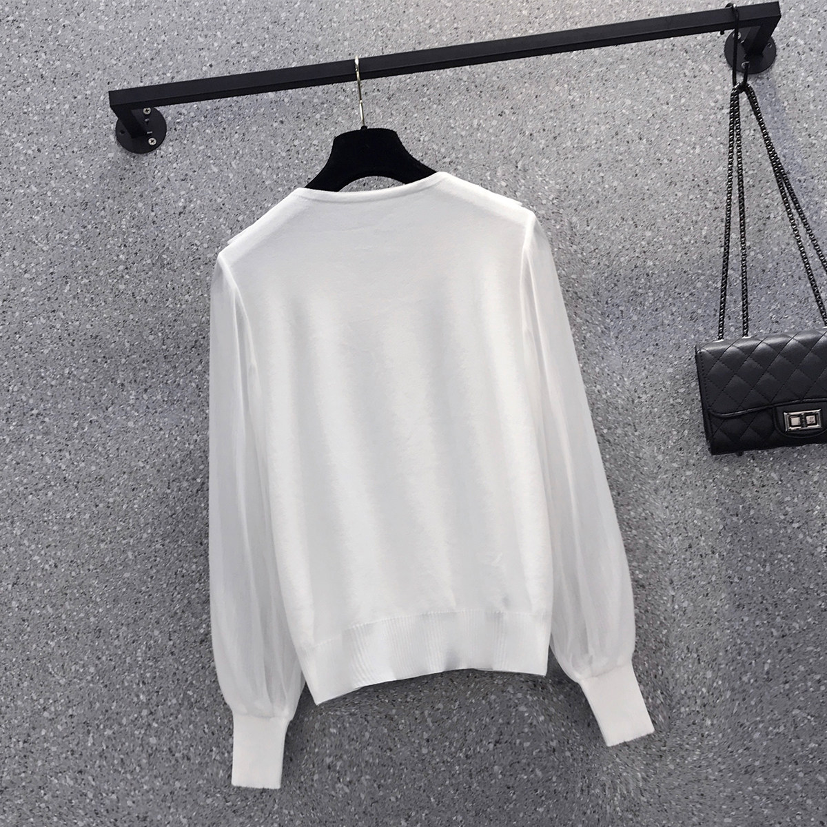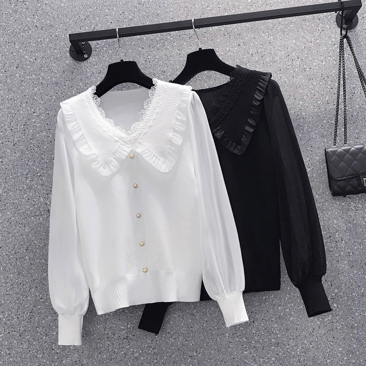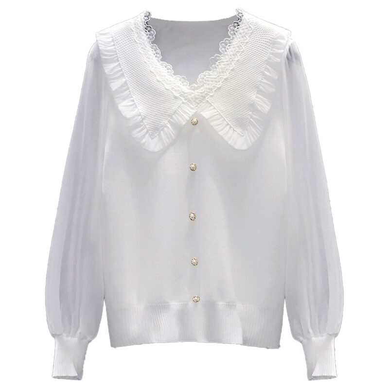 Трикотажный весенний свитер, шифоновый базовый приятный телу лонгслив, французский стиль, V-образный вырез, 2023, большой размер
