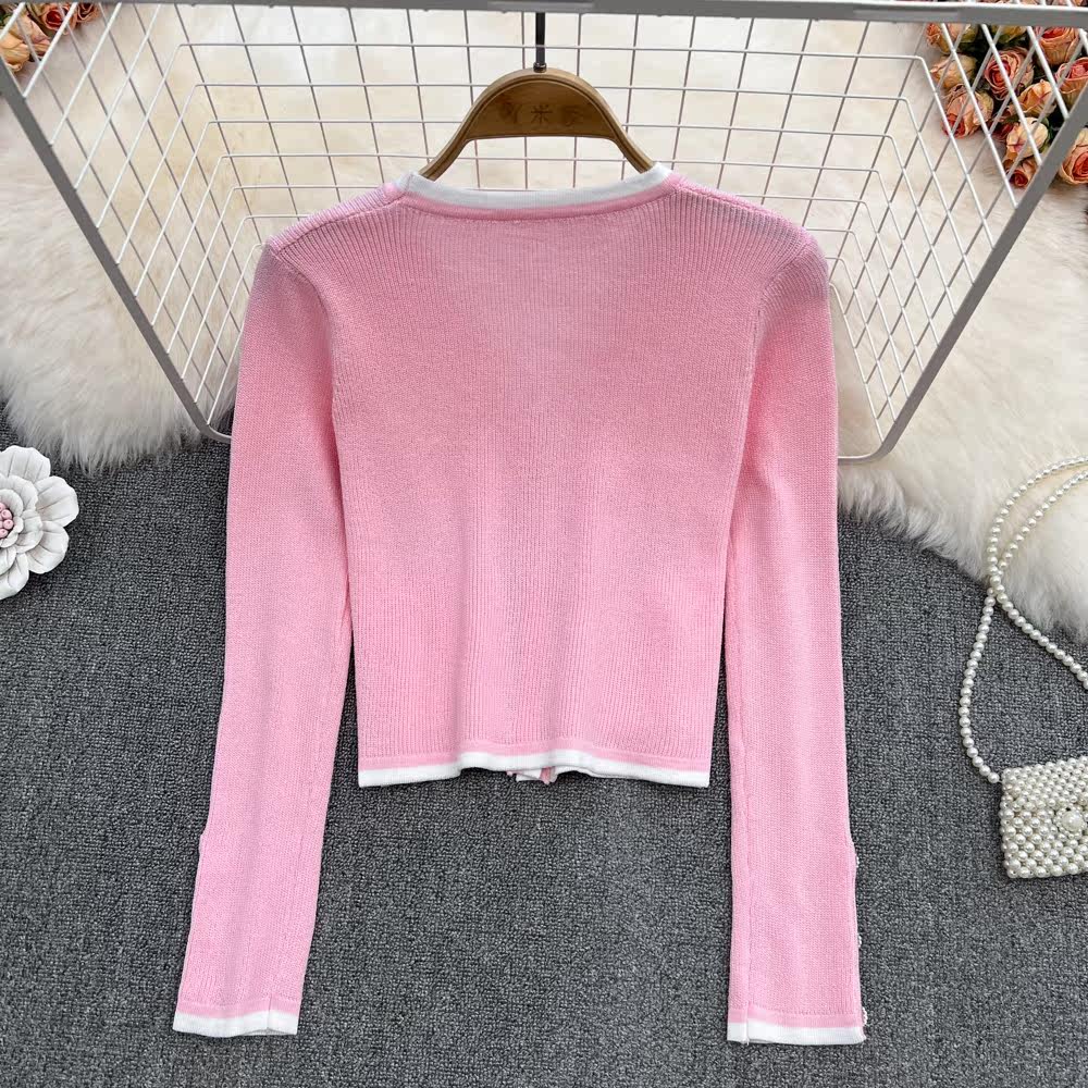 Весенний короткий милый лонгслив с бантиком, трикотажный кардиган, куртка