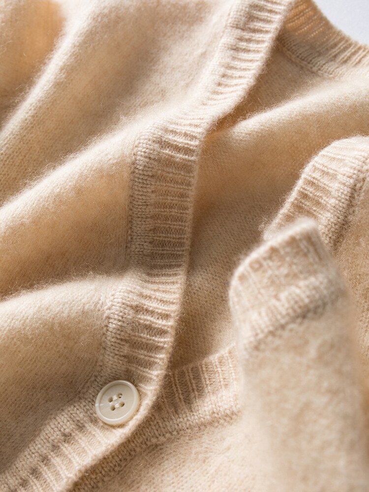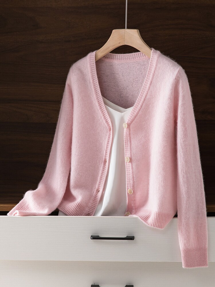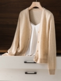 Кашемировый трикотажный кардиган, свитер, демисезонная тонкая шерстяная куртка, V-образный вырез, облегающий крой