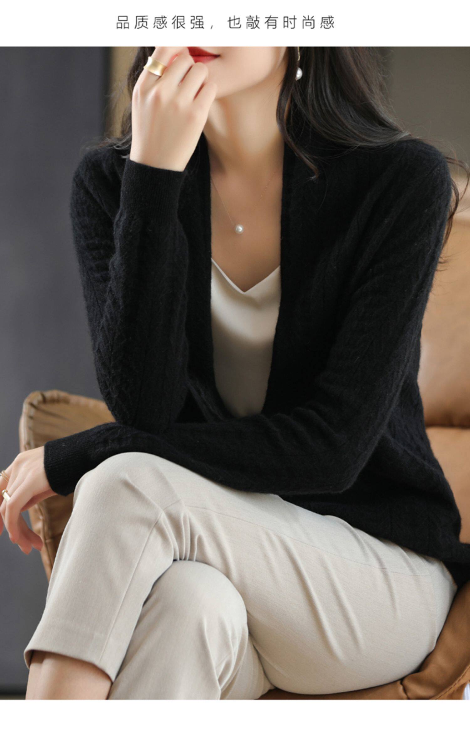 Шерстяной свитер, кардиган, кашемировая модная накидка, V-образный вырез, оверсайз