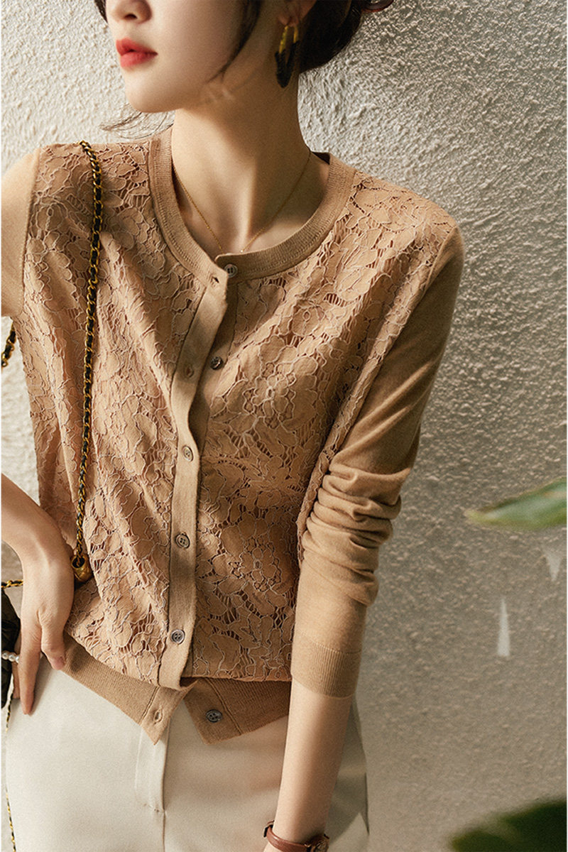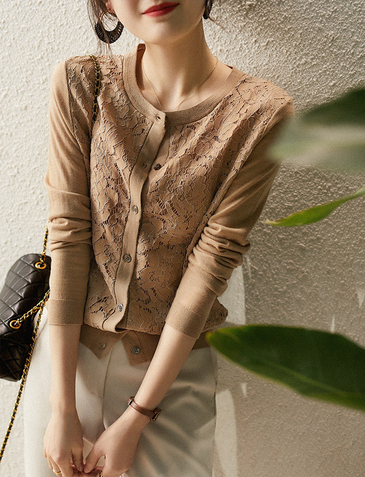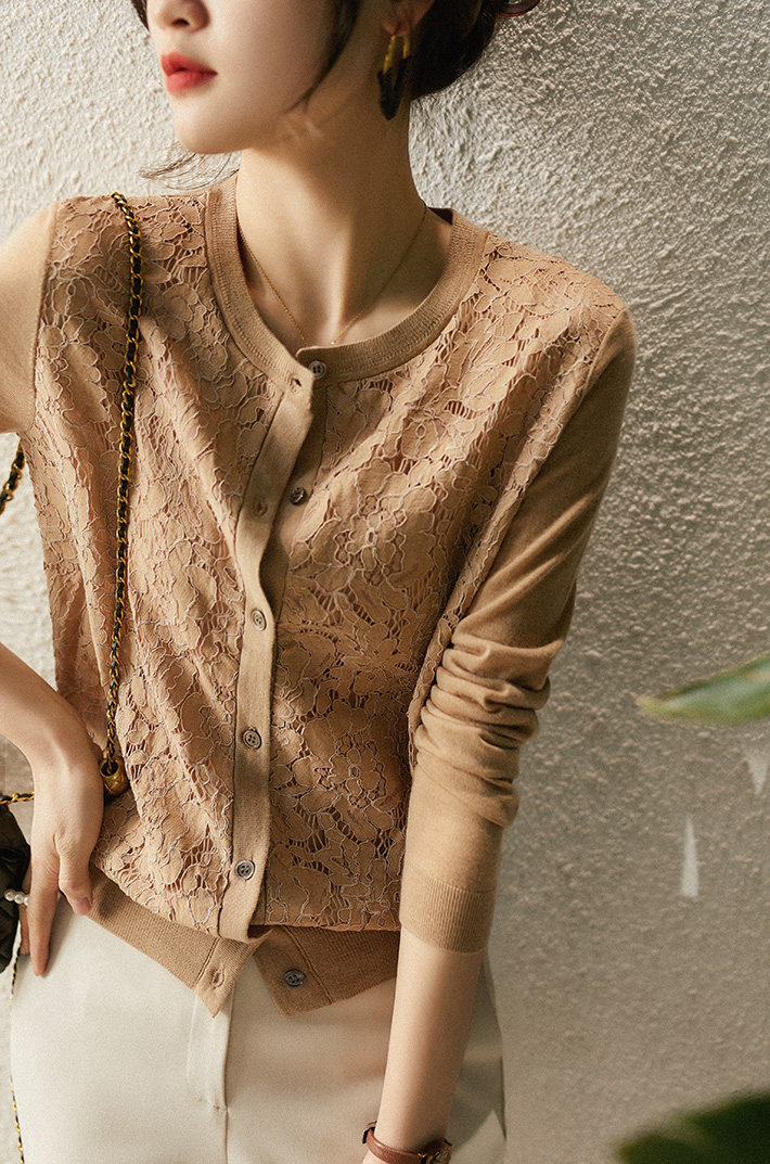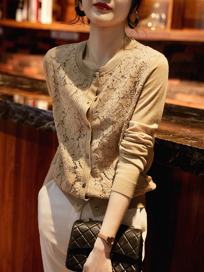 の [ZWA463548AG Xiaohan Pavilion Xin'ao Шерстяное вязаное стекло кружевное кардиган