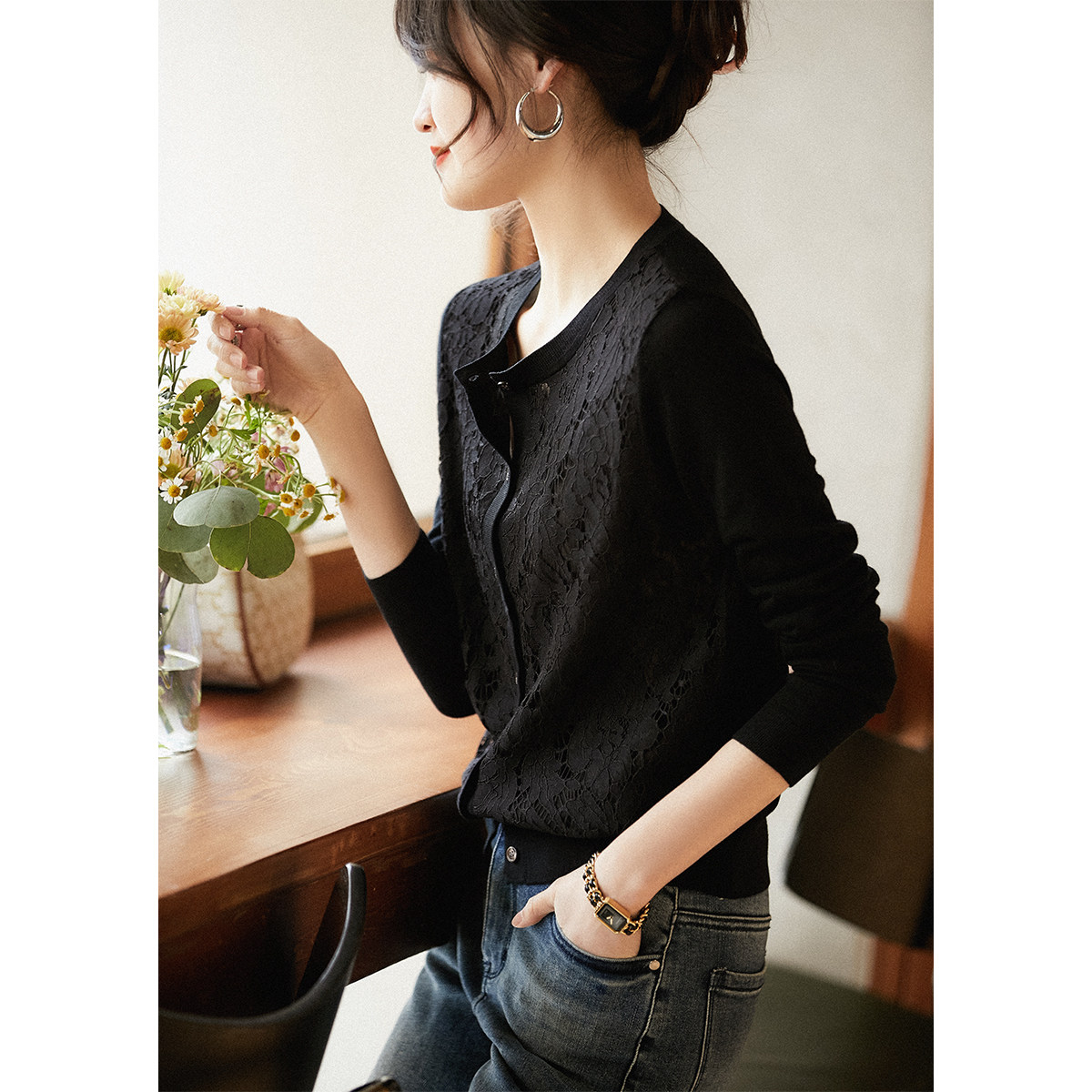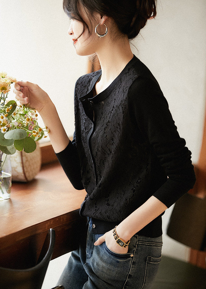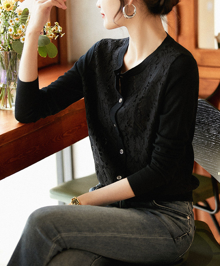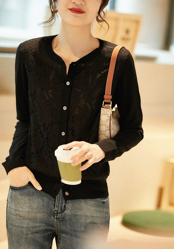 の [ZWA463548AG Xiaohan Pavilion Xin'ao Шерстяное вязаное стекло кружевное кардиган