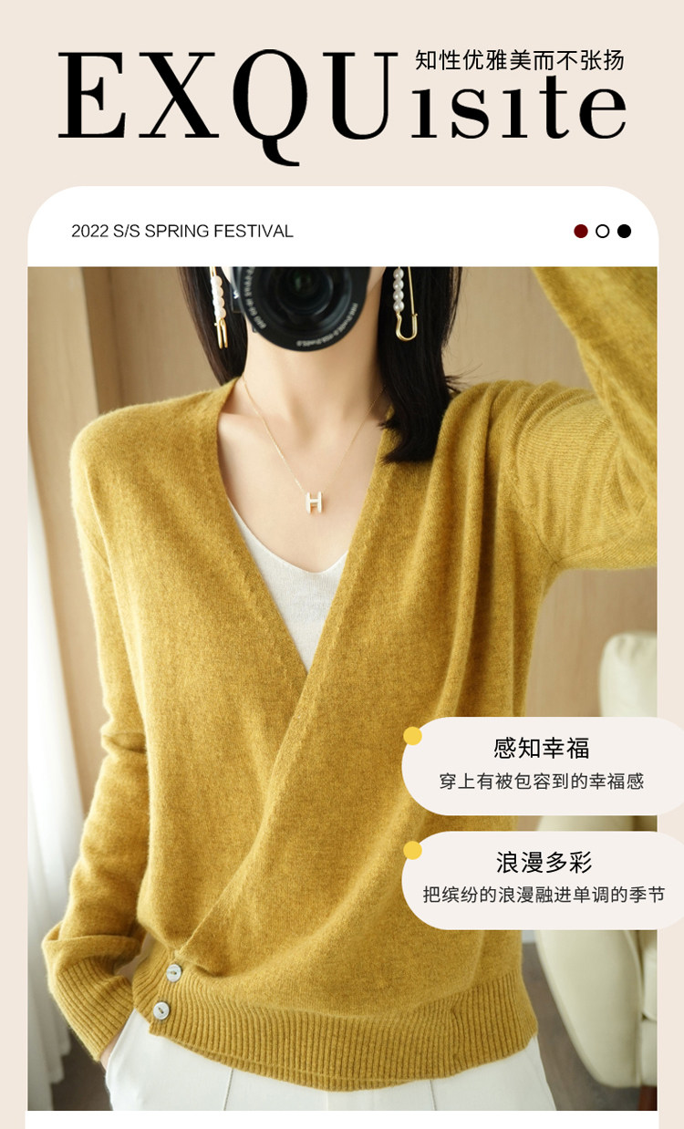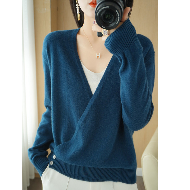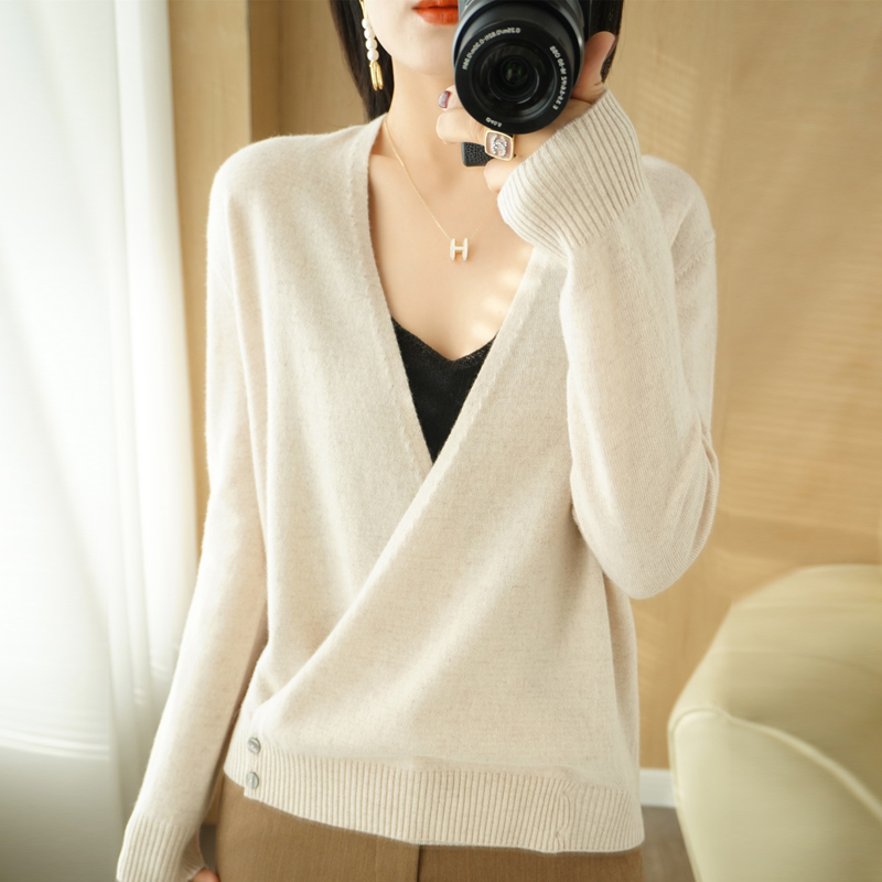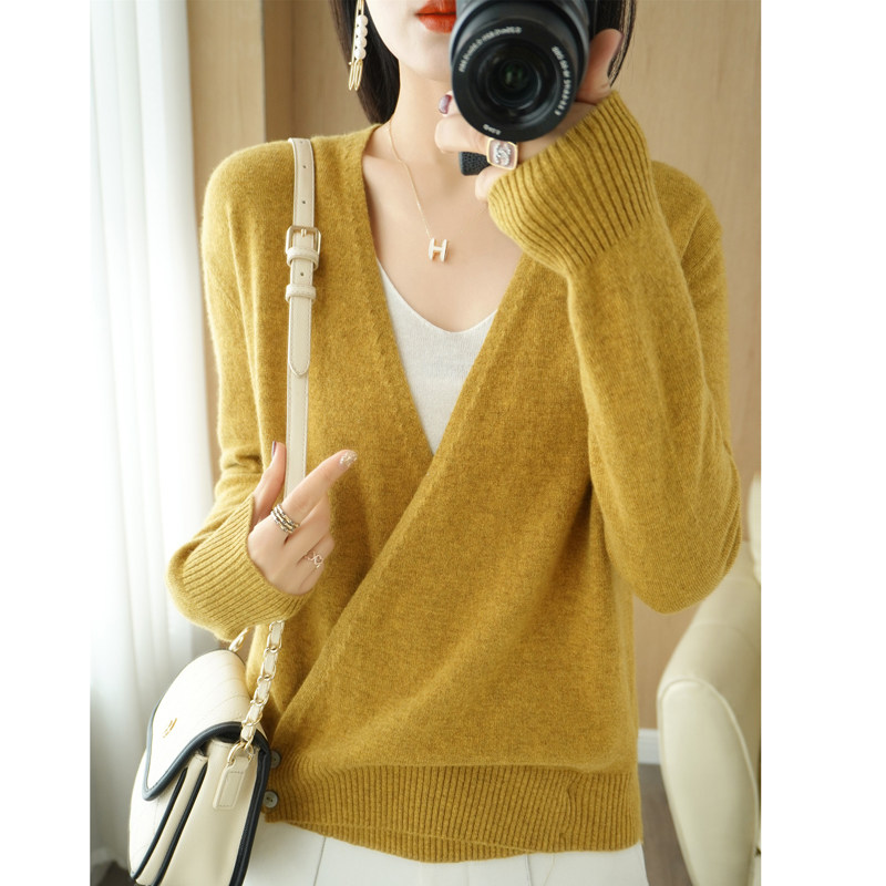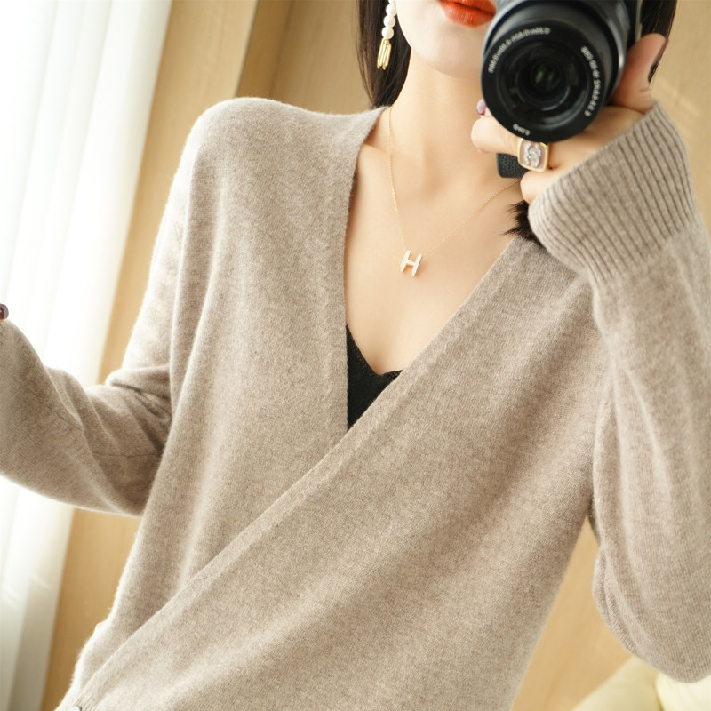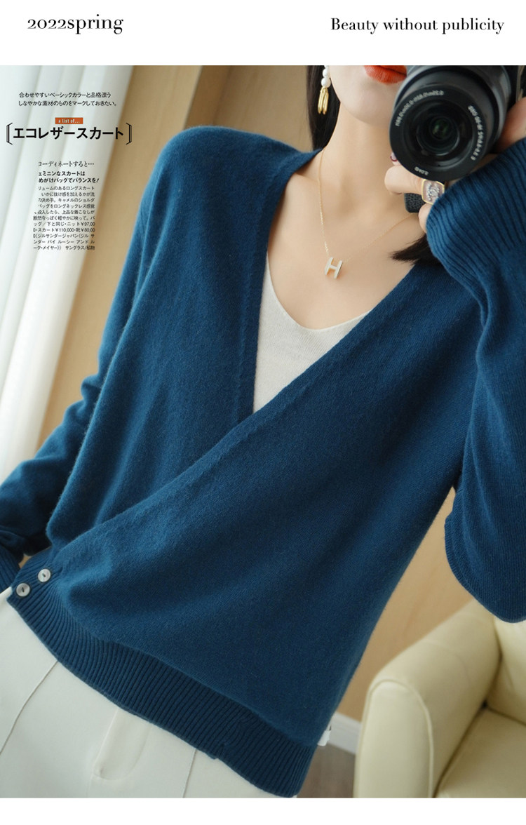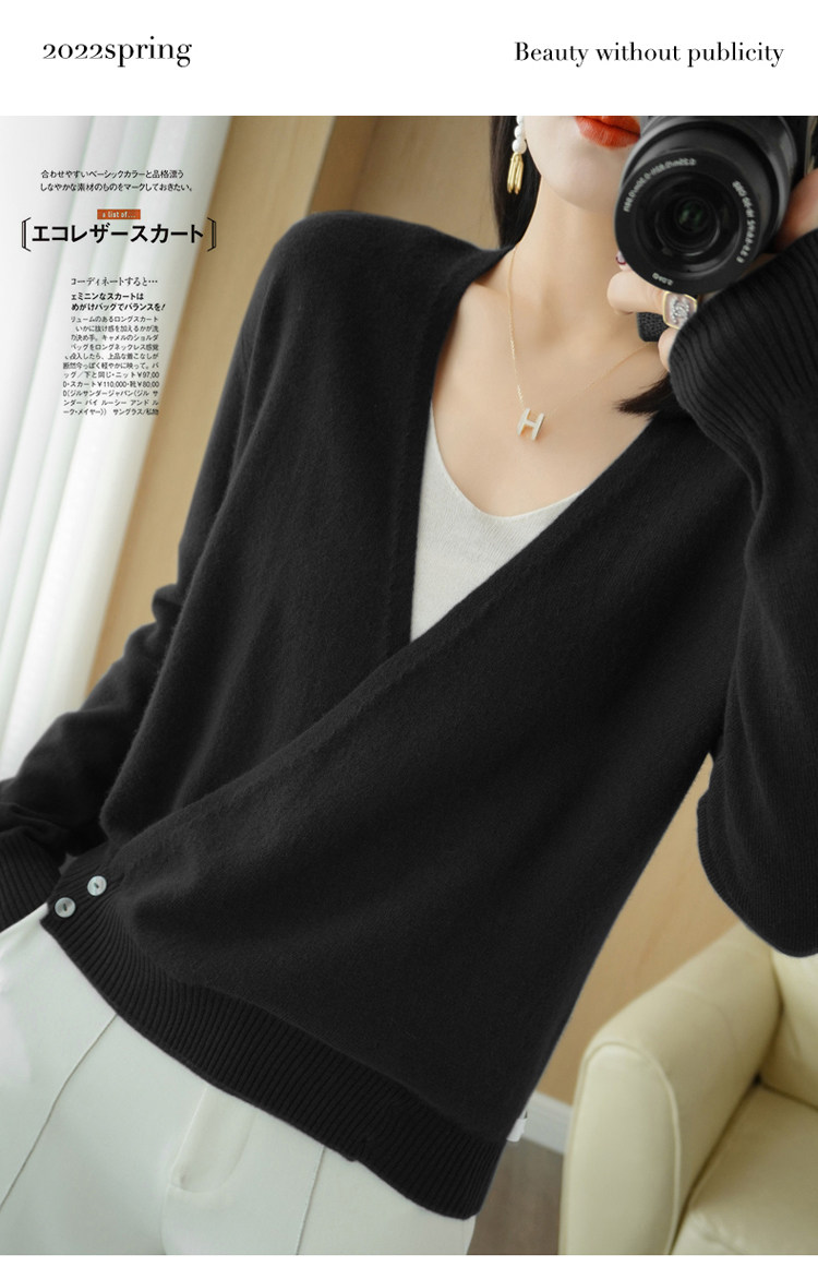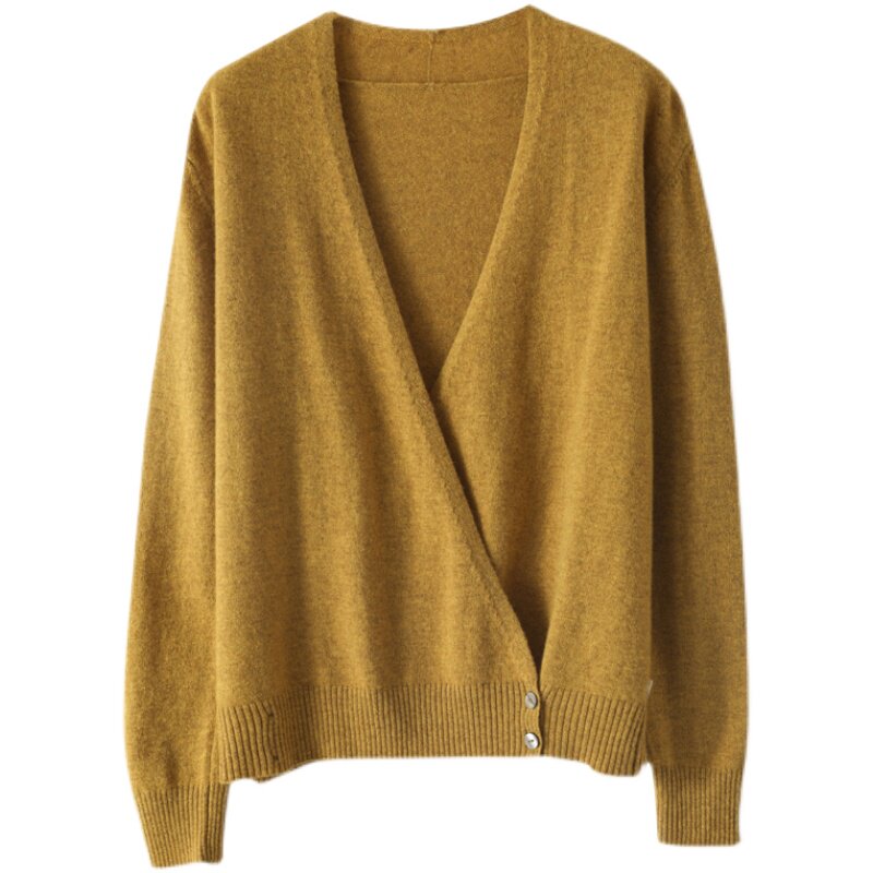 Летний трикотажный лонгслив, кардиган, кашемировый свитер, V-образный вырез, свободный крой, оверсайз