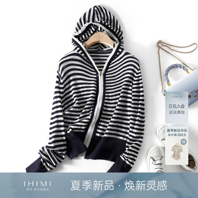IHIMI Кардиган с капюшоном, весенний трикотажный свитер, модная рубашка, куртка