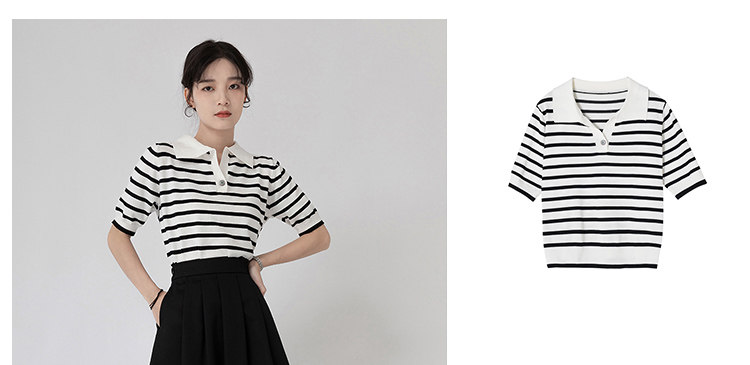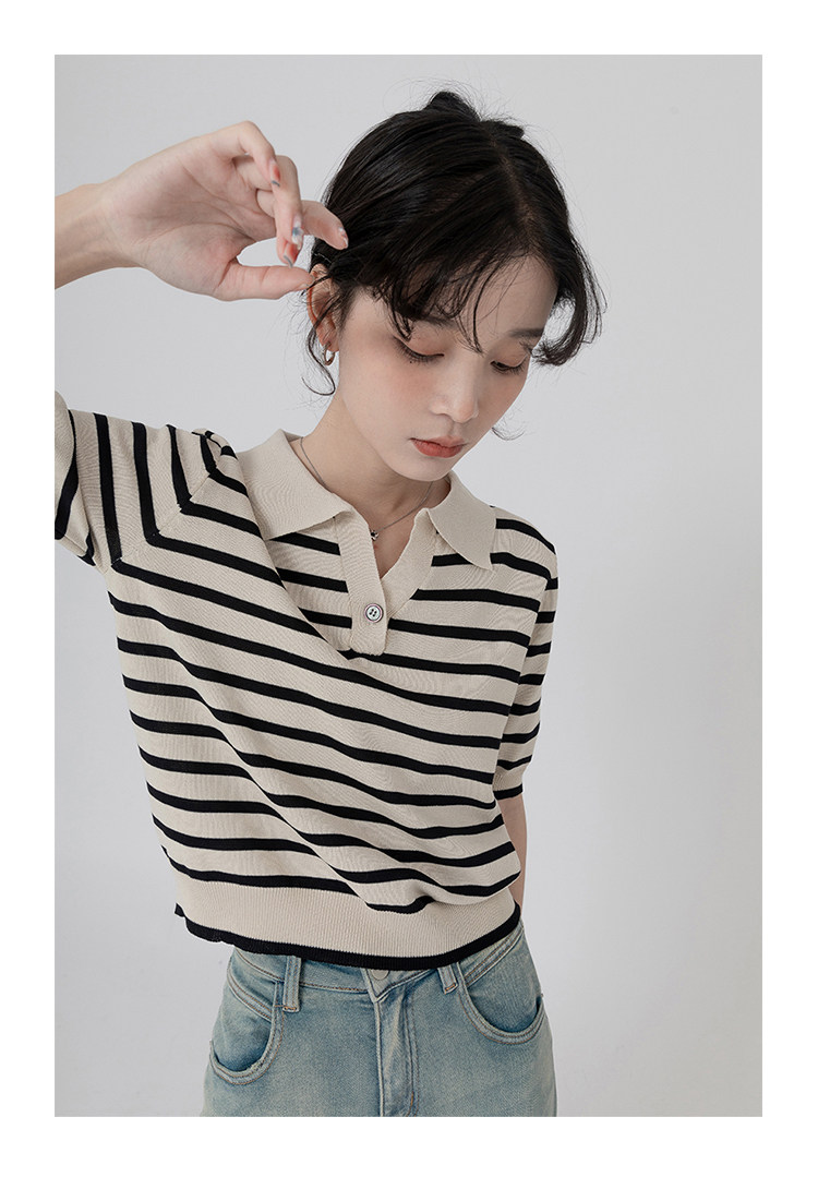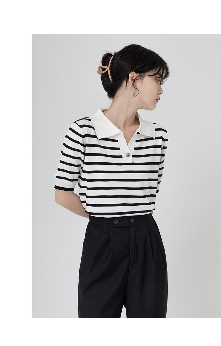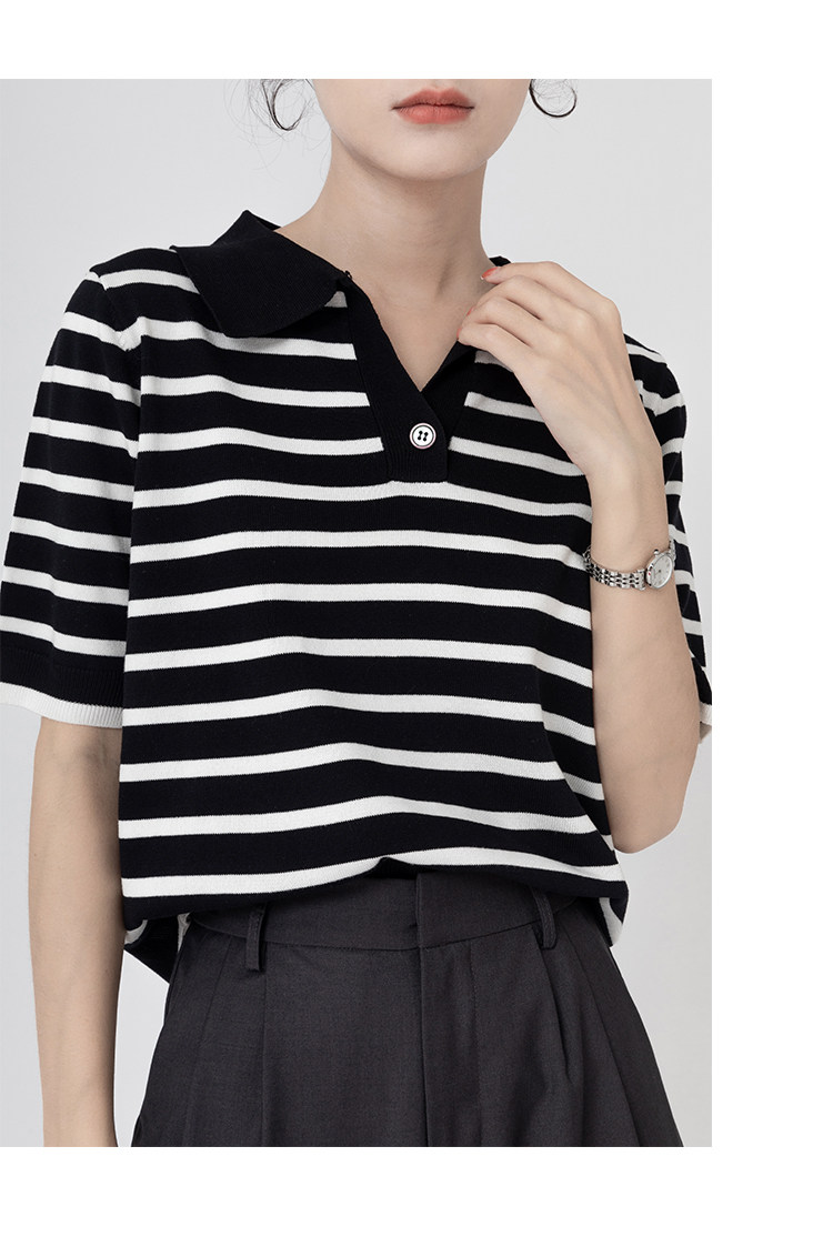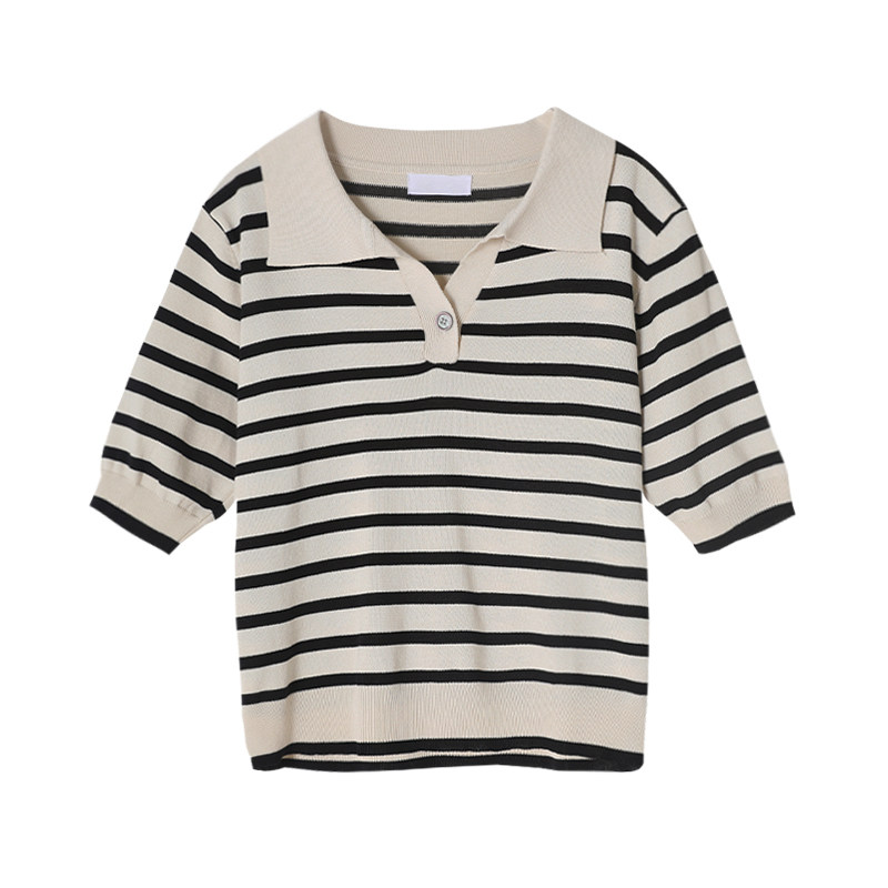 桂儿 «Вискоза100% растительное волокно» гладкое и дышащее!Полосатый женский свитер-футболка с короткими рукавами