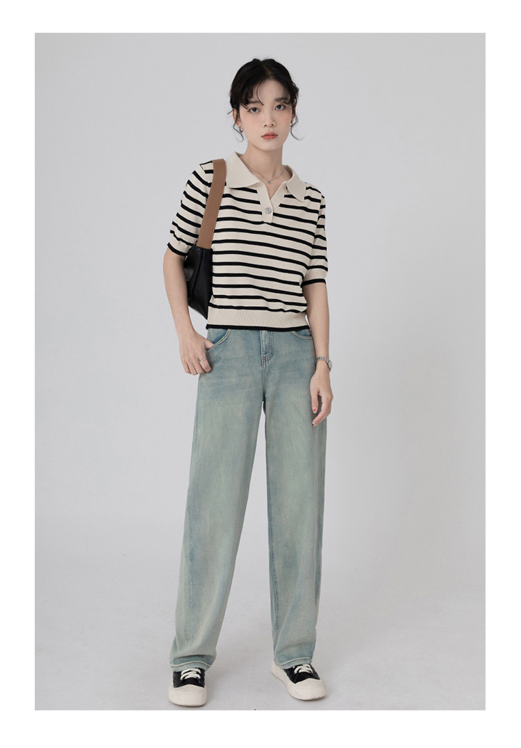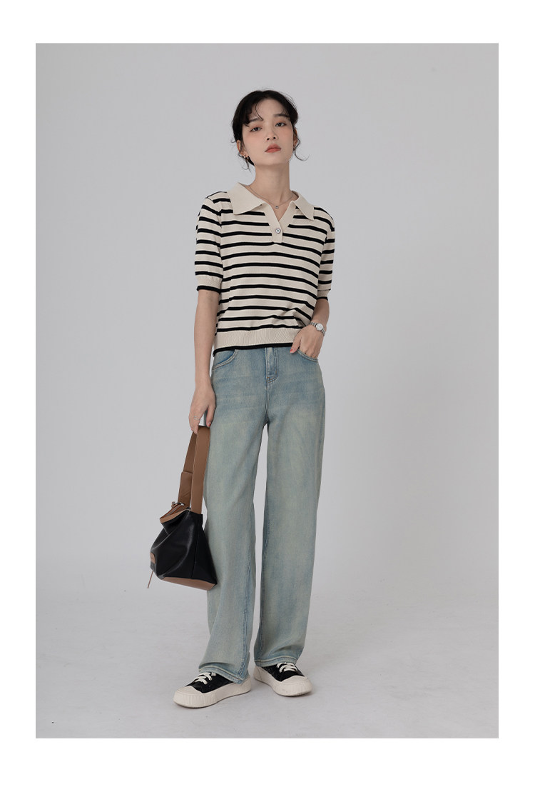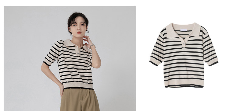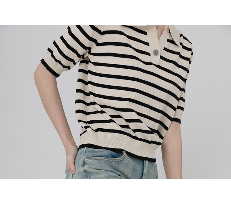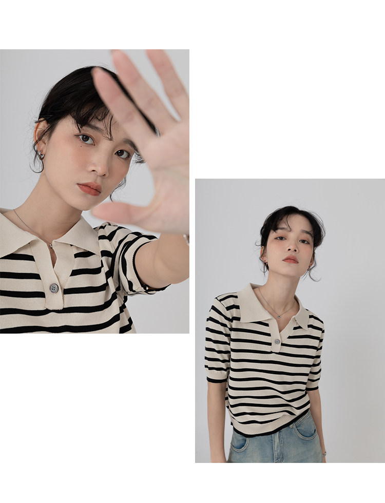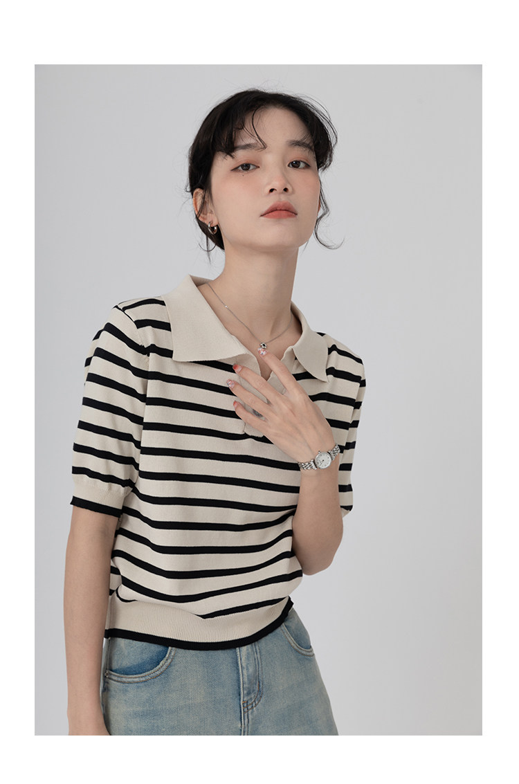 桂儿 «Вискоза100% растительное волокно» гладкое и дышащее!Полосатый женский свитер-футболка с короткими рукавами