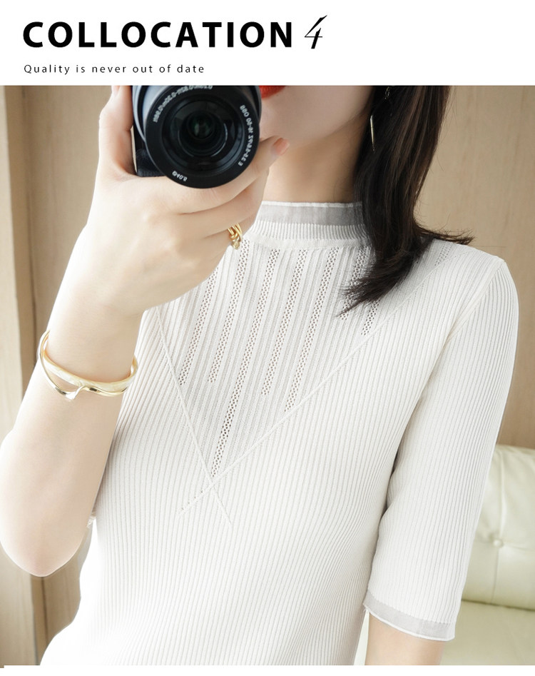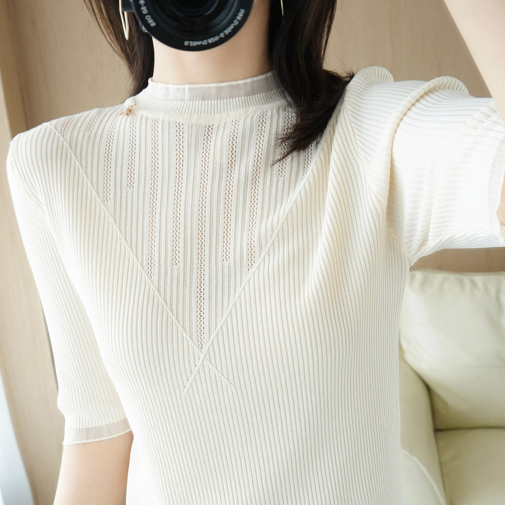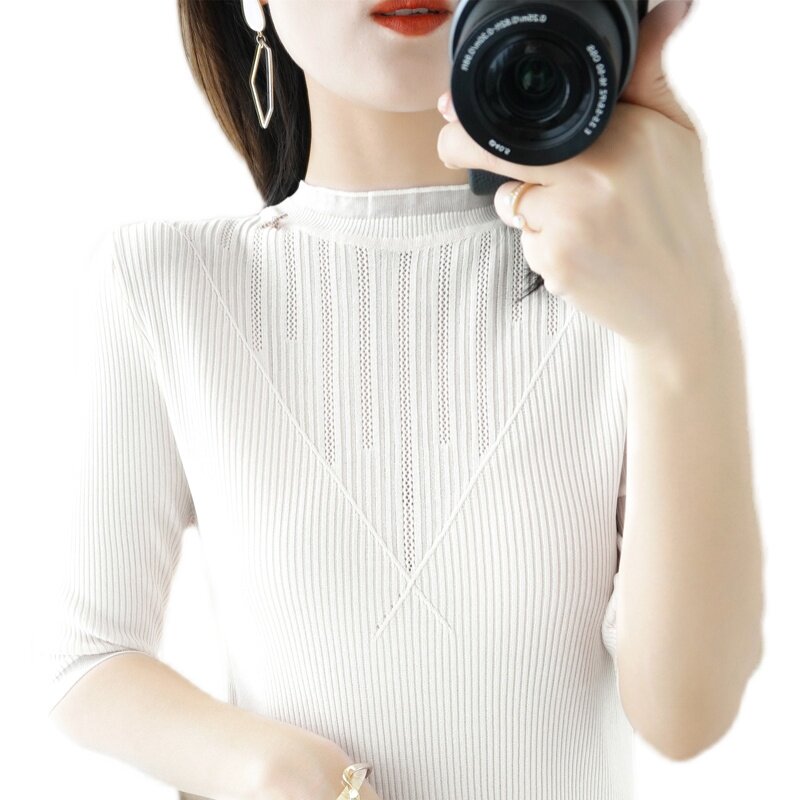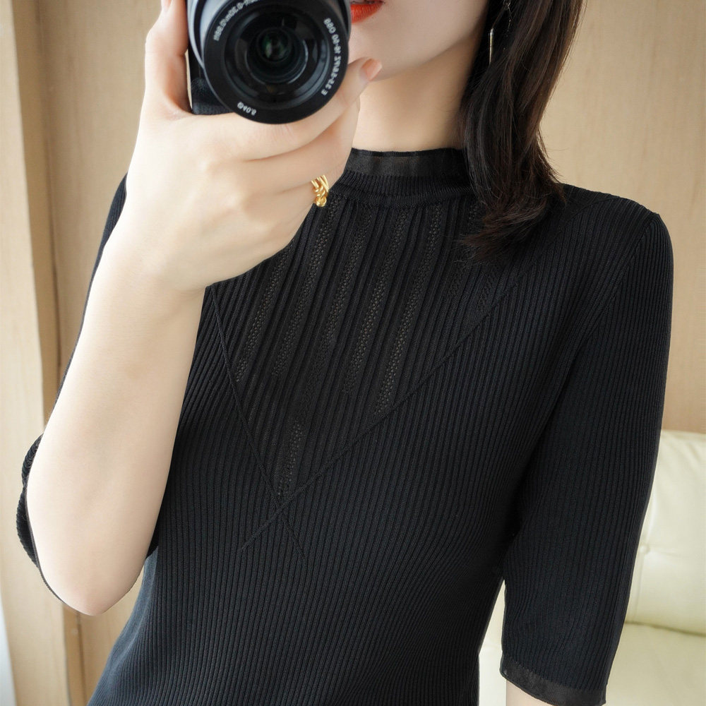 Летняя дизайнерская базовая приятная телу модная сексуальная футболка, высокий воротник, облегающий крой