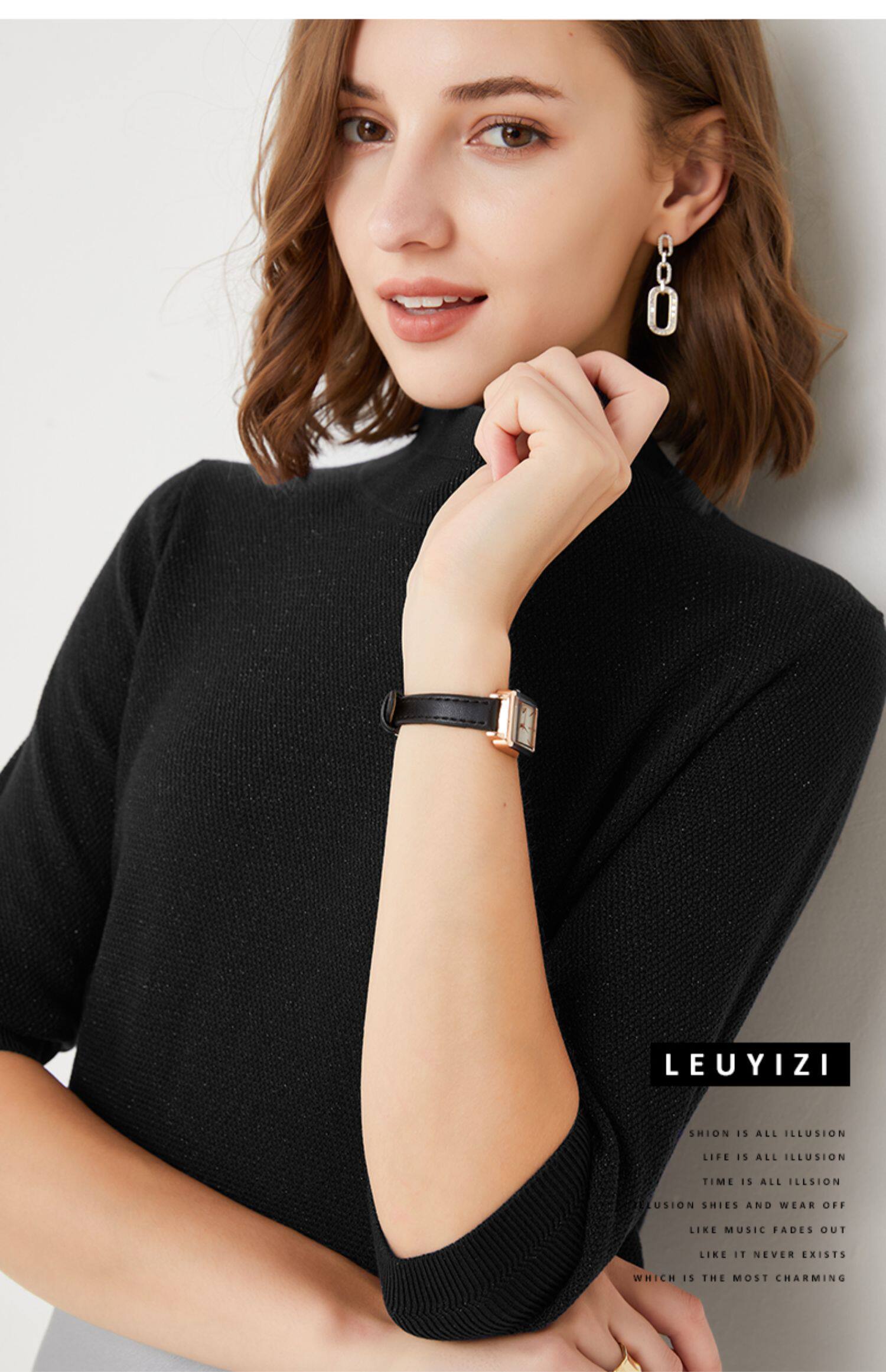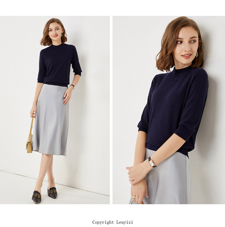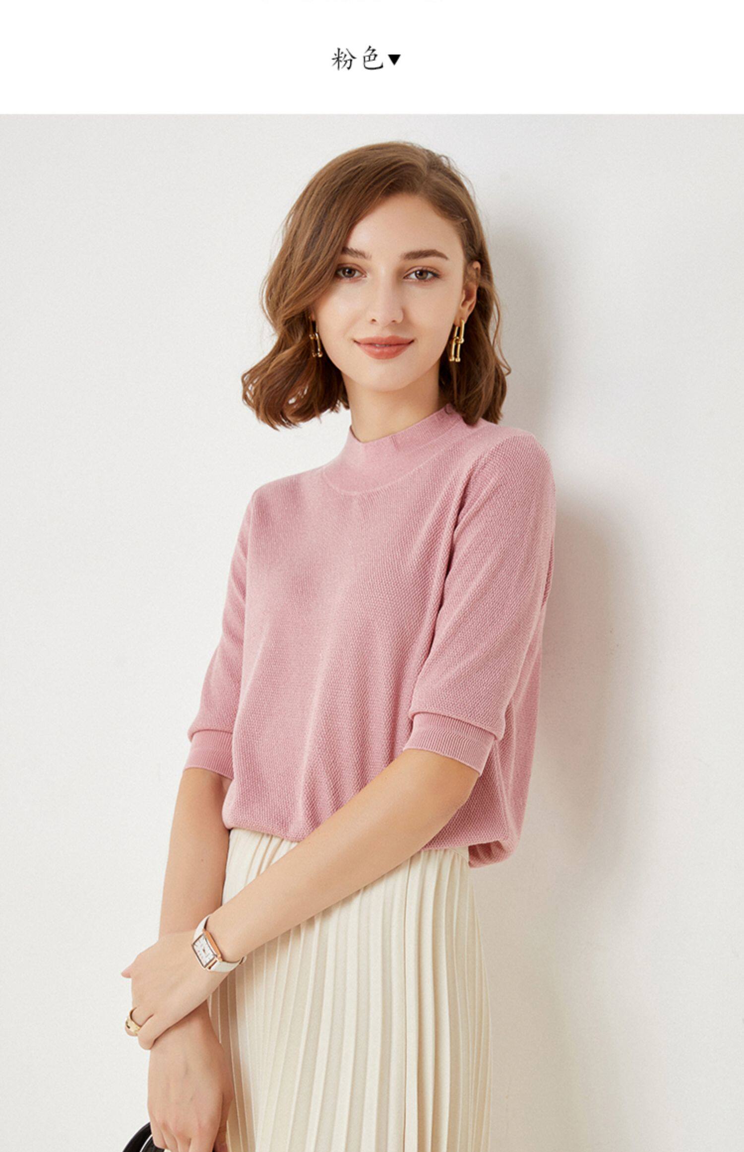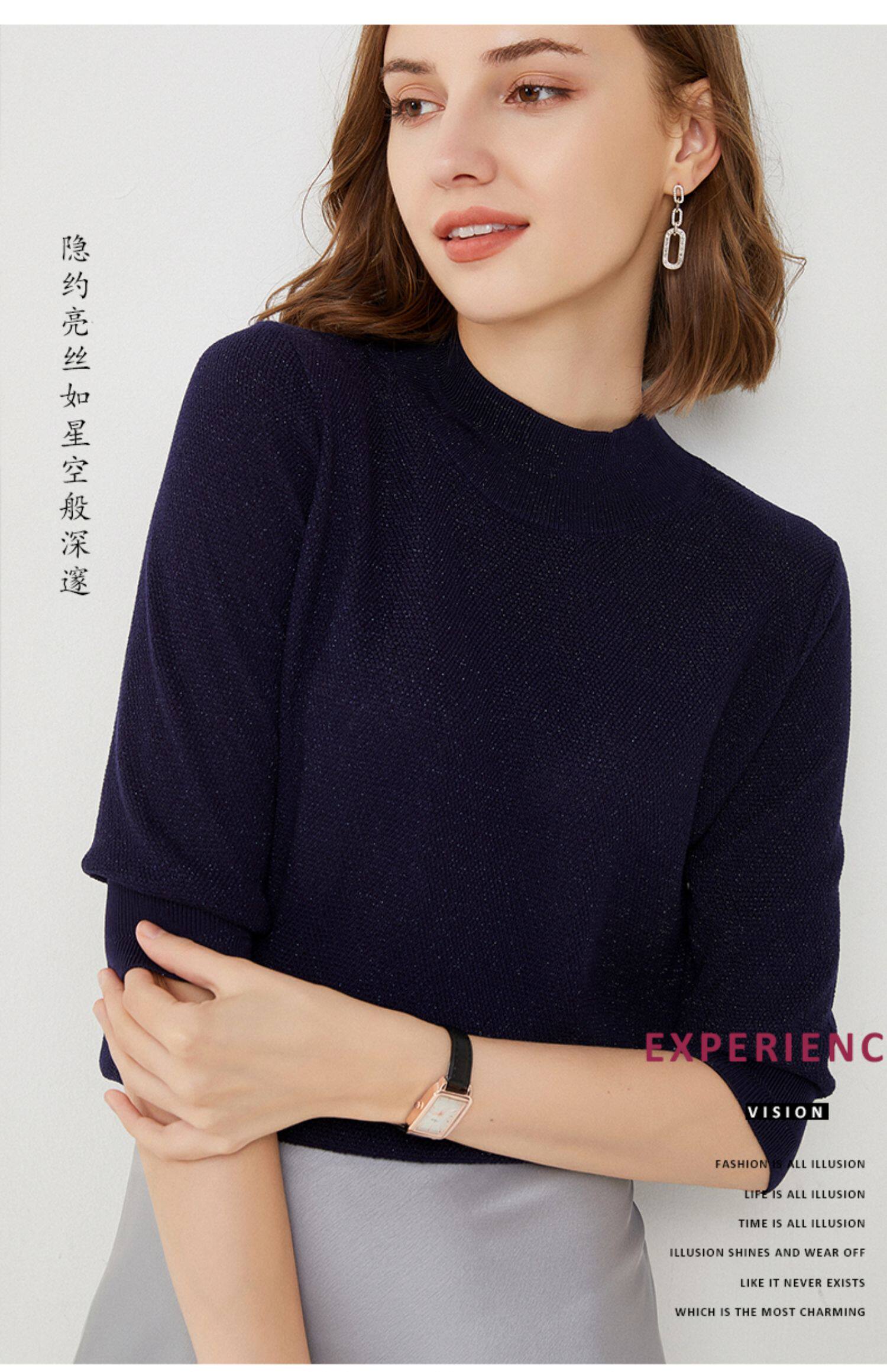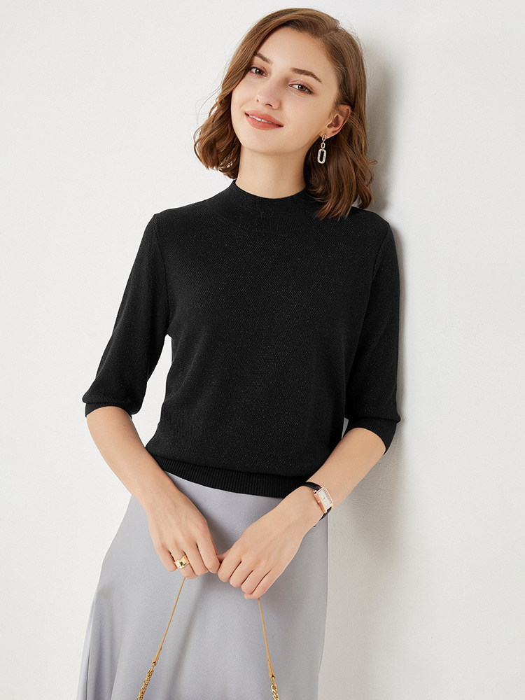 Трикотажный свитер, весенняя трикотажная футболка, высокий воротник, тренд сезона
