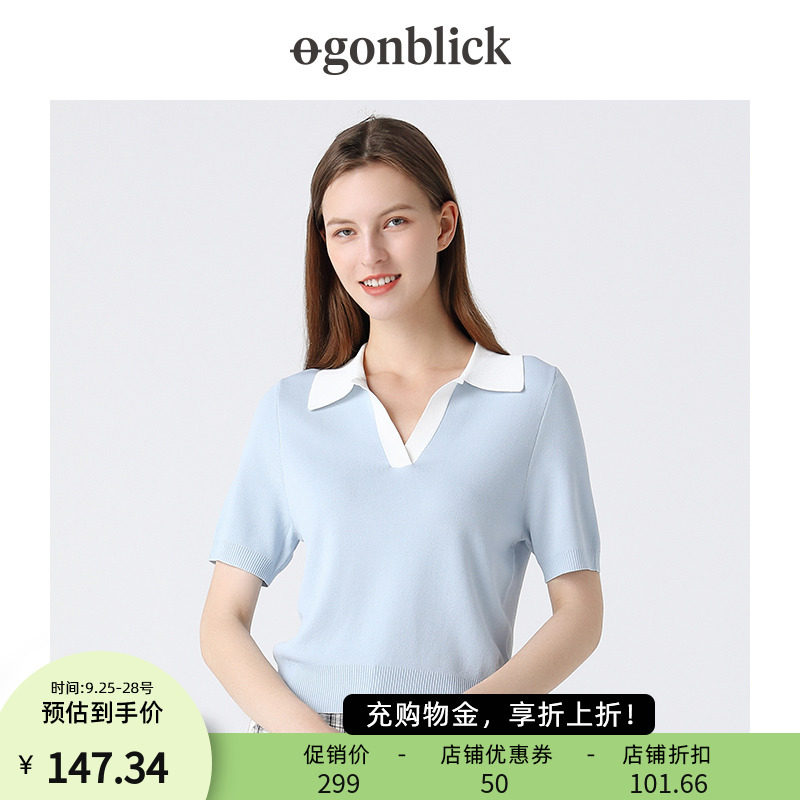 Скандинавская трикотажная футболка polo, трикотажный свитер, французский стиль, коллекция 2022, осенняя, короткий рукав, по фигуре