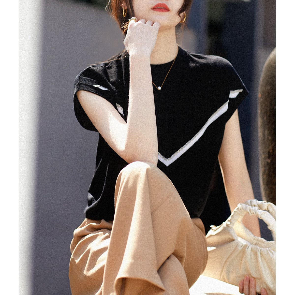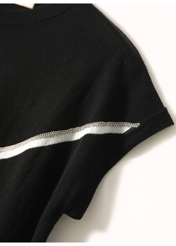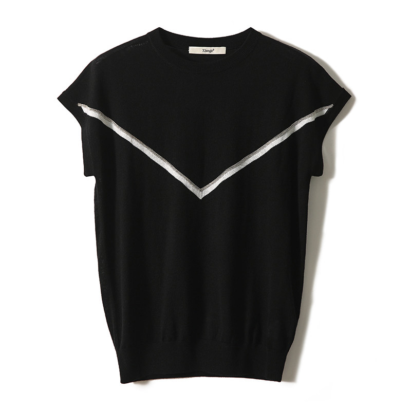 の [ZY258688MG] Сяхан Павильон B*C Шисная цепь Контрастная строчка круглая шея вязаная T -мала