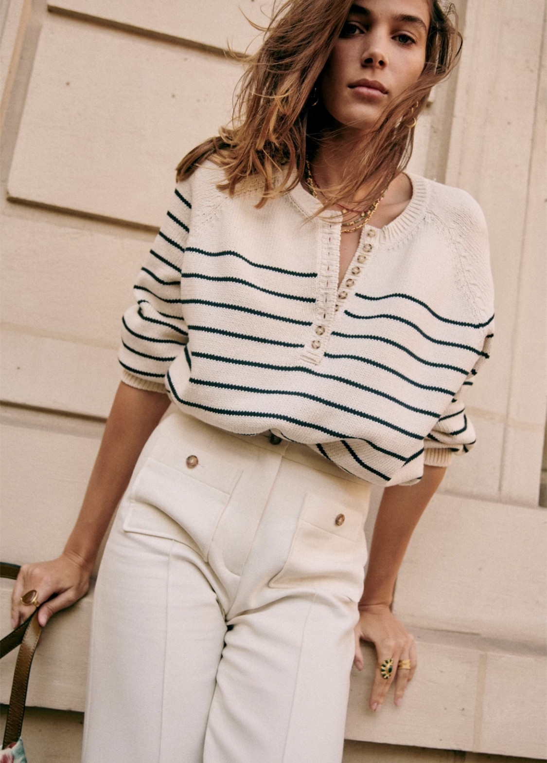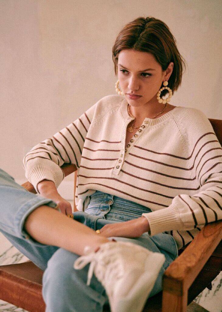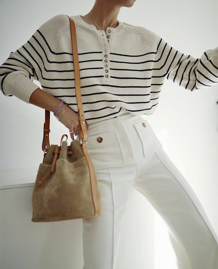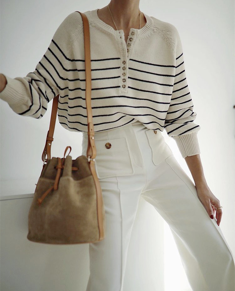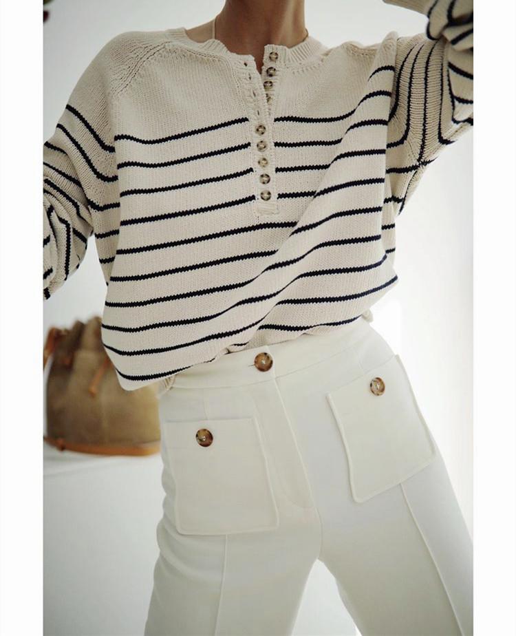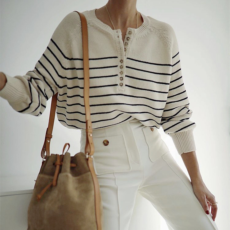 Ретро классический трикотажный свитер с круглым воротником, французский стиль