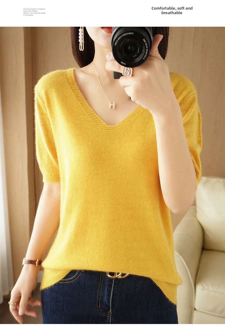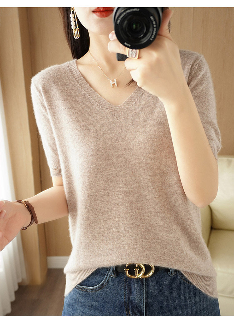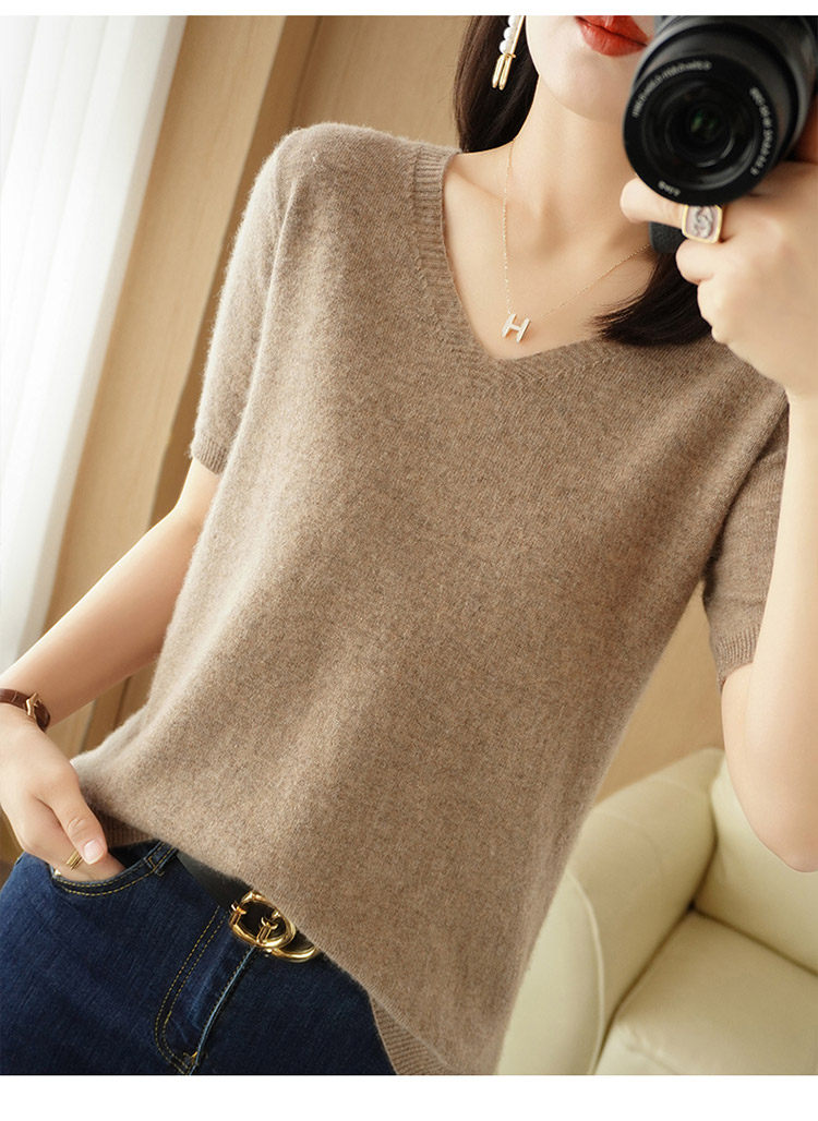 Осенняя однотонная трикотажная короткая футболка для отдыха, тонкая майка топ, короткий рукав, оверсайз