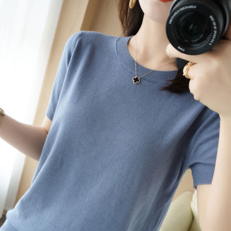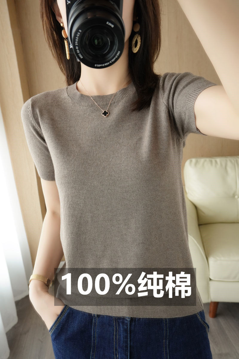 Летние хлопковые нарукавники с круглым воротником, трикотажная футболка, 100% хлопок, оверсайз, короткий рукав