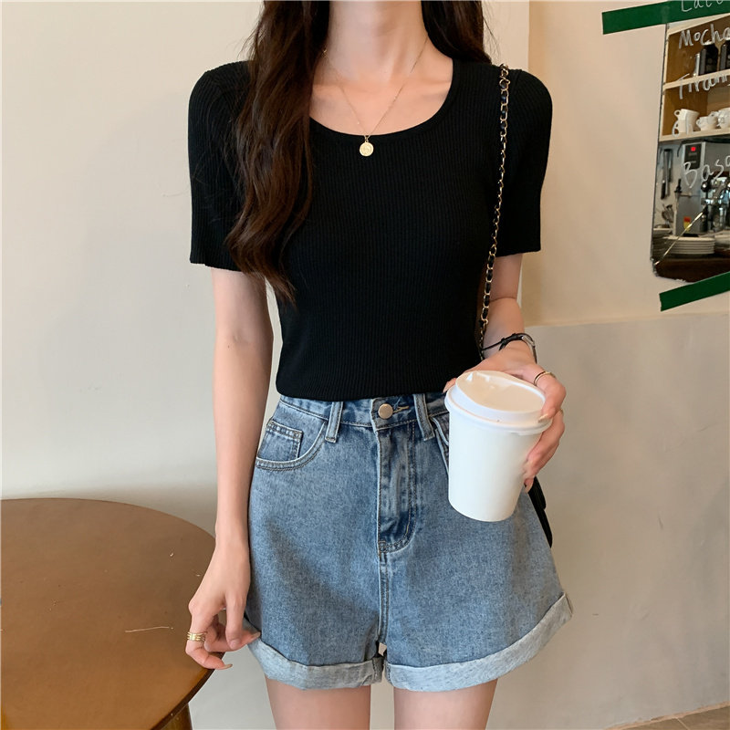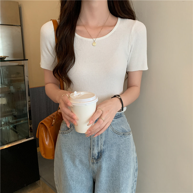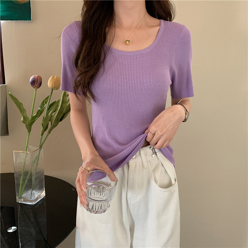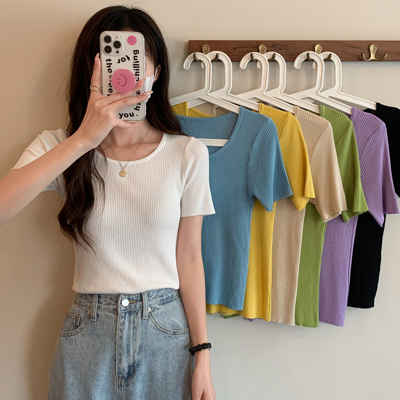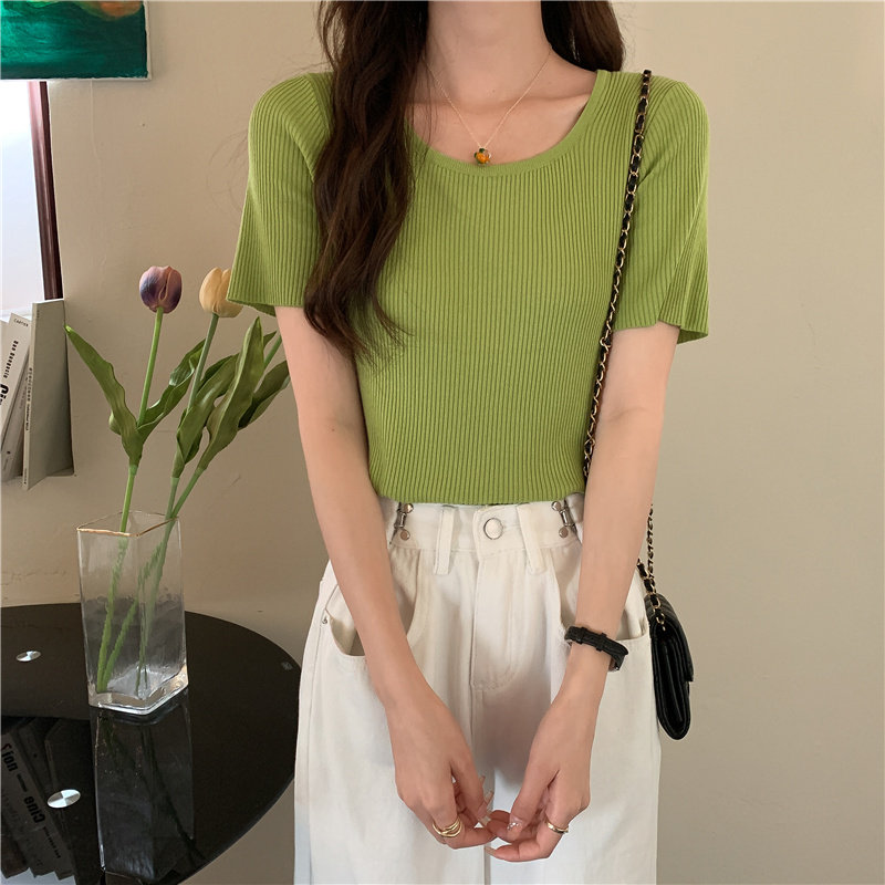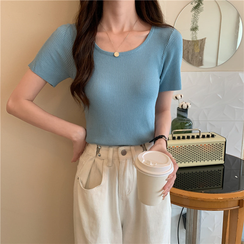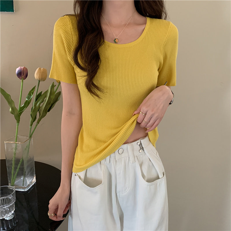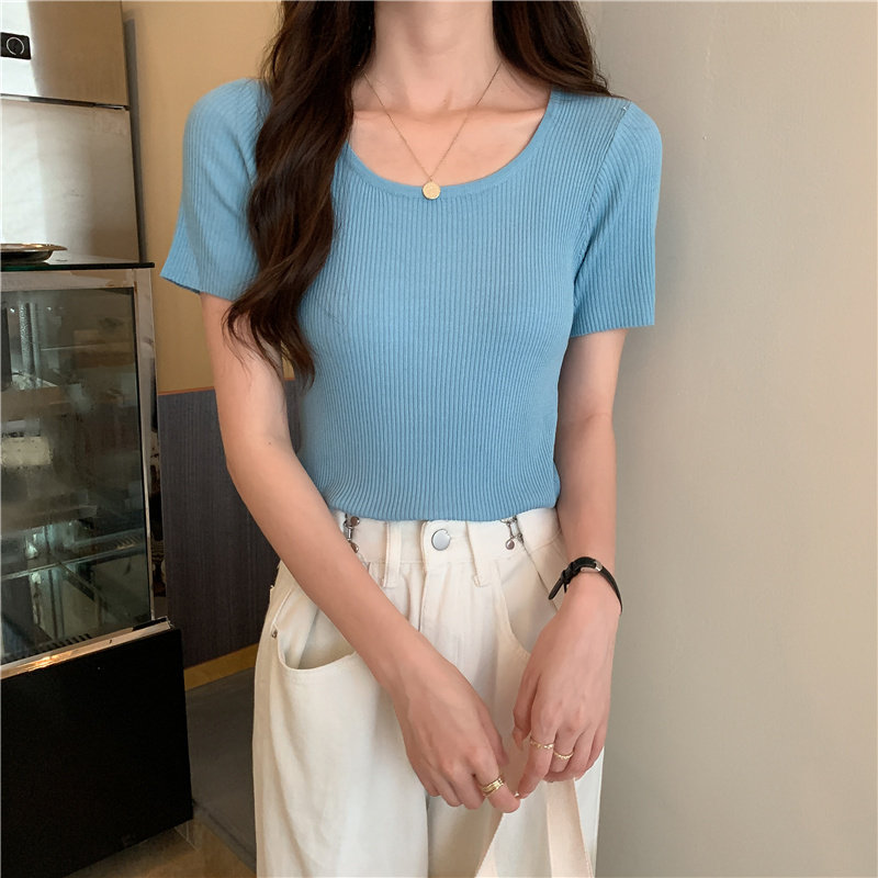 Tide, летний тонкий шелковый трикотажный свитер с круглым воротником, футболка, короткий рукав, облегающий крой, в обтяжку