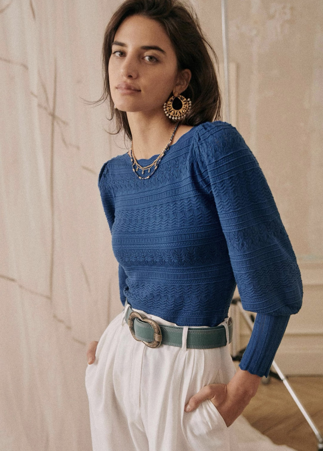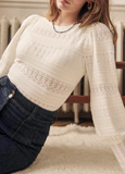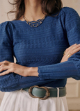 Трикотажный свитер, белый синий лонгслив, французский стиль, с рукавом