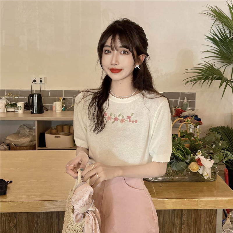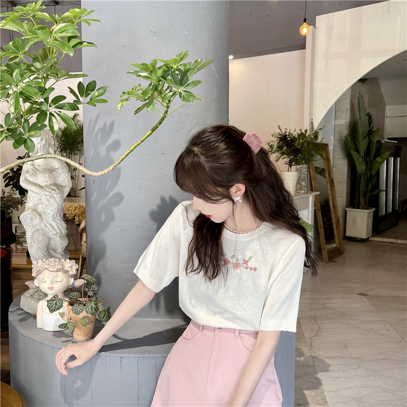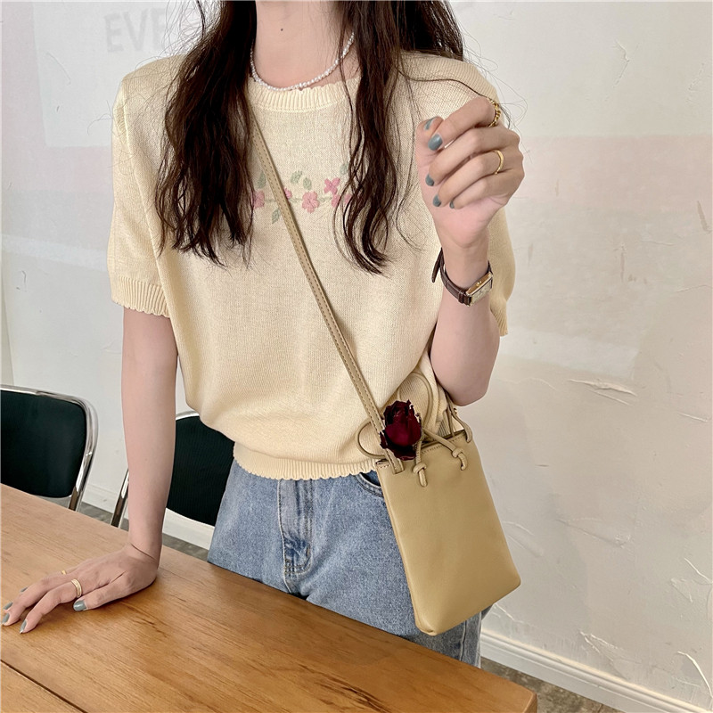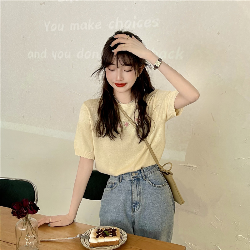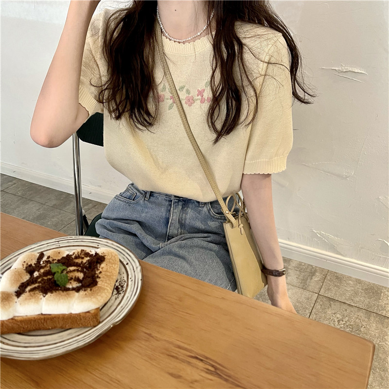 Шелковый трикотажный тонкий летний дизайнерский свитер, рукава фонарики, тренд сезона, короткий рукав
