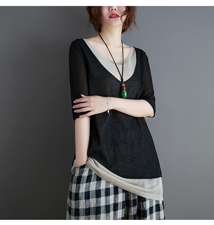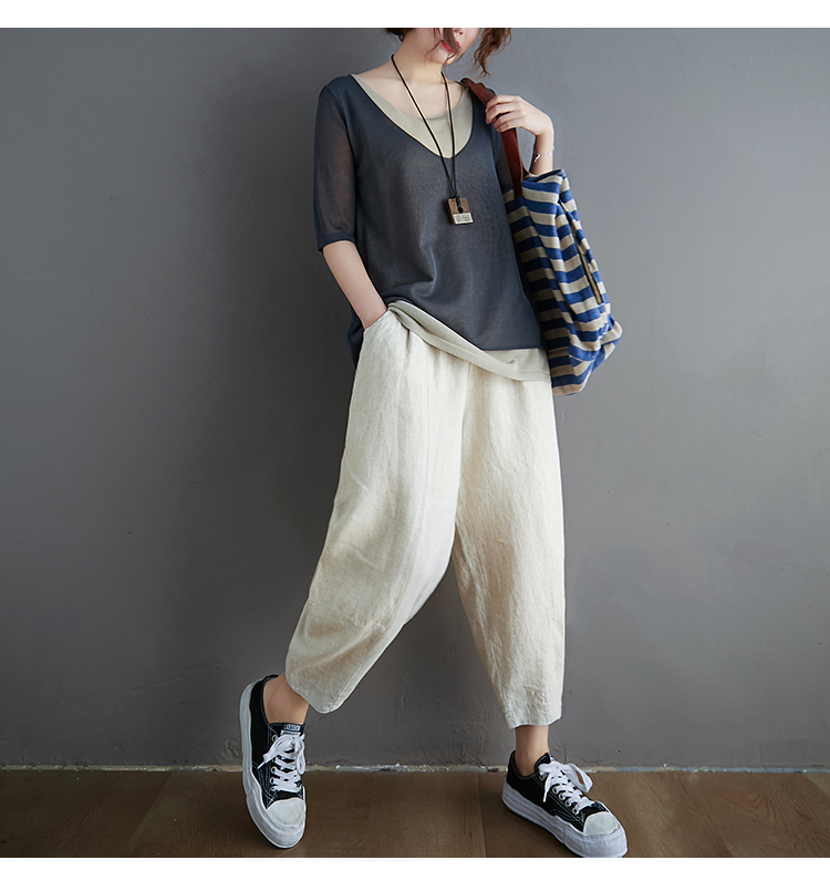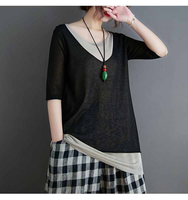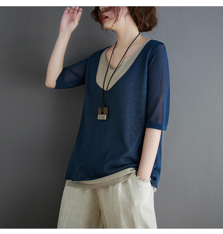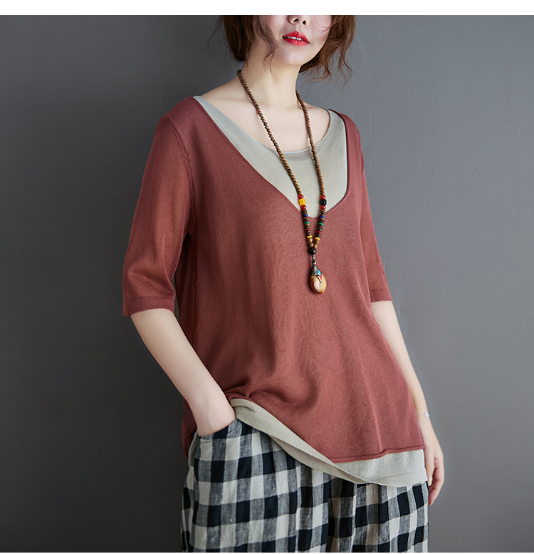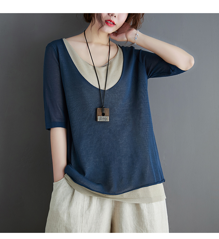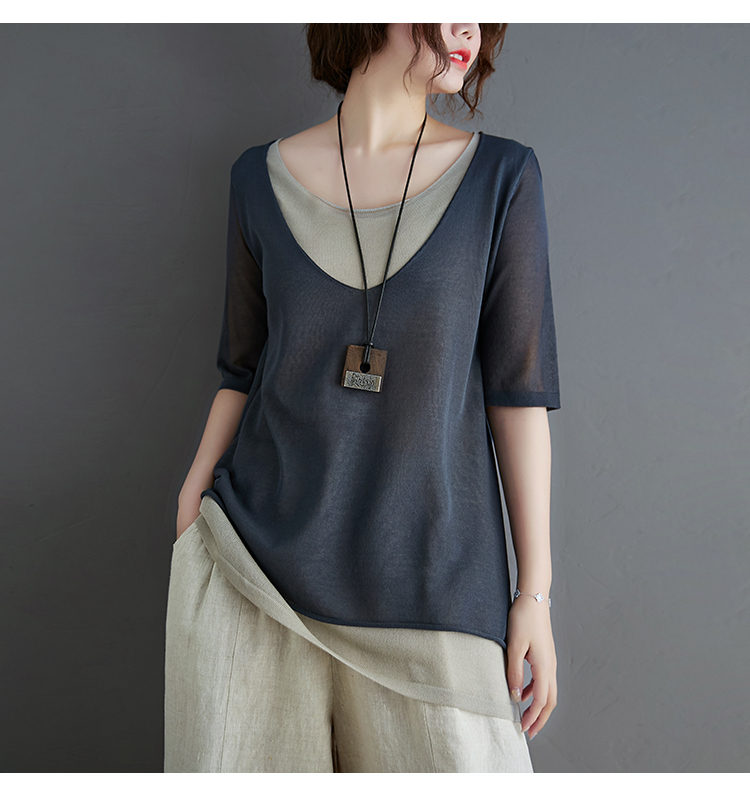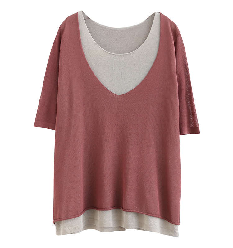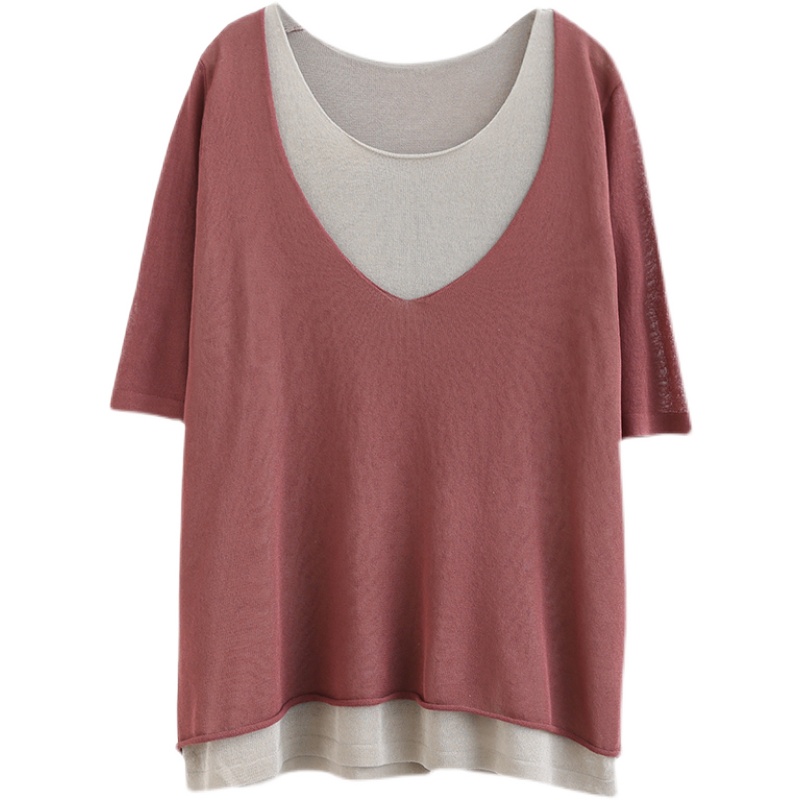Трикотажный летний свитер, футболка с коротким рукавом, комплект, по фигуре, из хлопка и льна