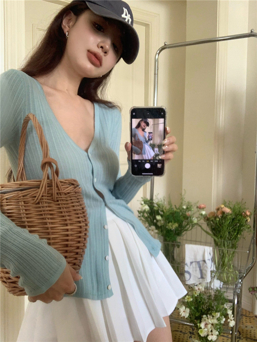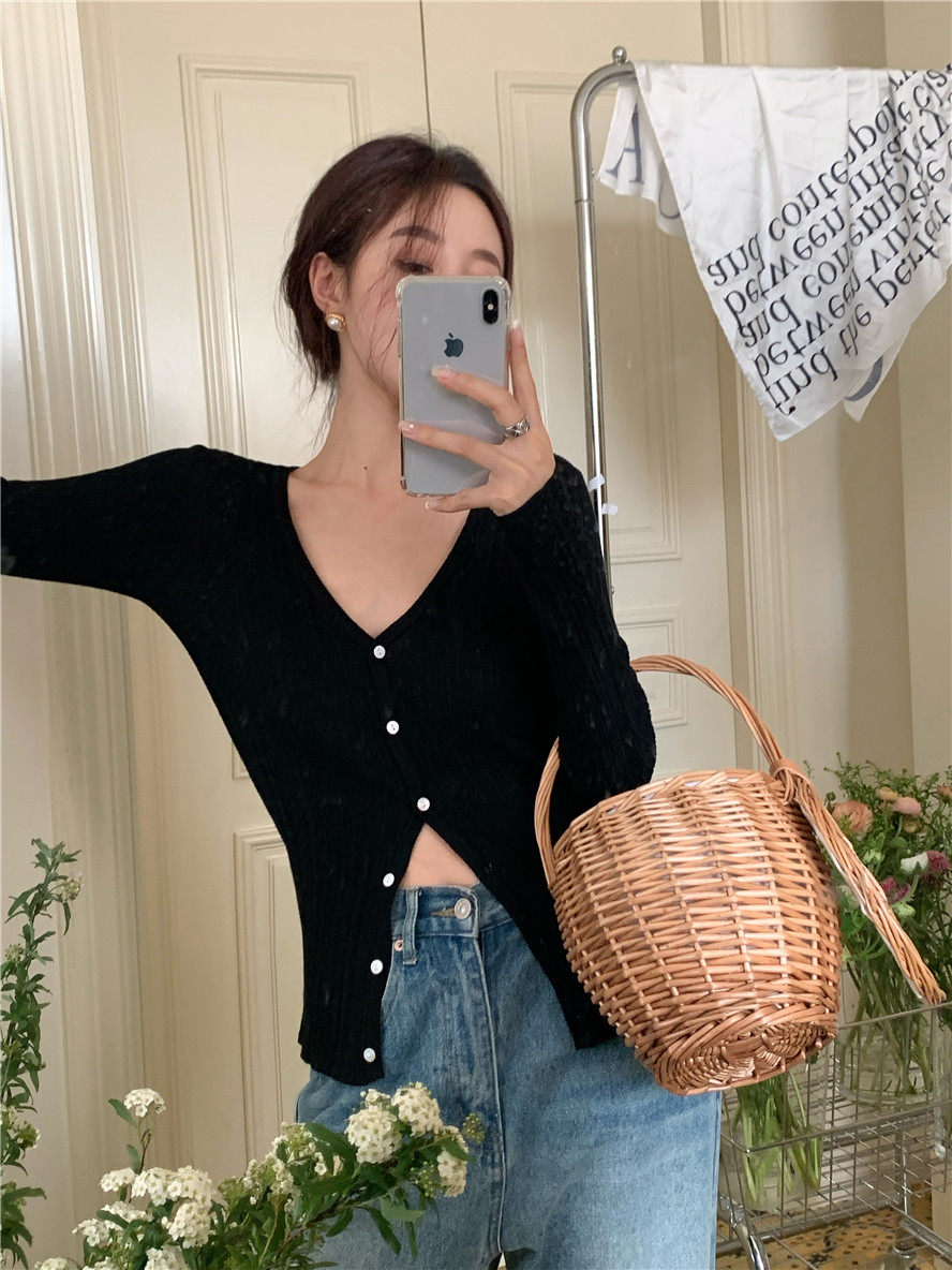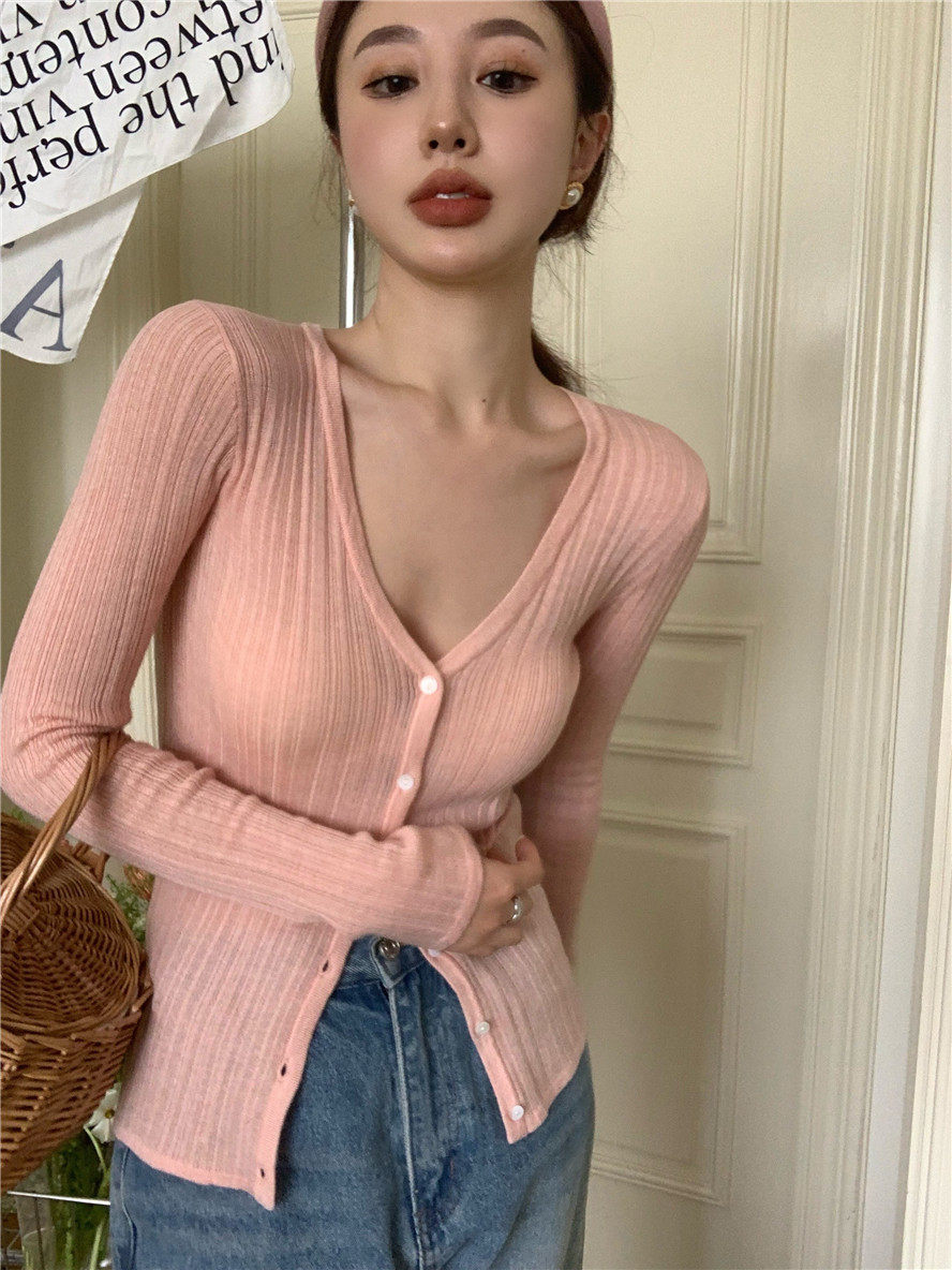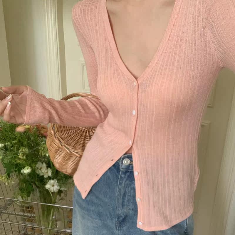 Дизайнерский тонкий воротник, трикотажный свитер, лонгслив, кардиган, летняя накидка, тренд сезона, V-образный вырез, защита от солнца