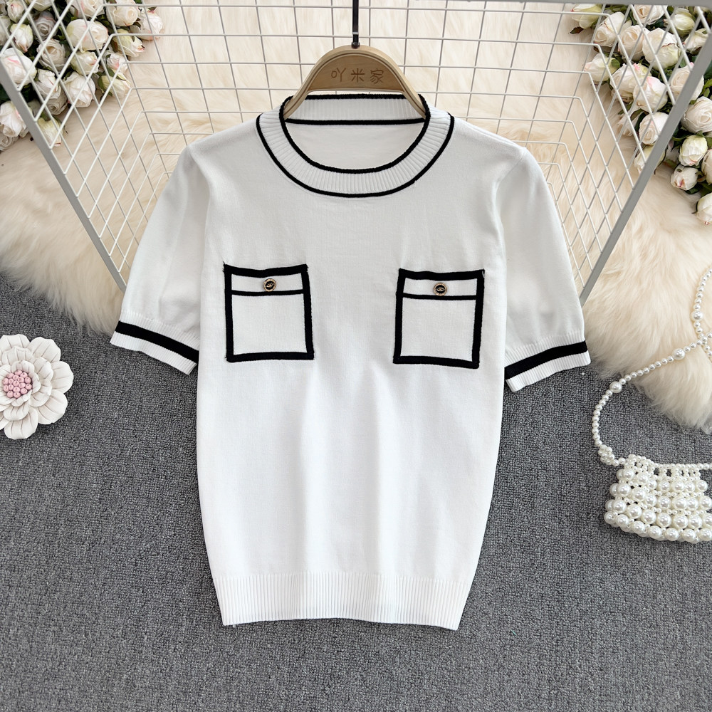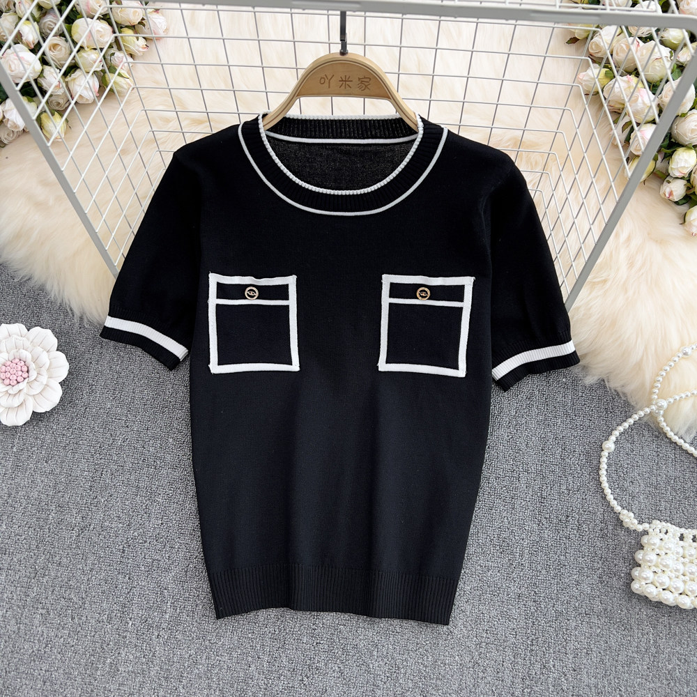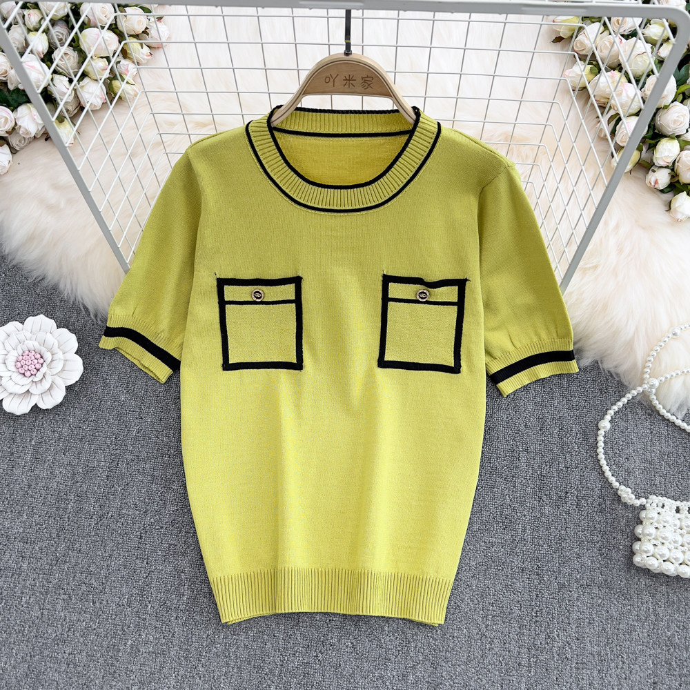 Летняя дизайнерская шелковая тонкая трикотажная футболка с коротким рукавом, в корейском стиле, тренд сезона