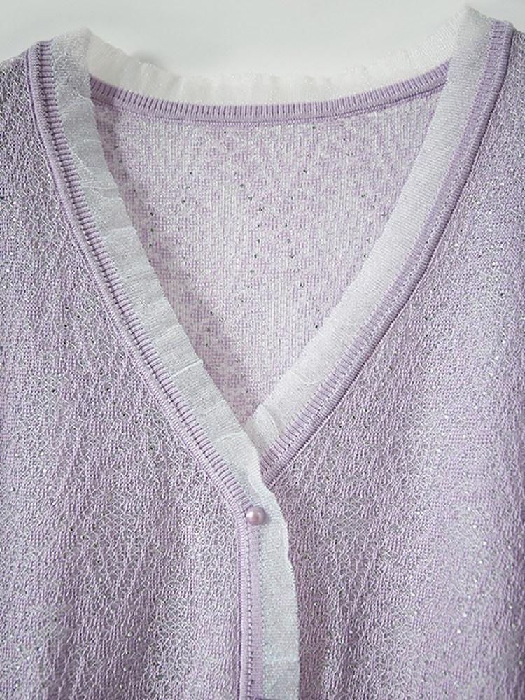 | модные элементы | Полый дизайн + яркий шелк + ромбовидная аппликация, V-образный вырез, один ряд декоративных пуговиц на планке, сетчатое сращивание воротника/планки/манжет, Манжеты/подол с резьбой | |||||||||