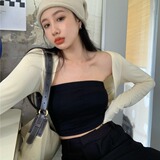 Черный тонкий трикотажный летний кардиган, жилет, накидка, короткая куртка, защита от солнца