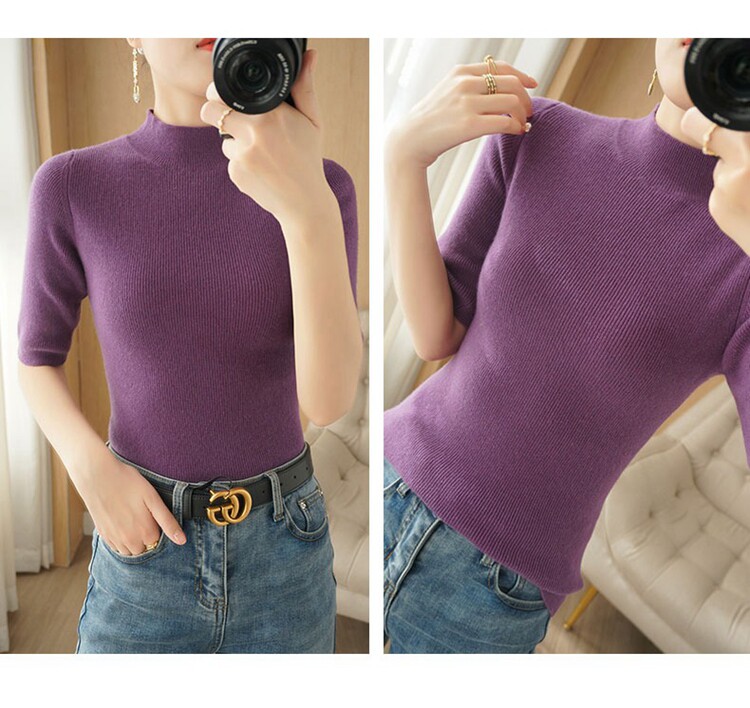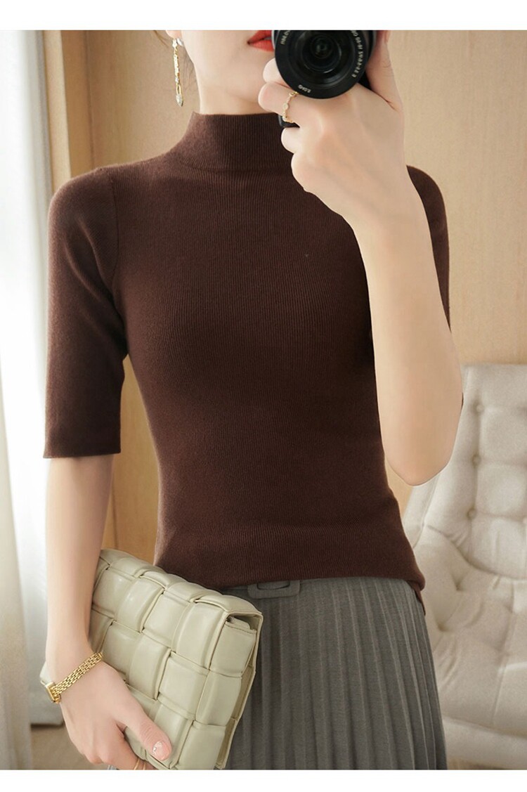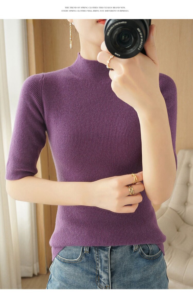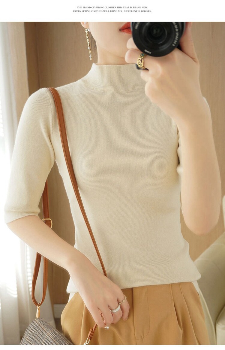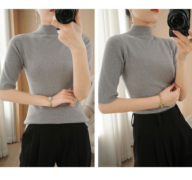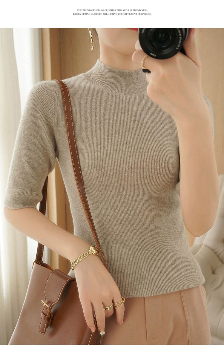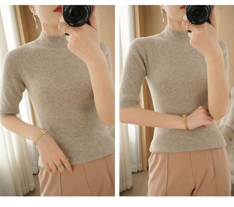 Осенние шерстяные нарукавники, кашемировый трикотажный свитер, высокий воротник, облегающий крой, короткий рукав