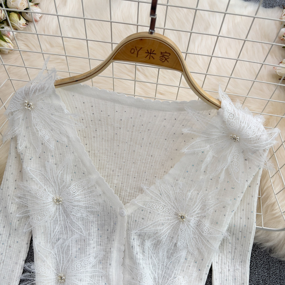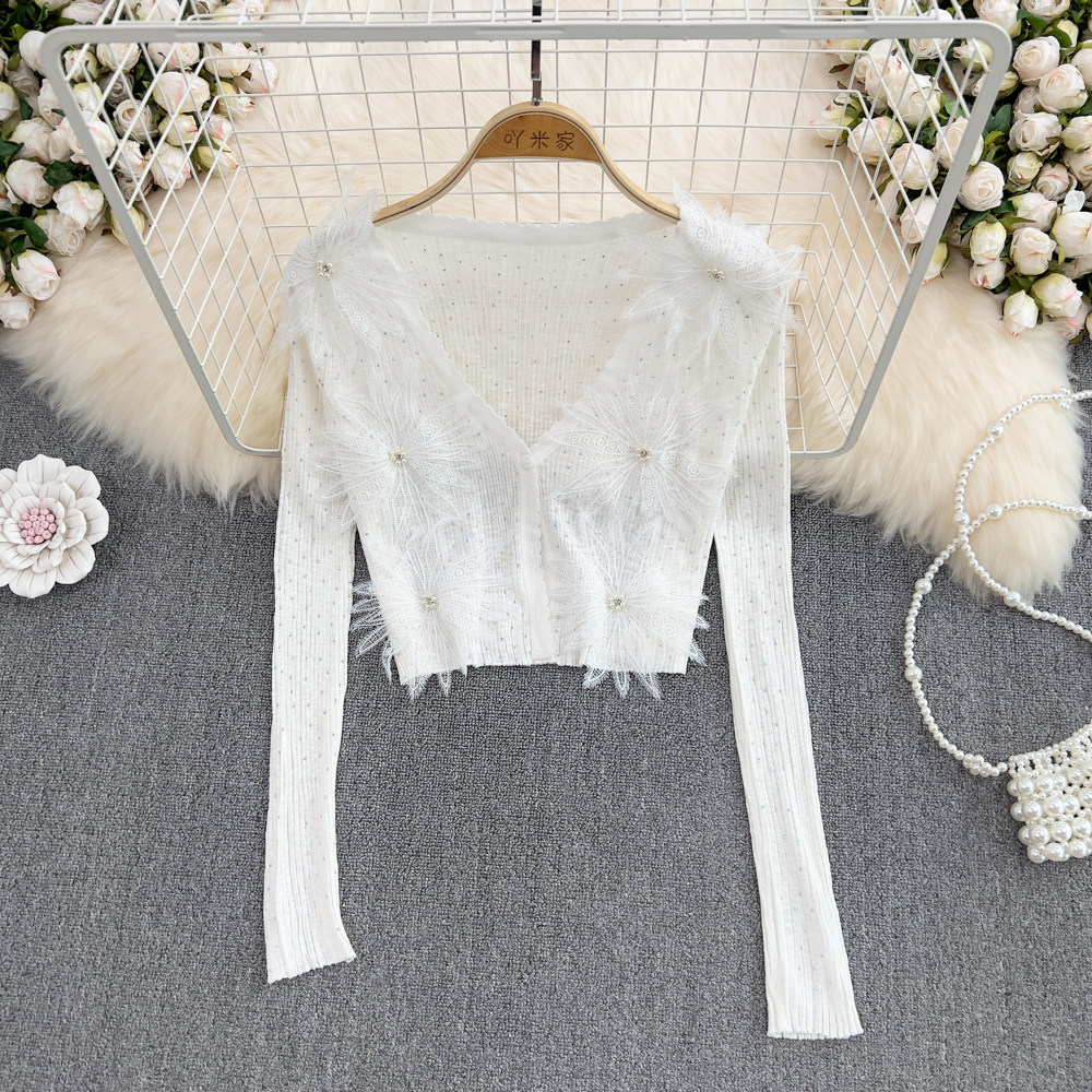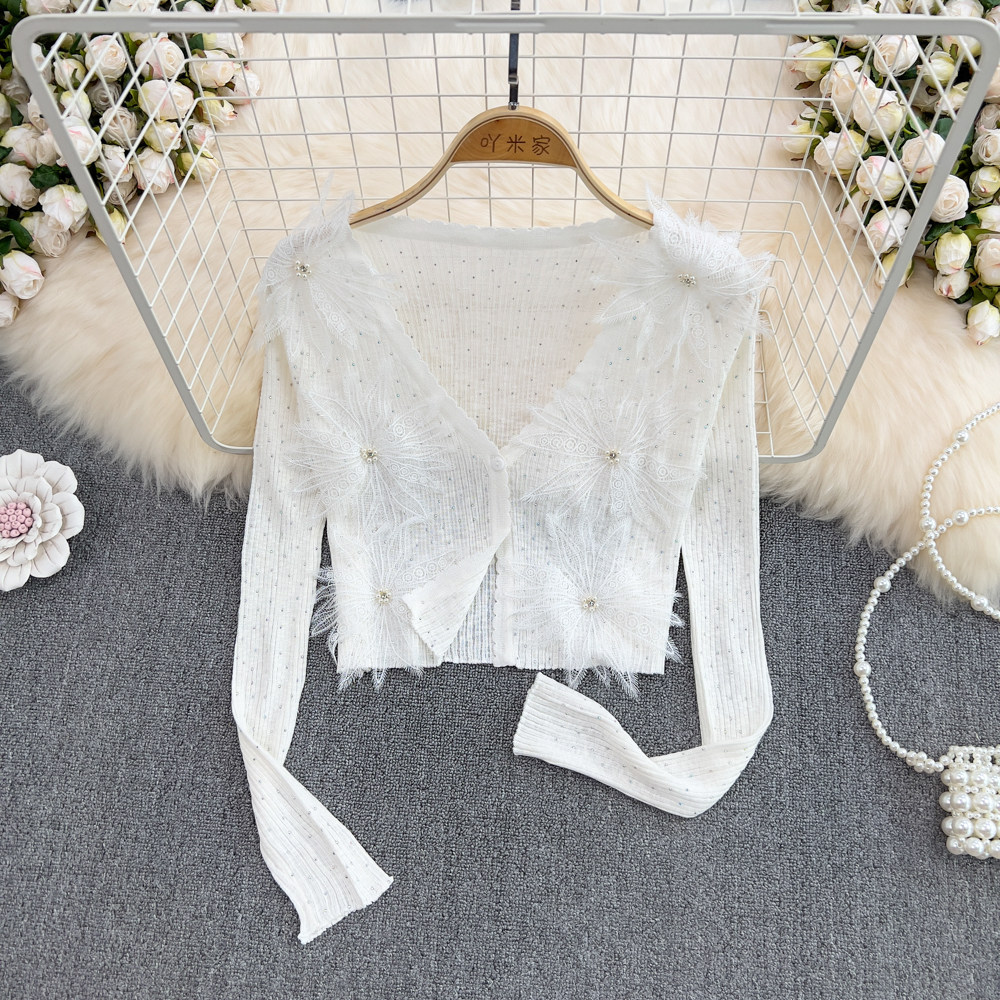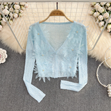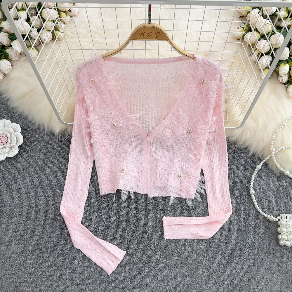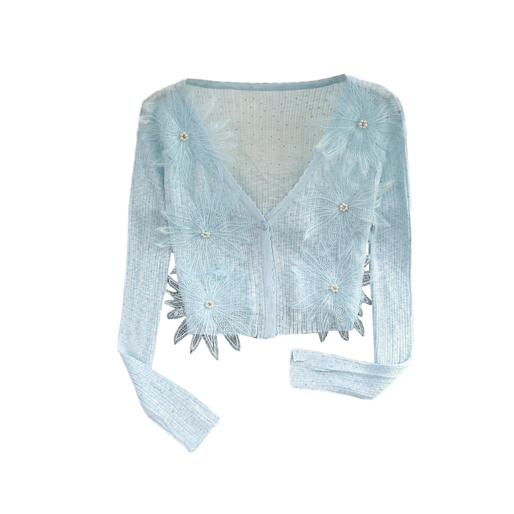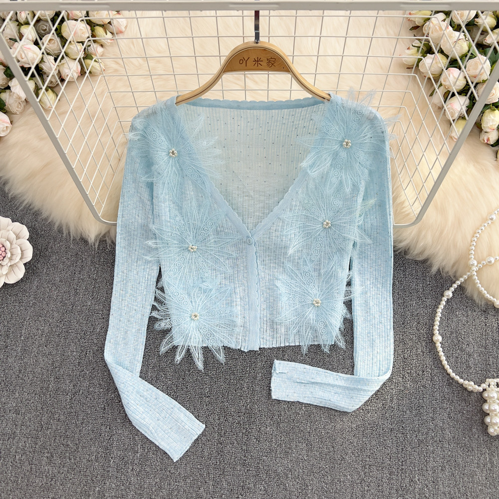 Летний короткий трехмерный трикотажный кардиган, тонкая куртка, накидка, в цветочек, защита от солнца