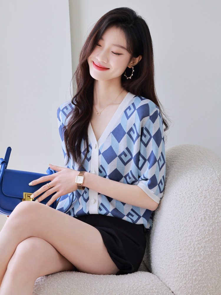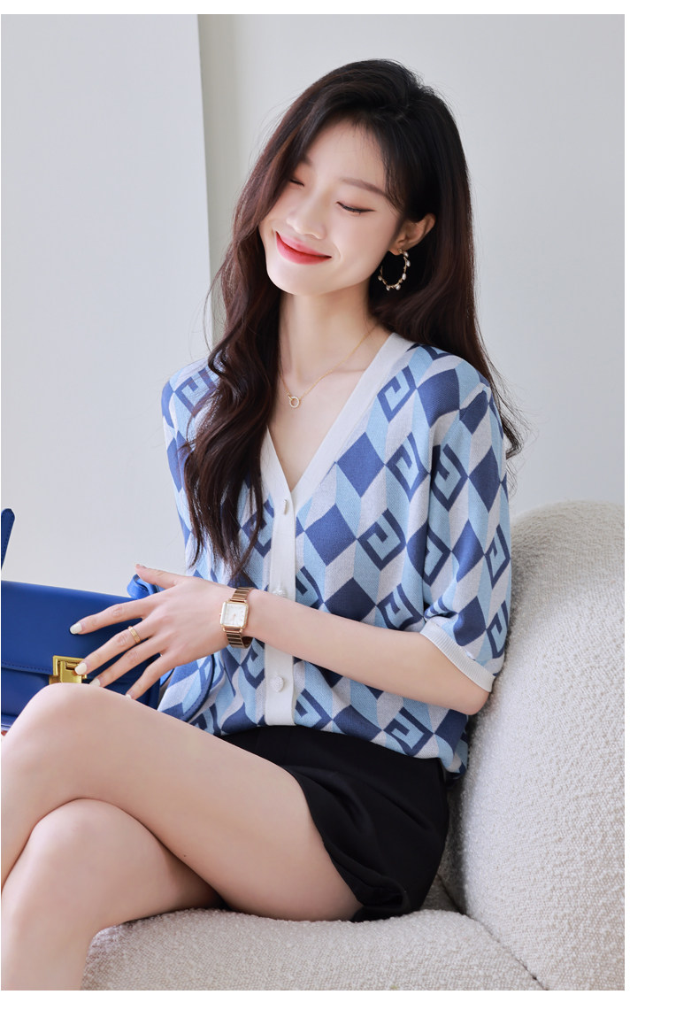Трикотажный кардиган, летняя тонкая шелковая куртка, в стиле Шанель, короткий рукав