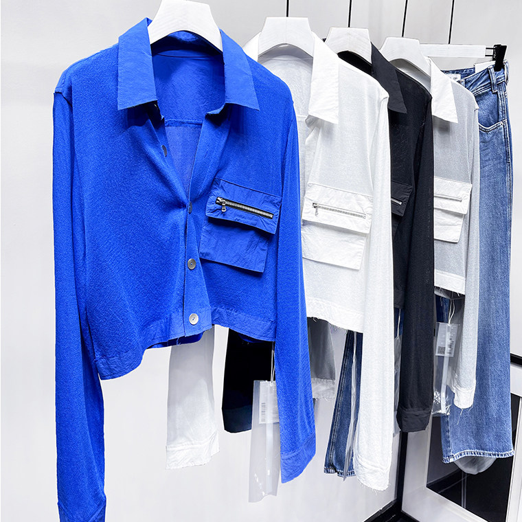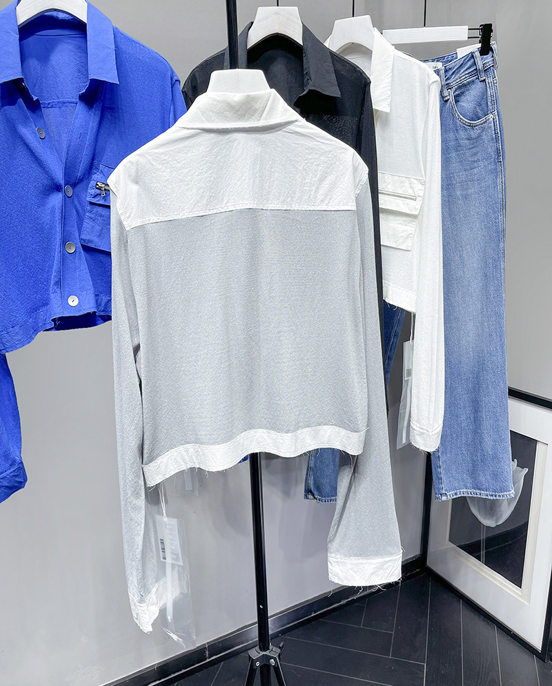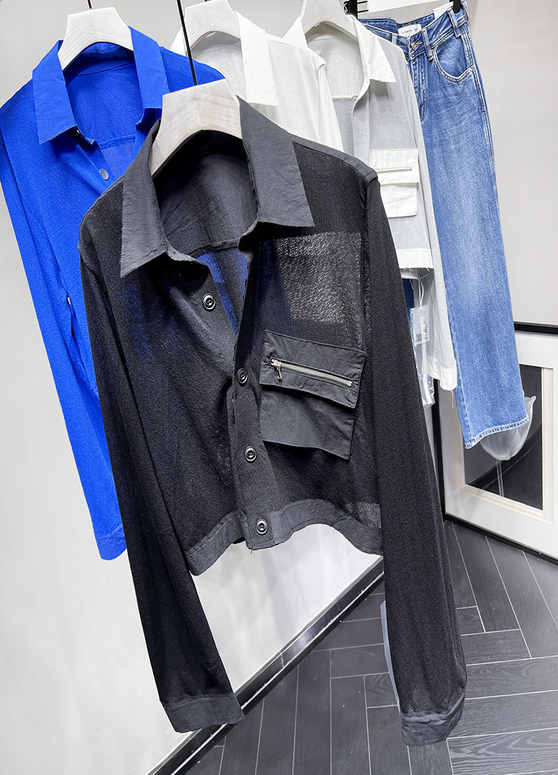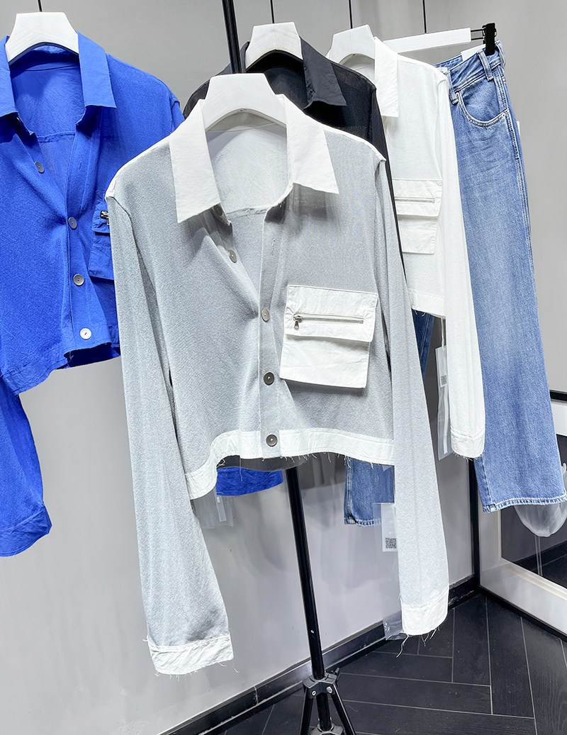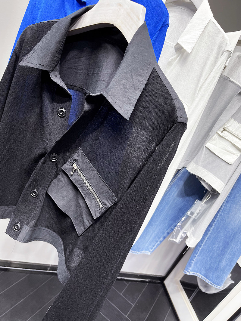 MQ High -Catature Stitching Shirting Pocket Sunscreen Promy Poat Macqnf тонкий универсальный свободный свитер 35193
