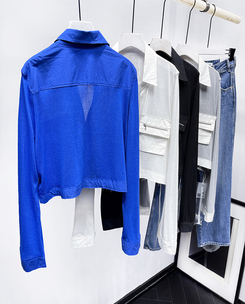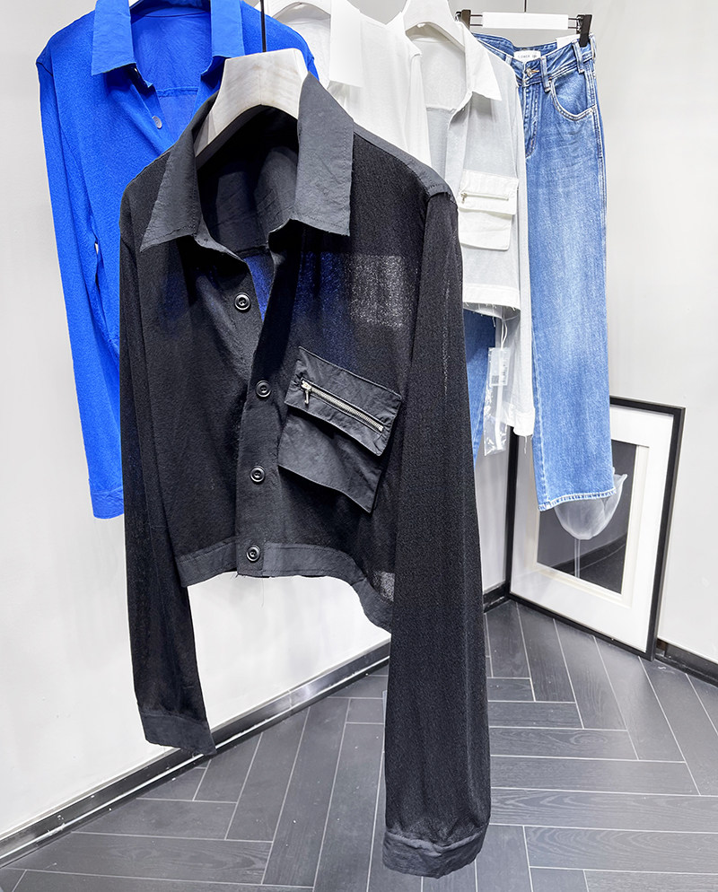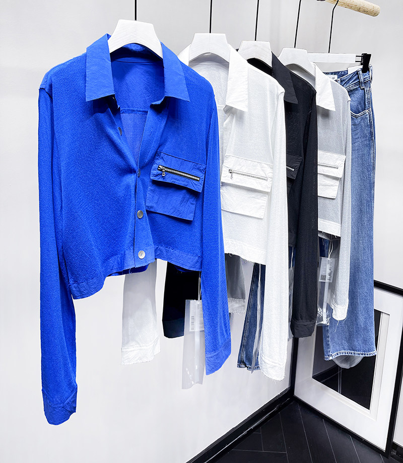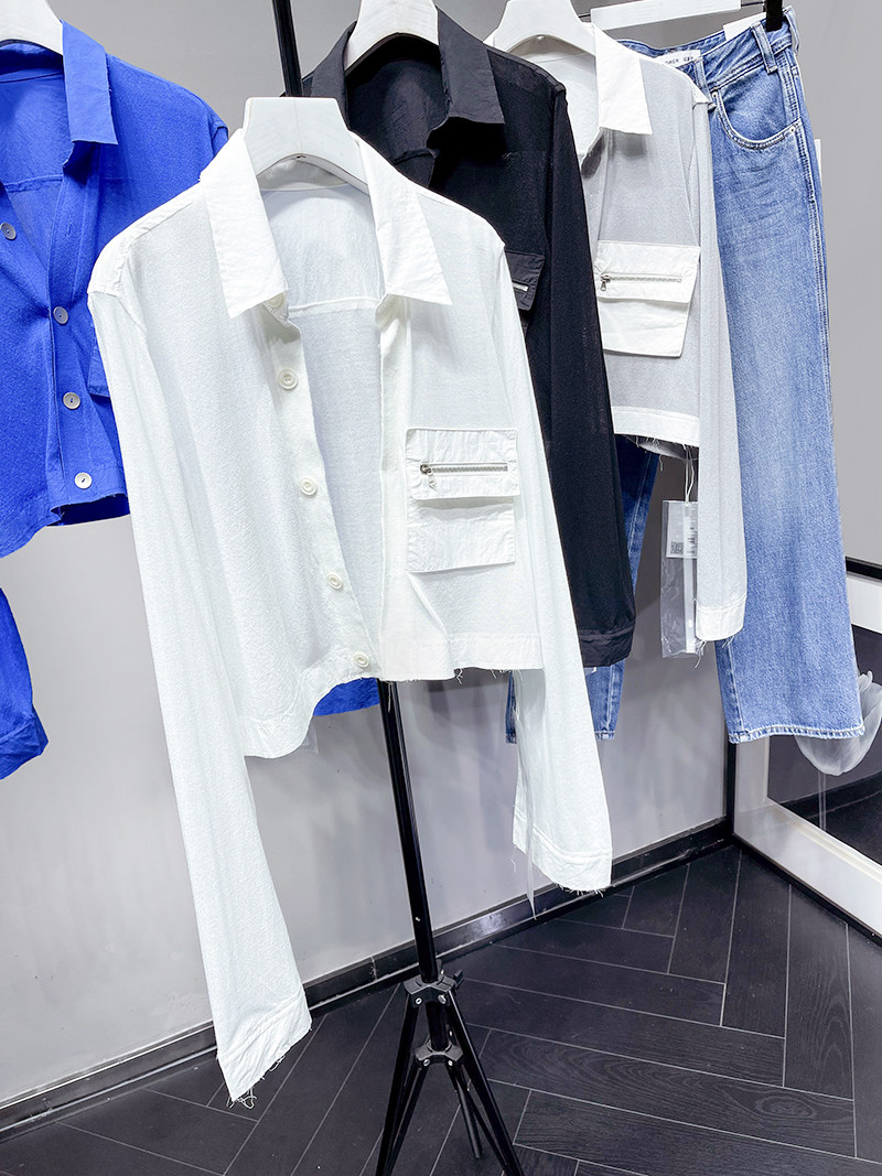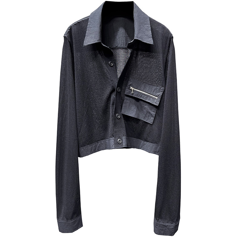 MQ High -Catature Stitching Shirting Pocket Sunscreen Promy Poat Macqnf тонкий универсальный свободный свитер 35193