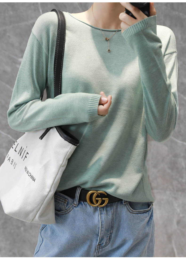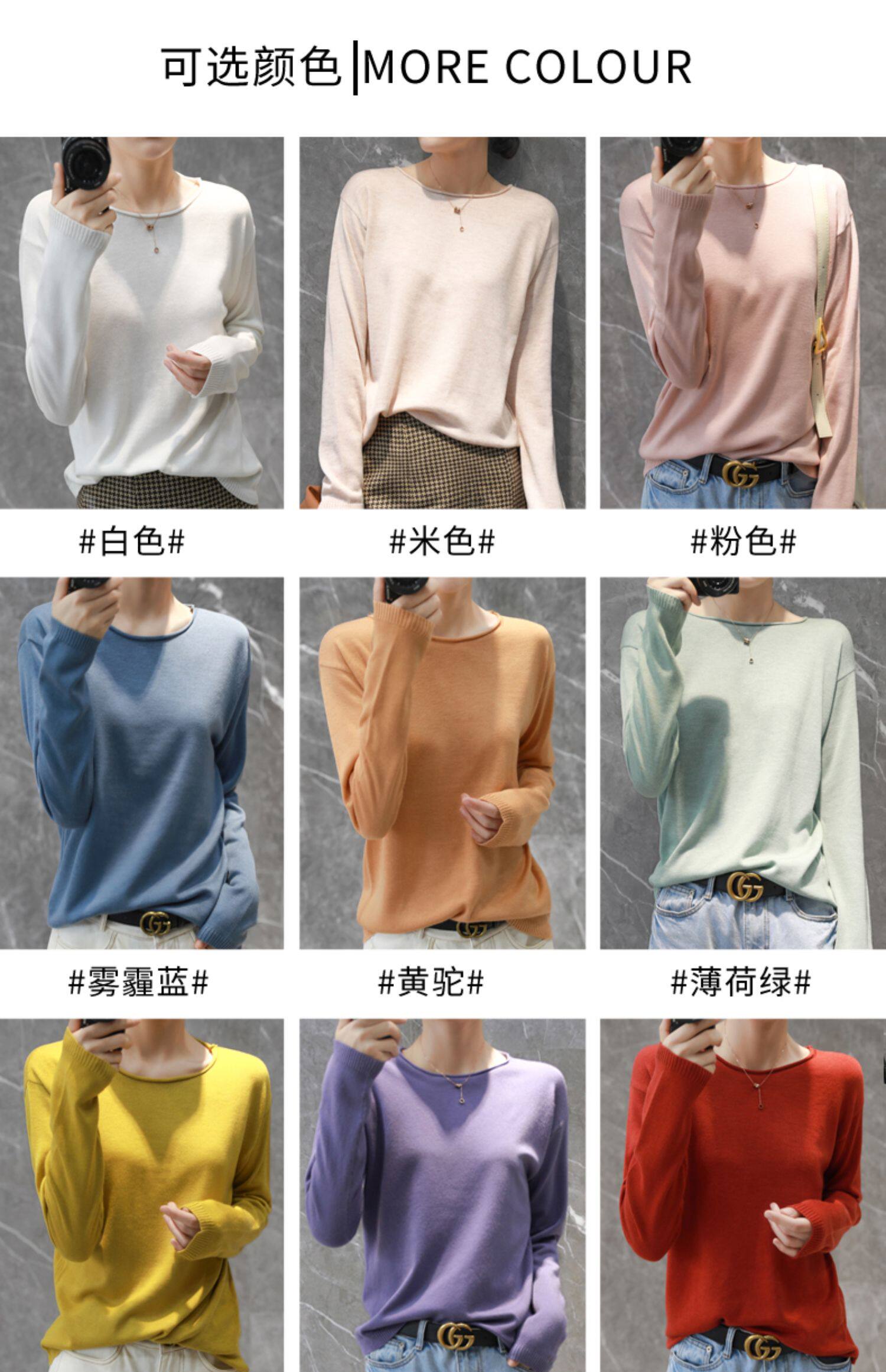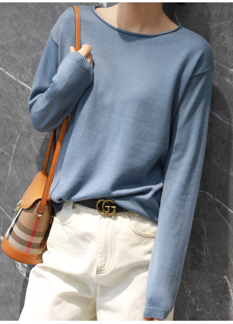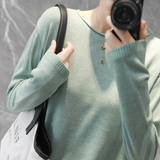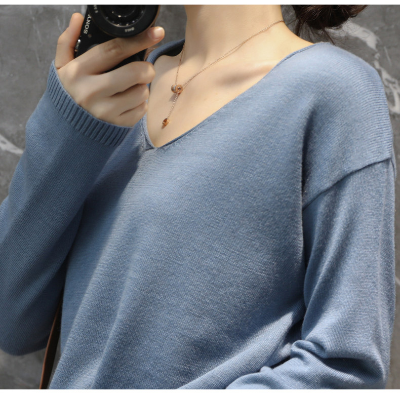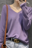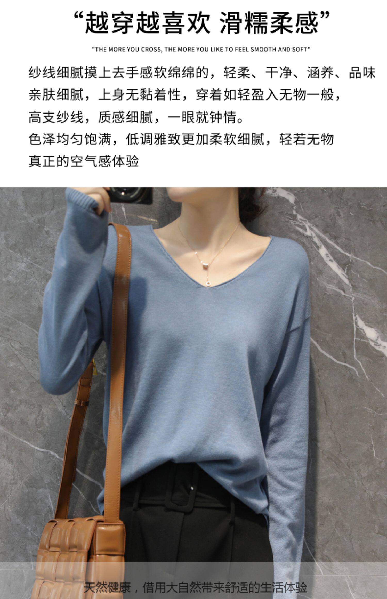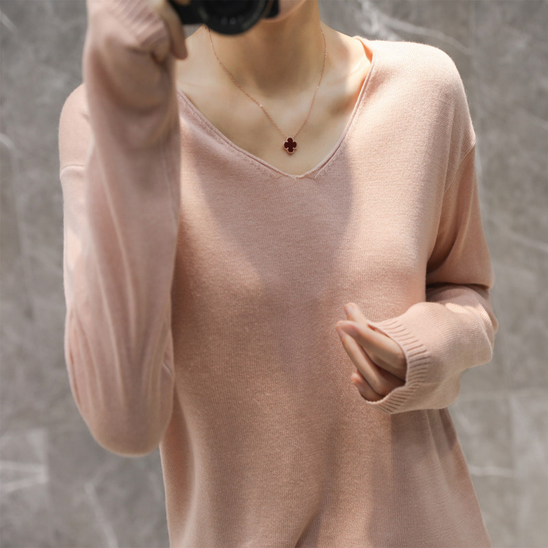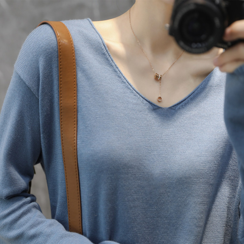 Базовый лонгслив, футболка, тонкий шерстяной трикотажный свитер, коллекция 2022, оверсайз, V-образный вырез