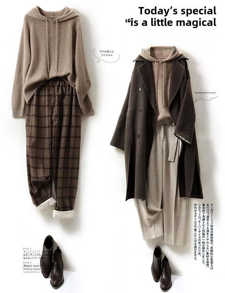 Осенняя толстовка с капюшоном, трикотажная вязаная шапка, балахон, базовая рубашка, шерстяной свитер, большой размер