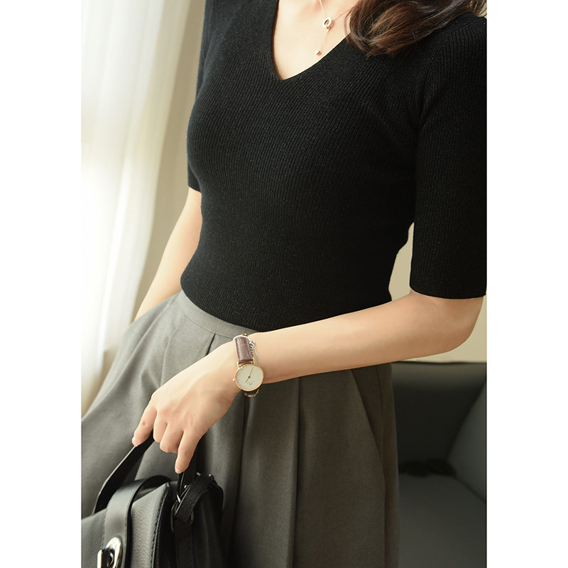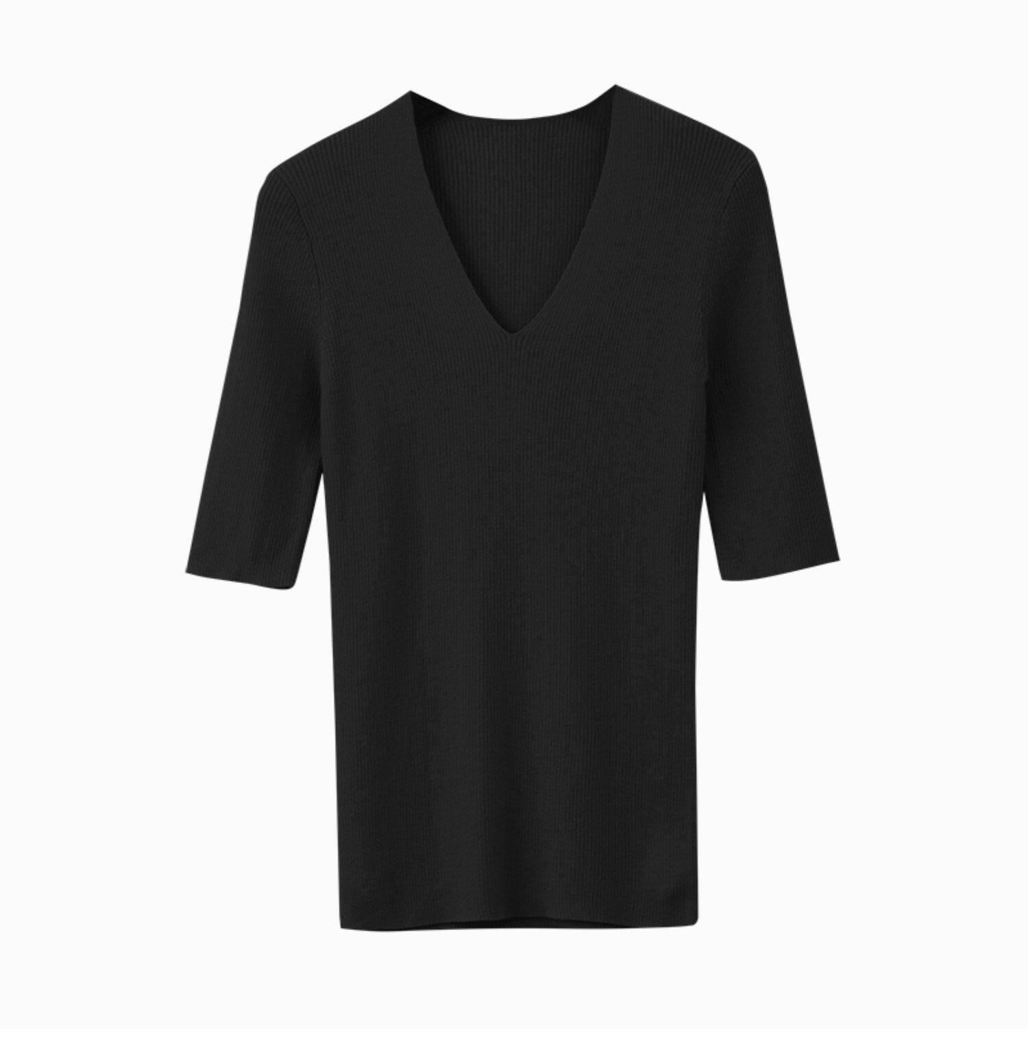 - 0337 Black v -neck Liangshi Mid -sleeve рубашка