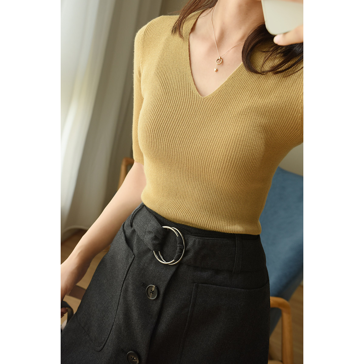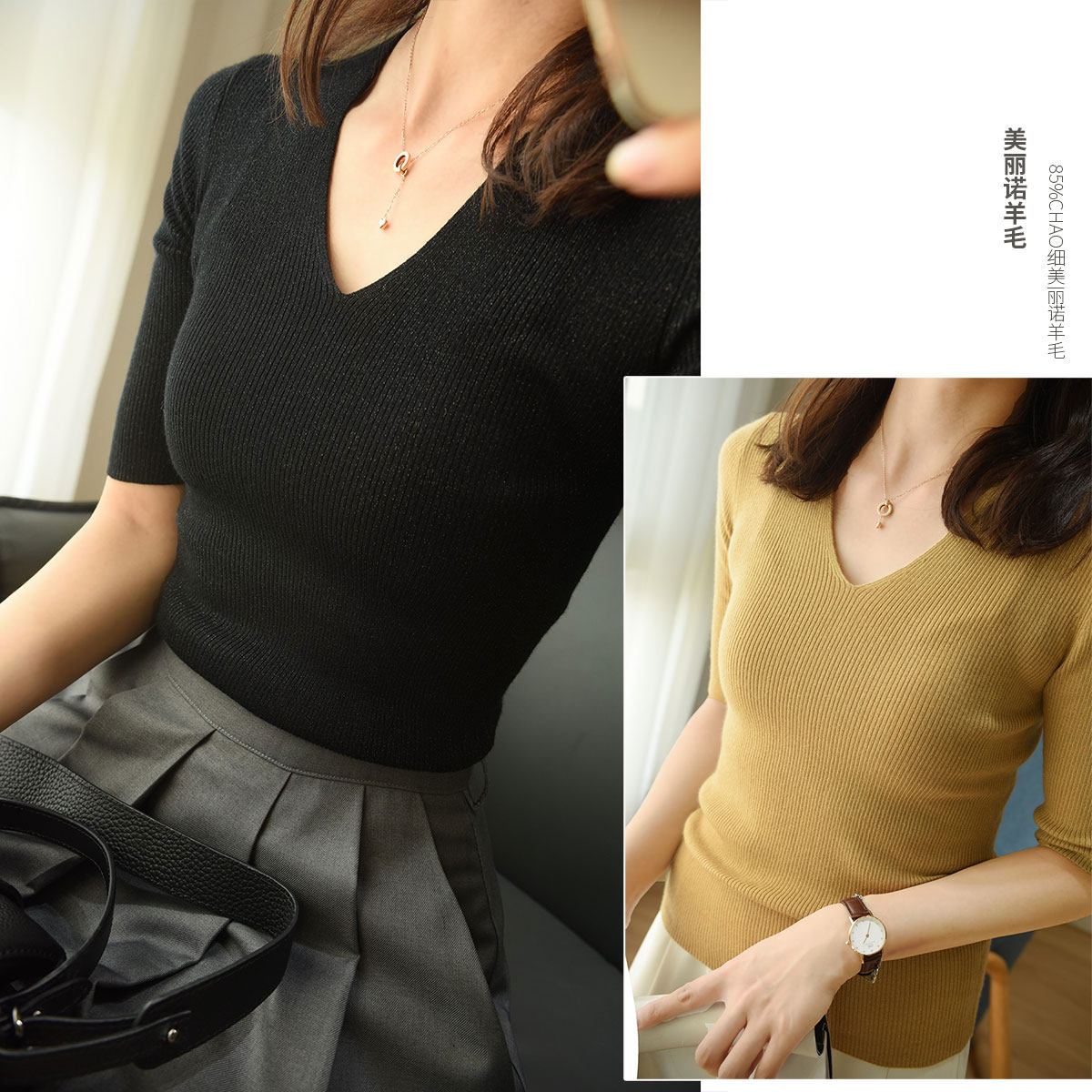 | Цвет: | 0337 Black v -neck Liangshi Mid -sleeve рубашка, 0337 Молочный чай v -neck Liang шелк, 0337 мес., V-образный вырез |