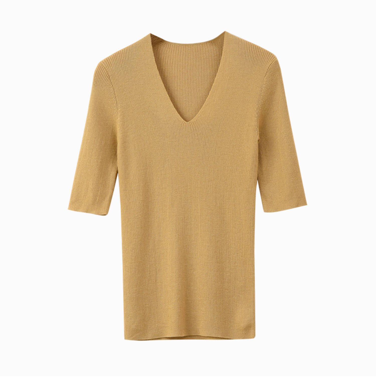 Шерстяной базовый приятный телу трикотажный летний свитер, V-образный вырез, городской стиль