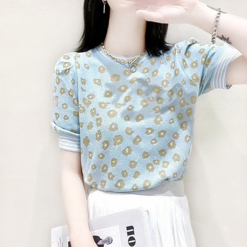 Шелковый трикотажный летний свитер с круглым воротником, футболка, в западном стиле, свободный крой