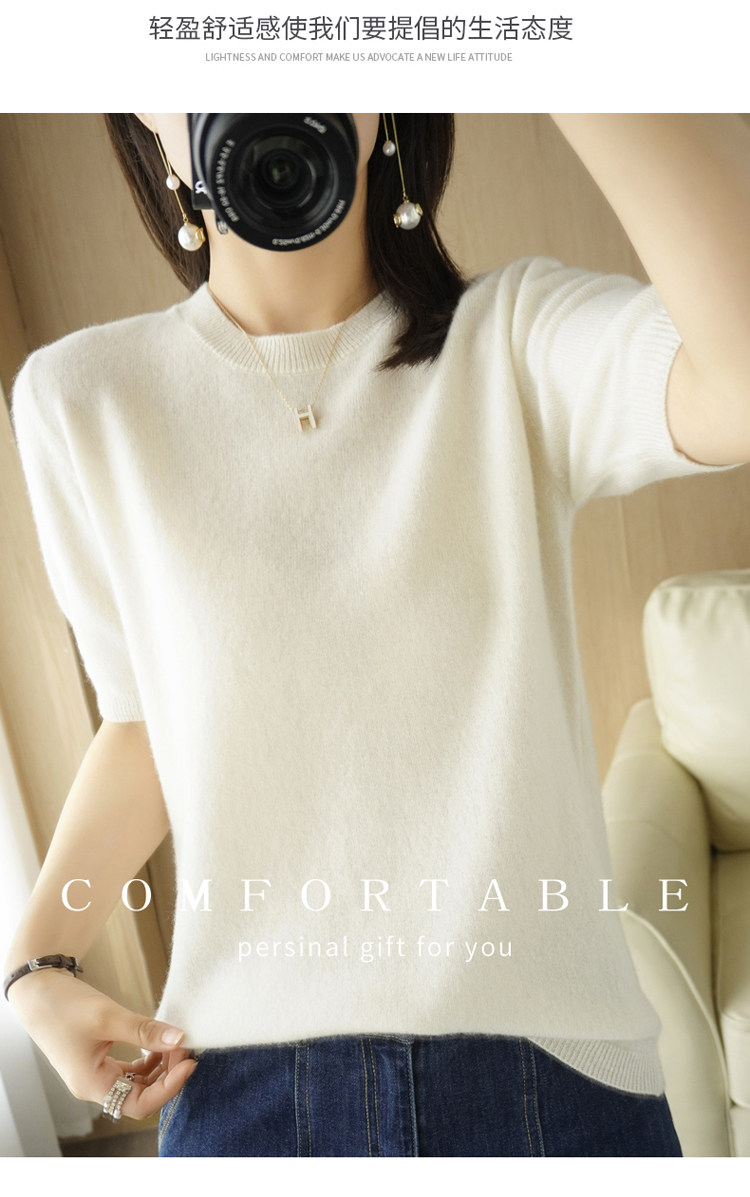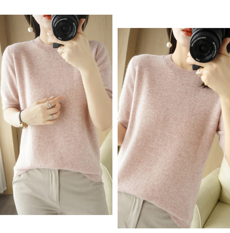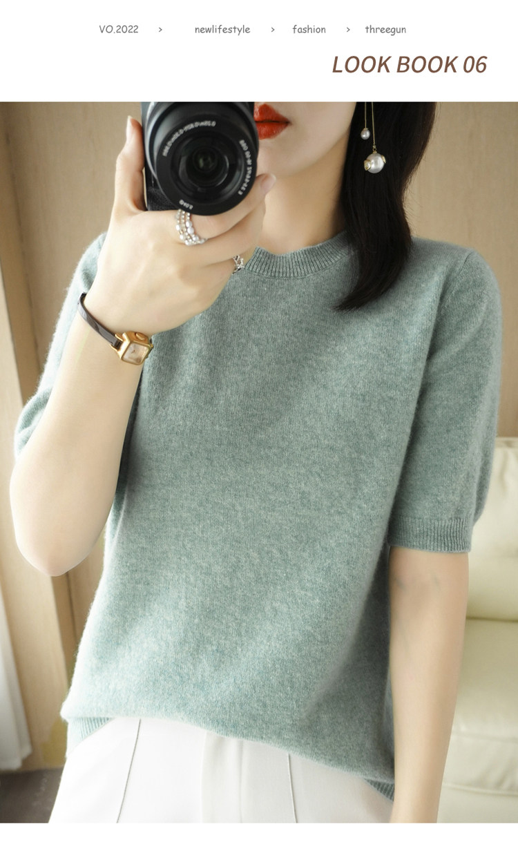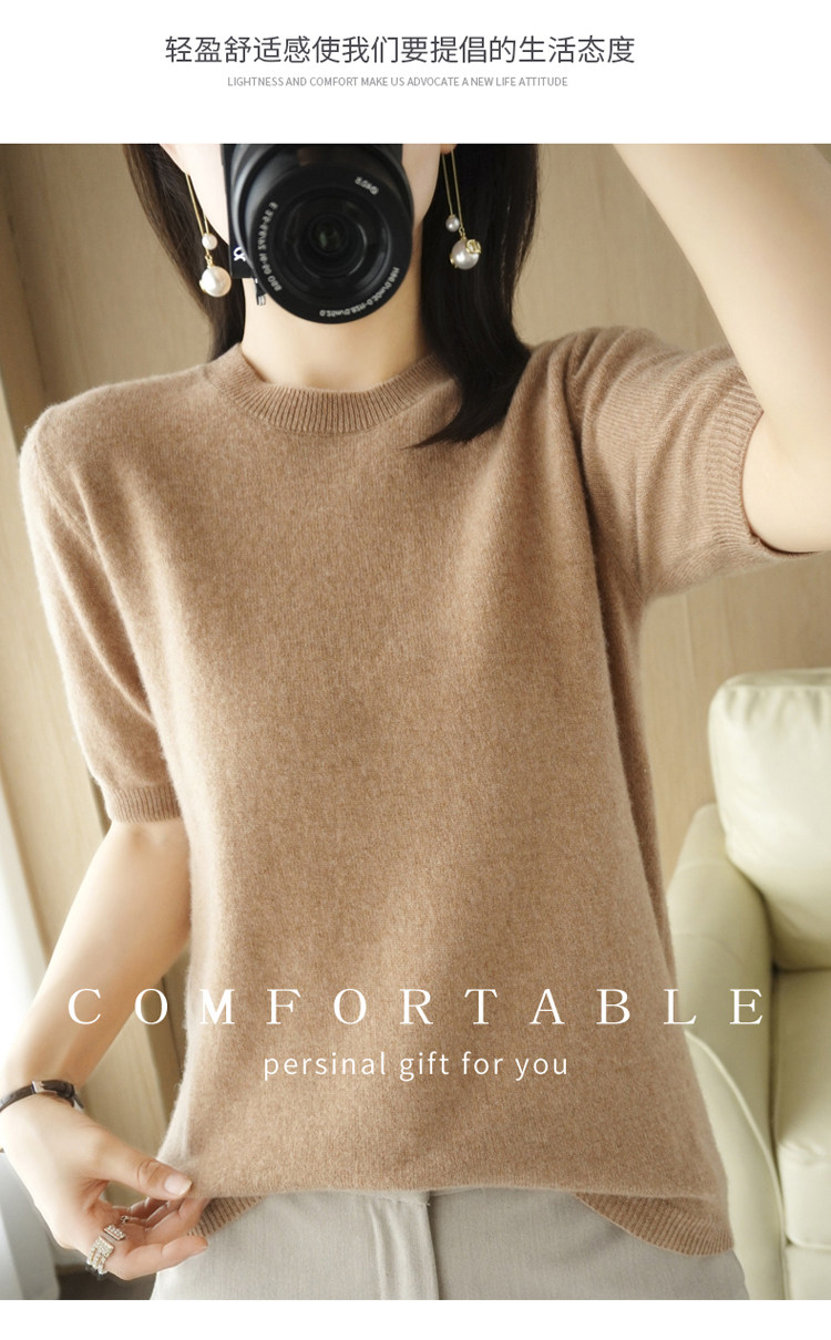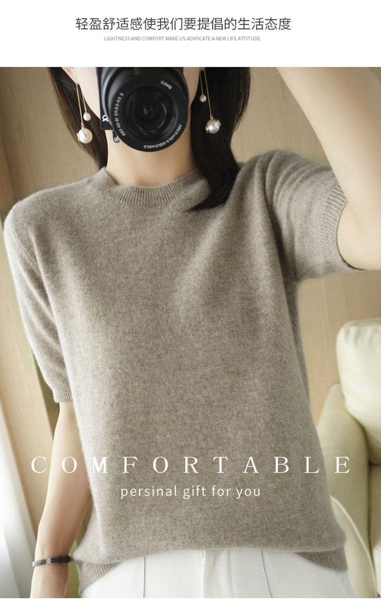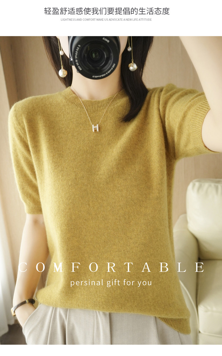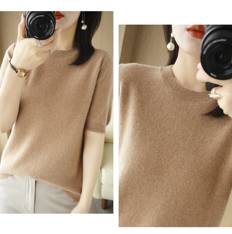 Весенний шерстяной свитер с круглым воротником, короткая базовая приятная телу трикотажная тонкая кашемировая рубашка